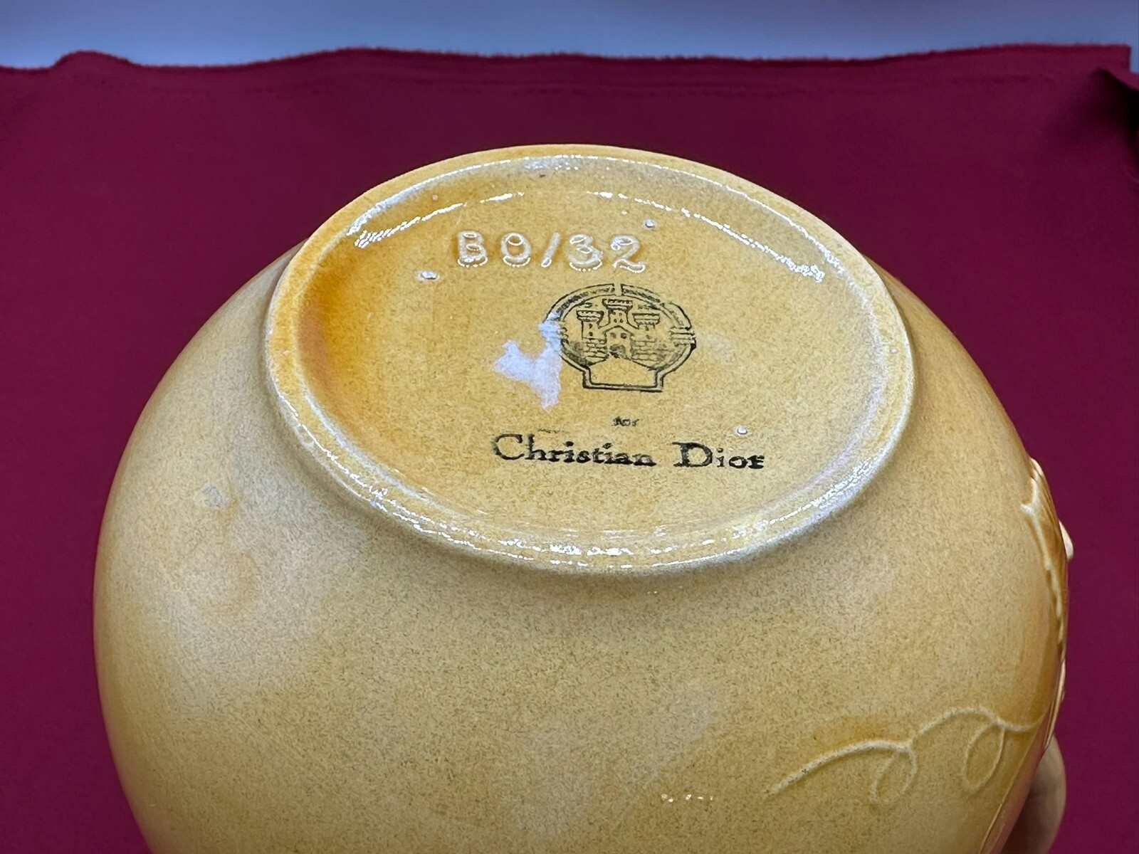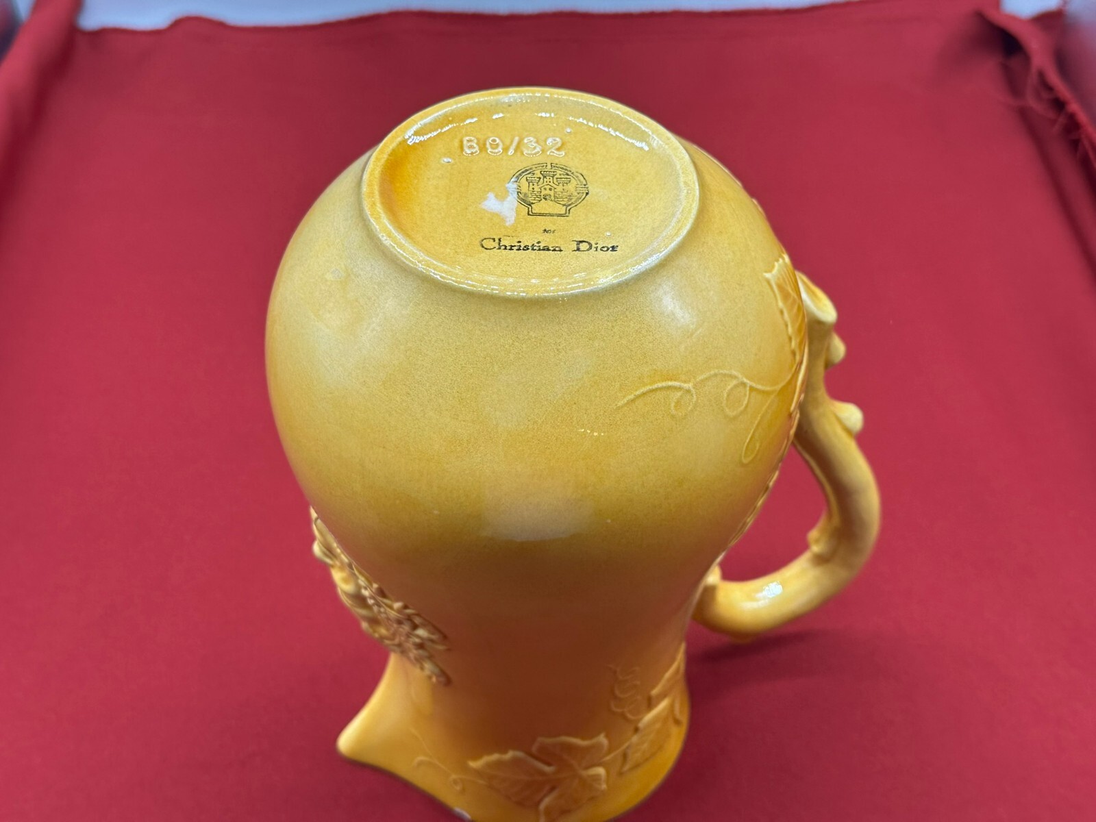 Grosse Keramikkanne am Boden gestempelt for Christian Dior. In der Glasur Krakelee, am Hals Cips, innen leichte Ablagerungen. Höhe / Durchmesser 24/14cm.