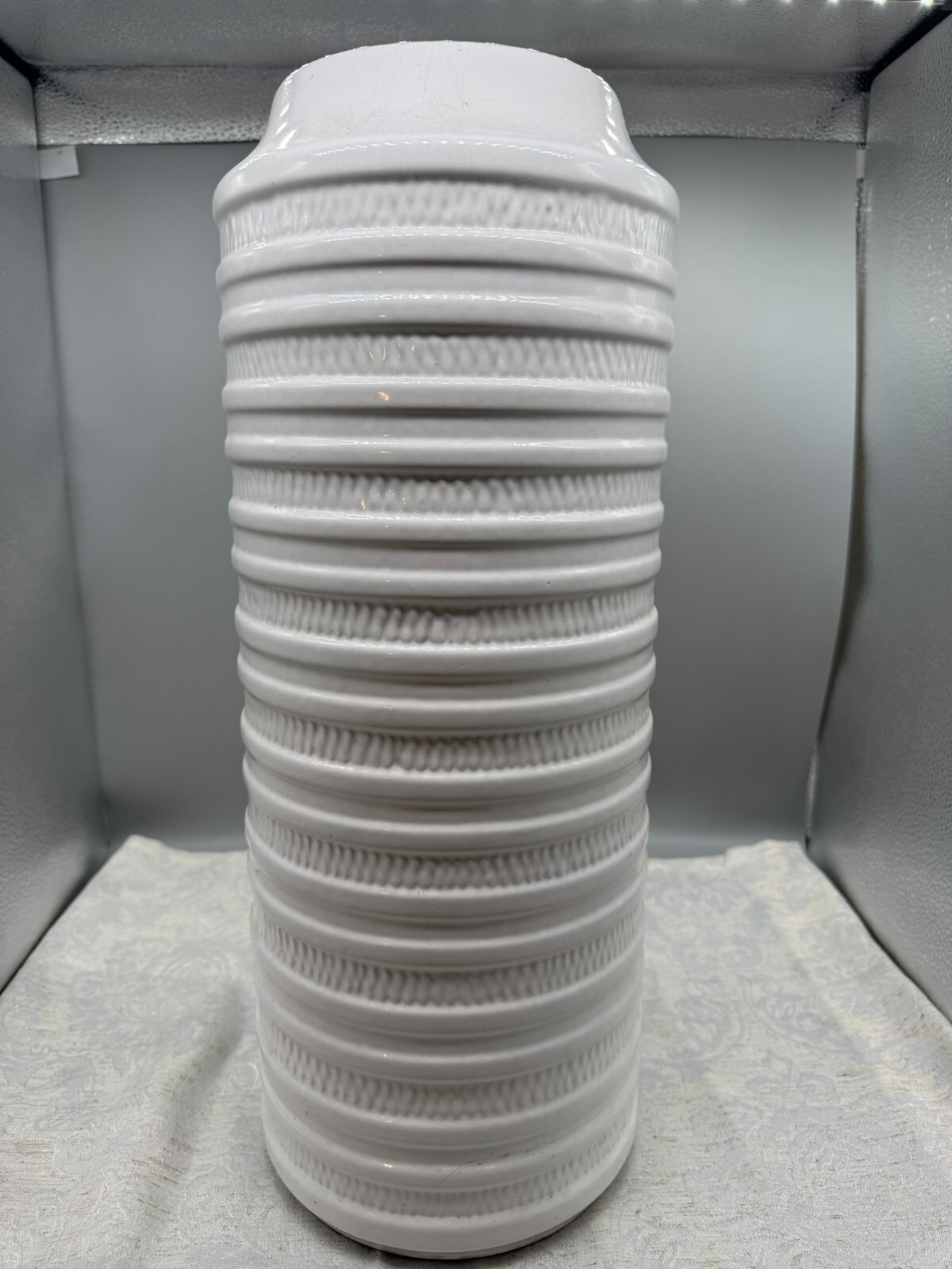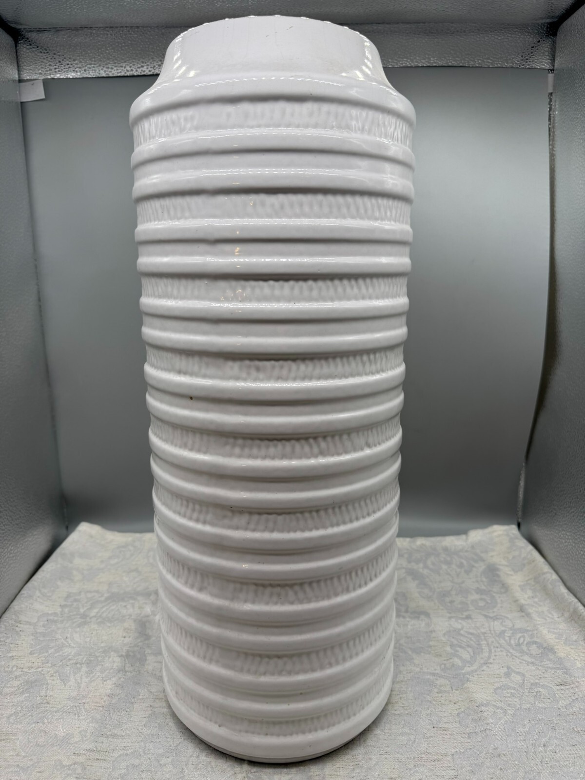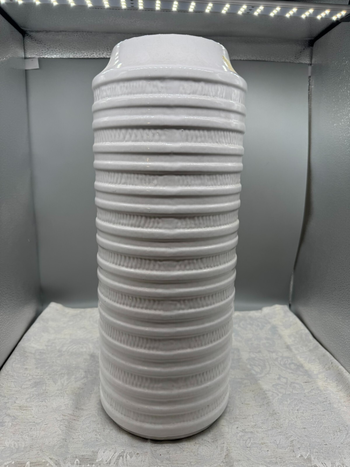Aus einer sehr grossen Sammlung von vintage Keramiken bieten wir wie folgt an: grosse Keramikvase, Carstens Tönnishof, 1960/70-er Jahre. Innen leicht verstaubt, ohne Chips oder Schäden. Höhe / Durchmesser: 50/20cm.