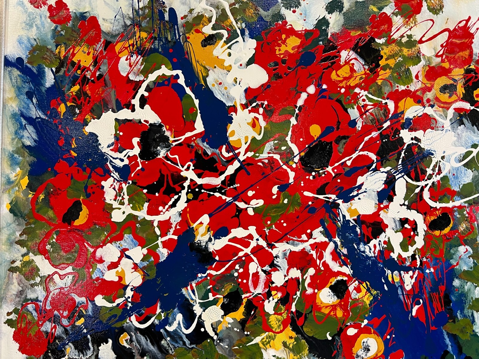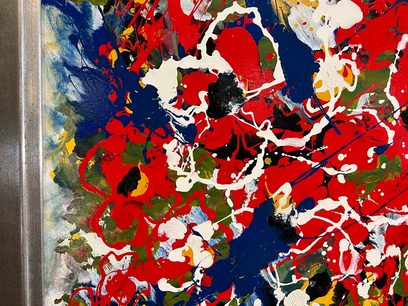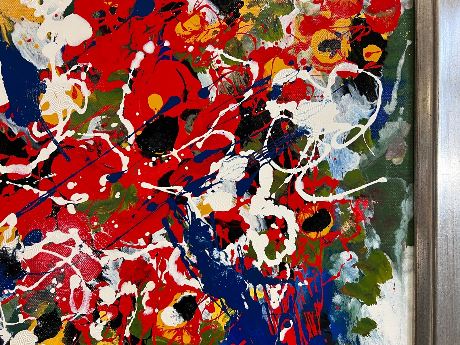 GROSSES ABSTRAKTES GEMÄLDE ACRYL AUF LEINWAND SIGNIERT GIJS TER WEE RAHMEN