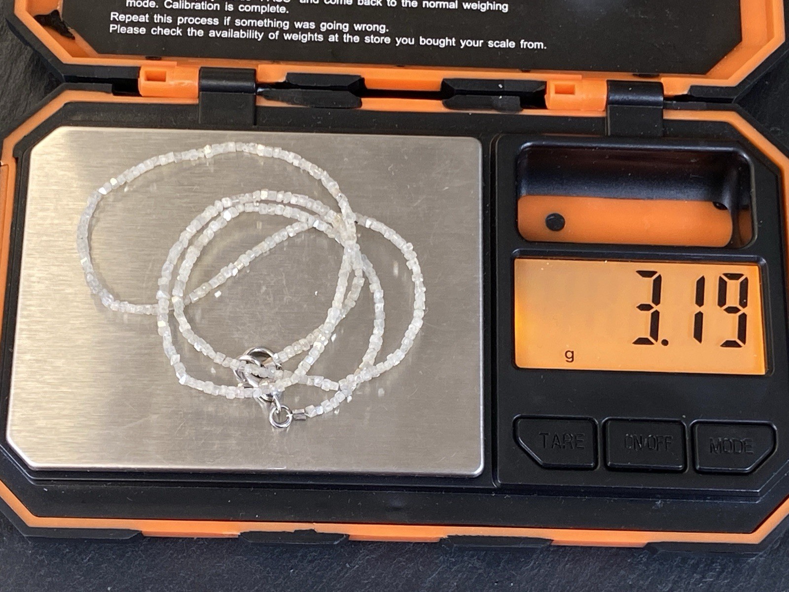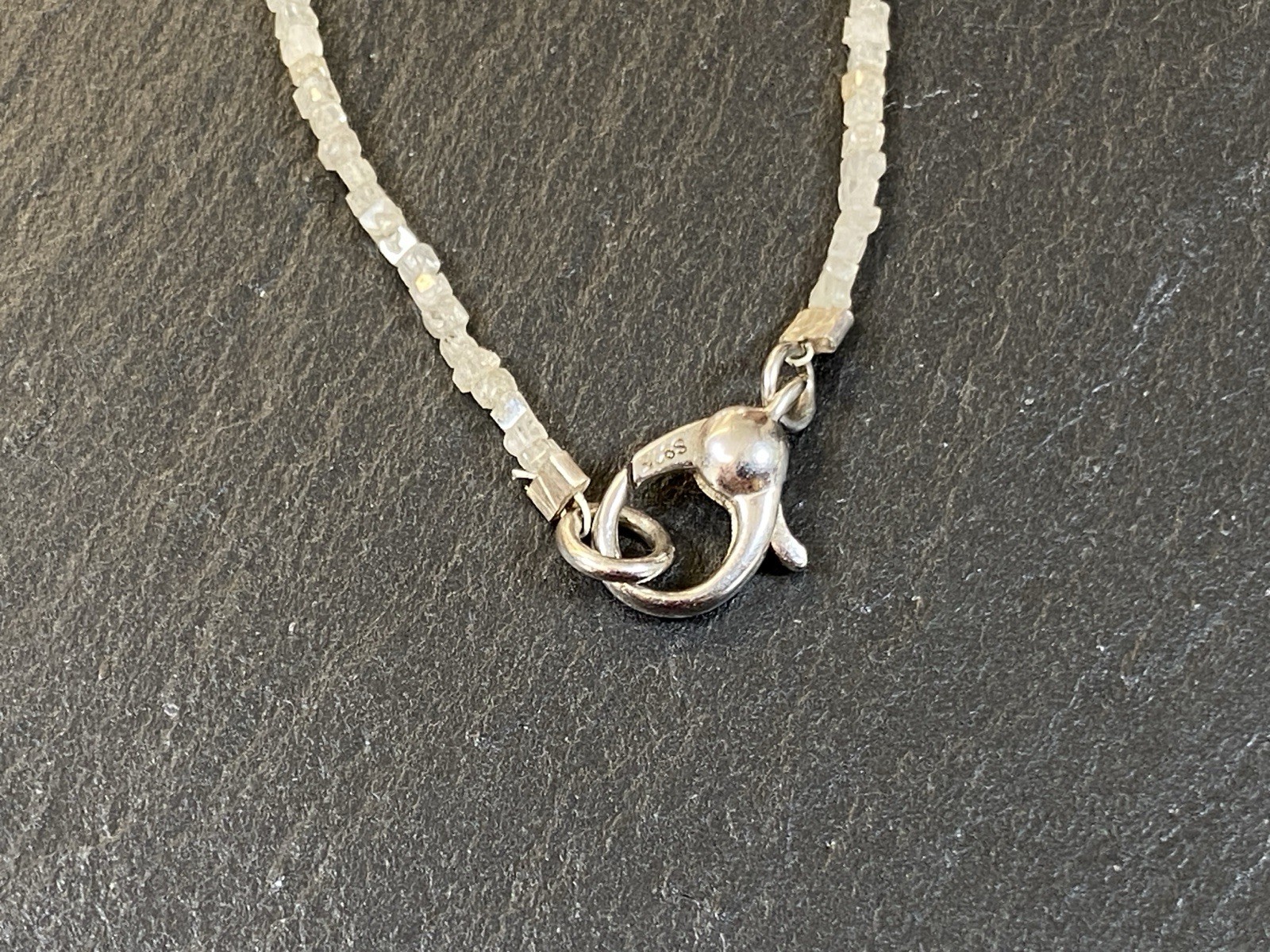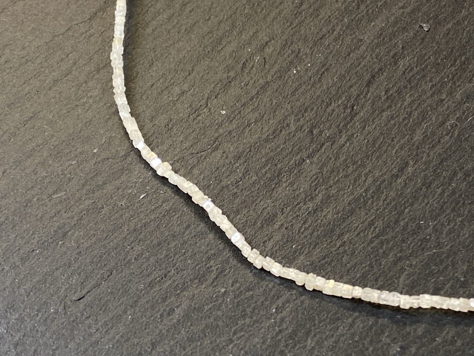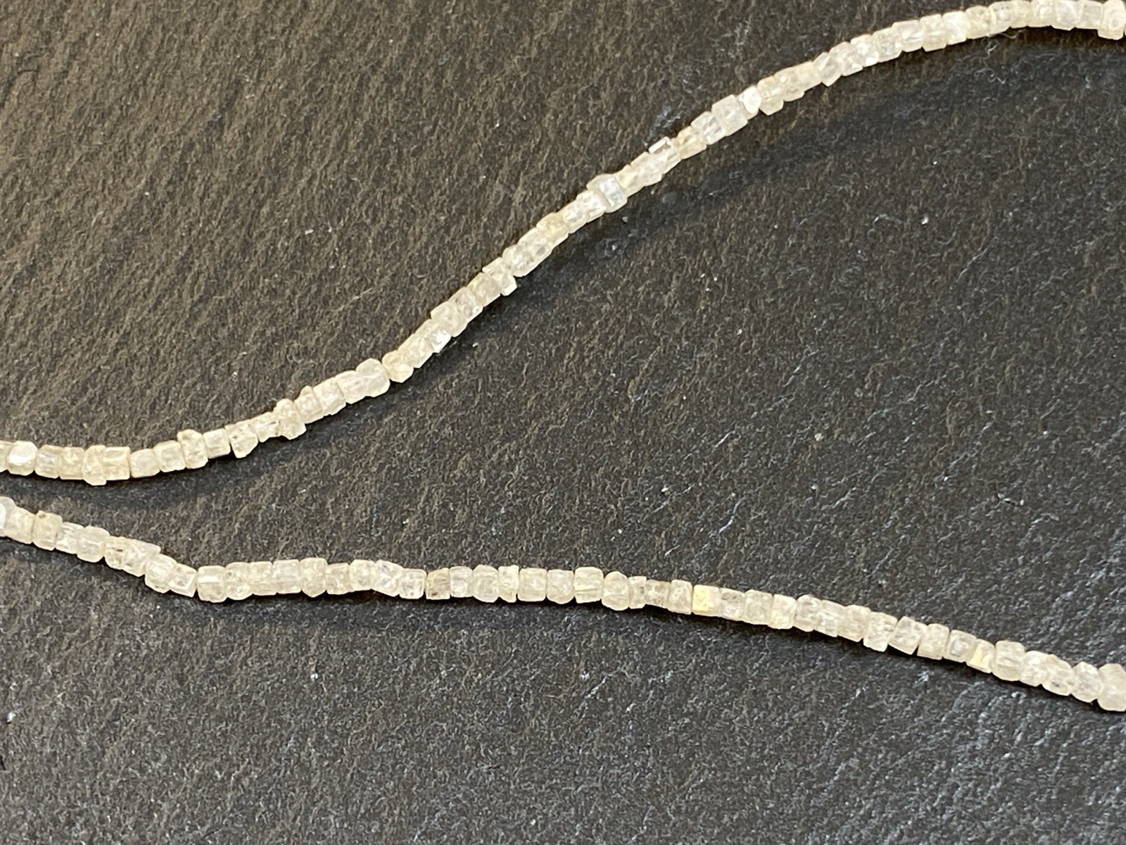 Halskette aus rohen Diamantkristallen, der Verschluss ist mit S925 gestempelt. Sehr schöner Zustand. Gesamtlänge ca. 42,5cm, Breite 0,15-0,2cm, Gesamtgewicht ca. 3,18g. Die Begutachtung der Stücke wird vorgenommen von einem Fachmitglied der deutschen gemmologischen Gesellschaft E.V. Ein Schmuckpass wird mitgeliefert.