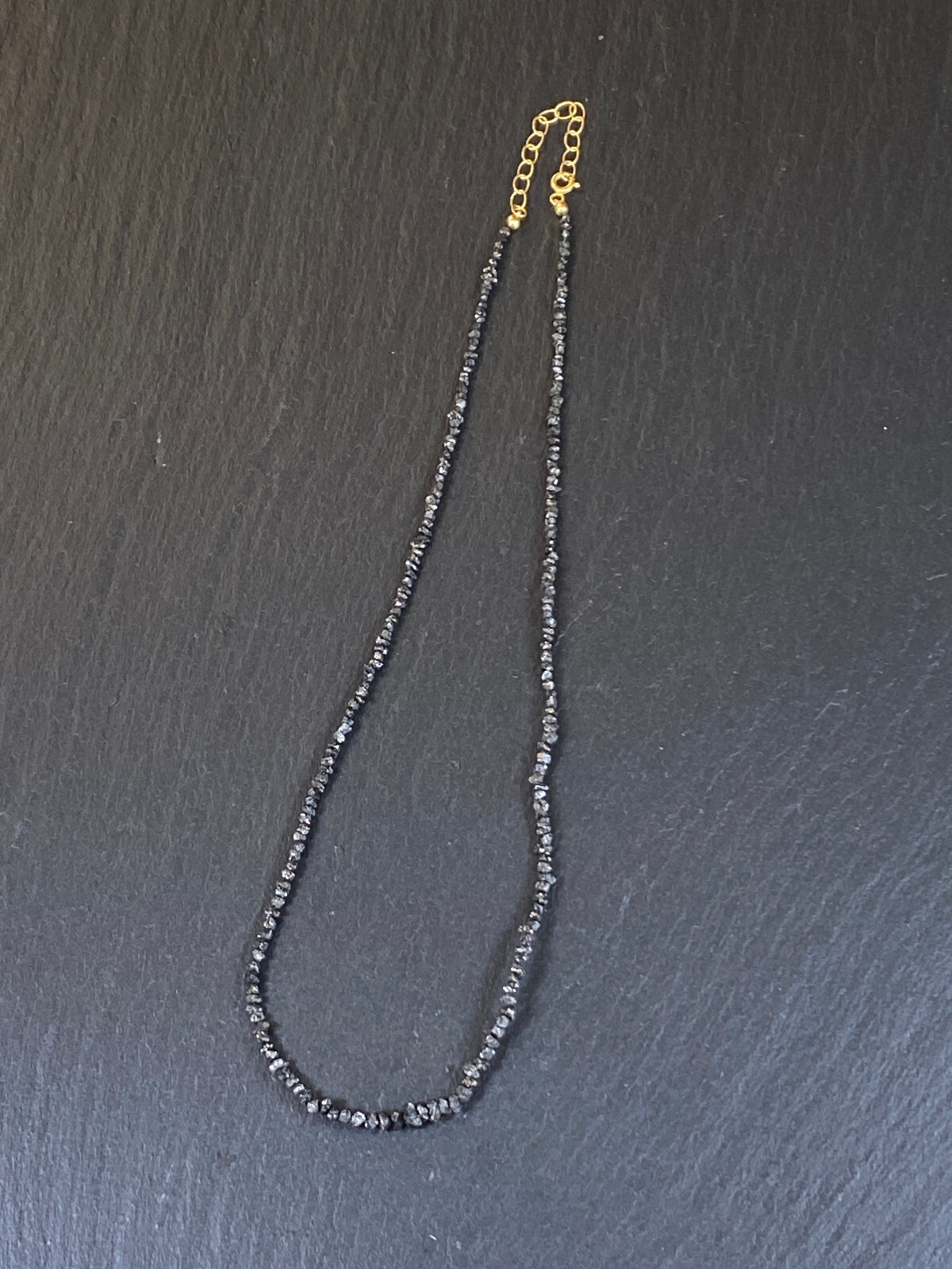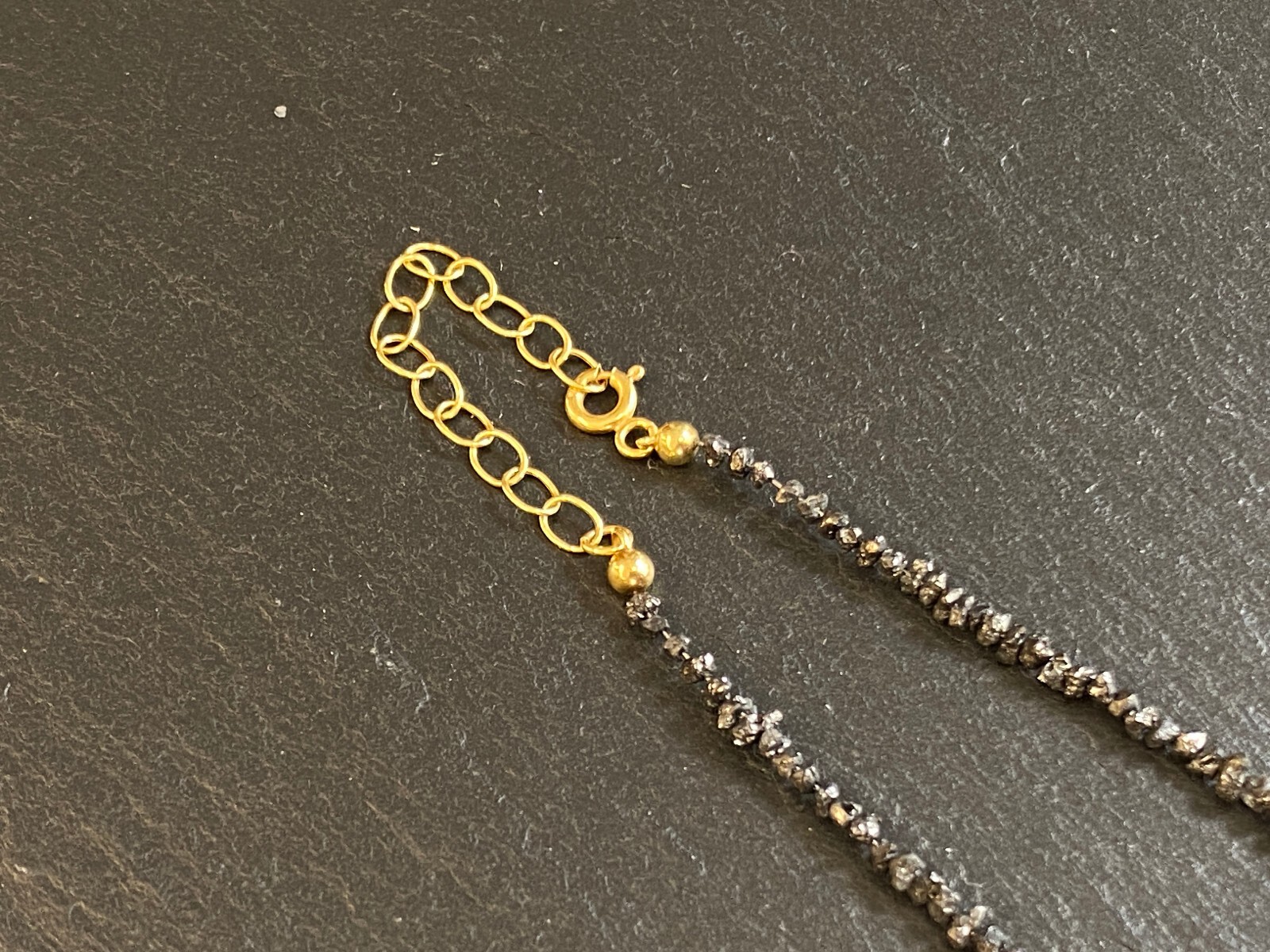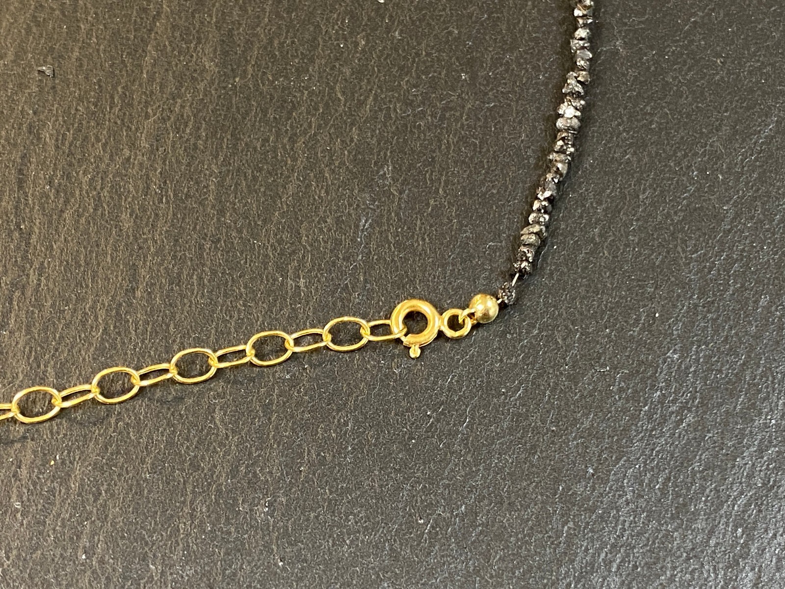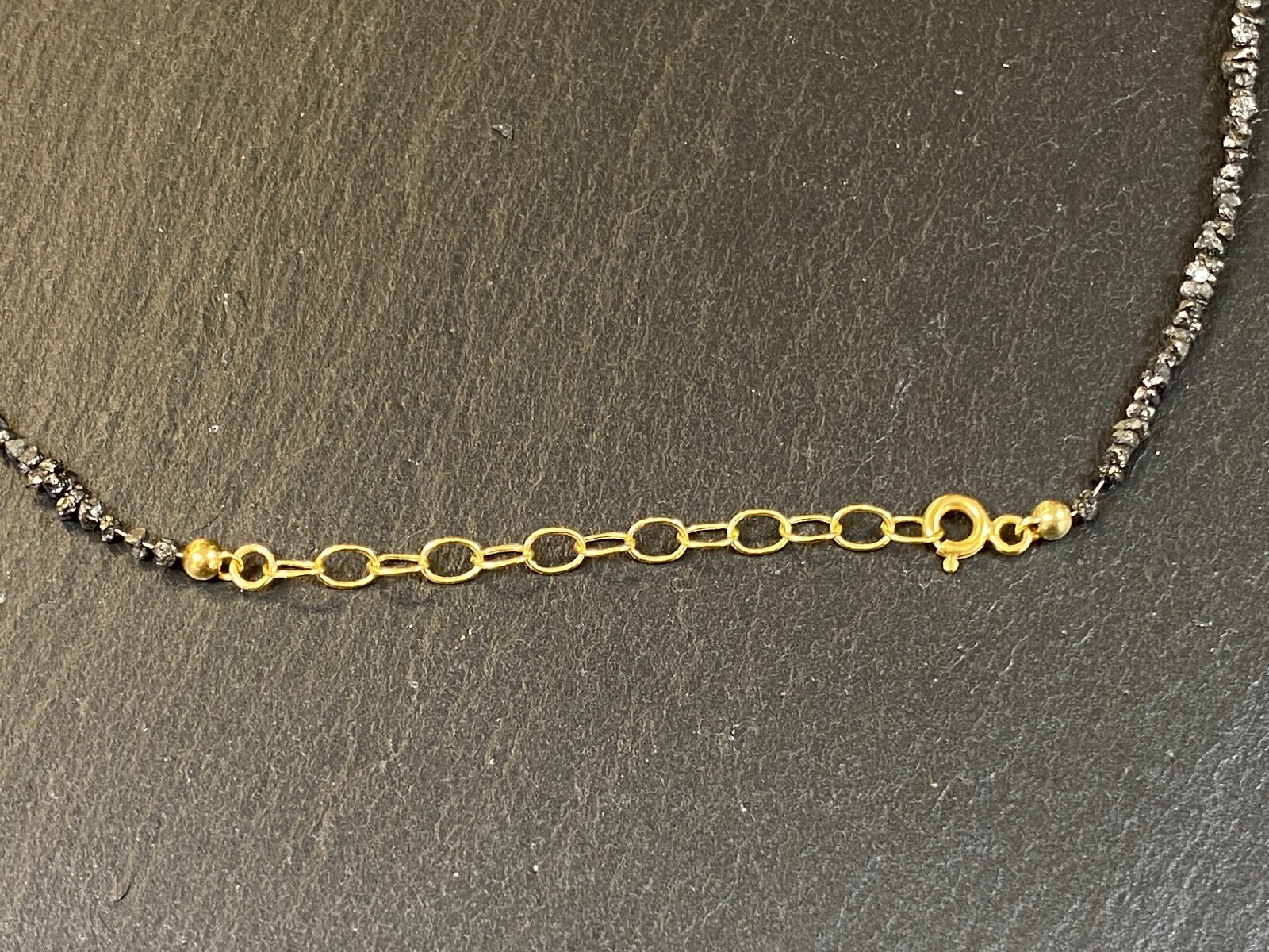 HALSKETTE KETTE AUS ROHEN DIAMANTEN 47cm LANG VERSCHLUSS 14K GELBGOLD