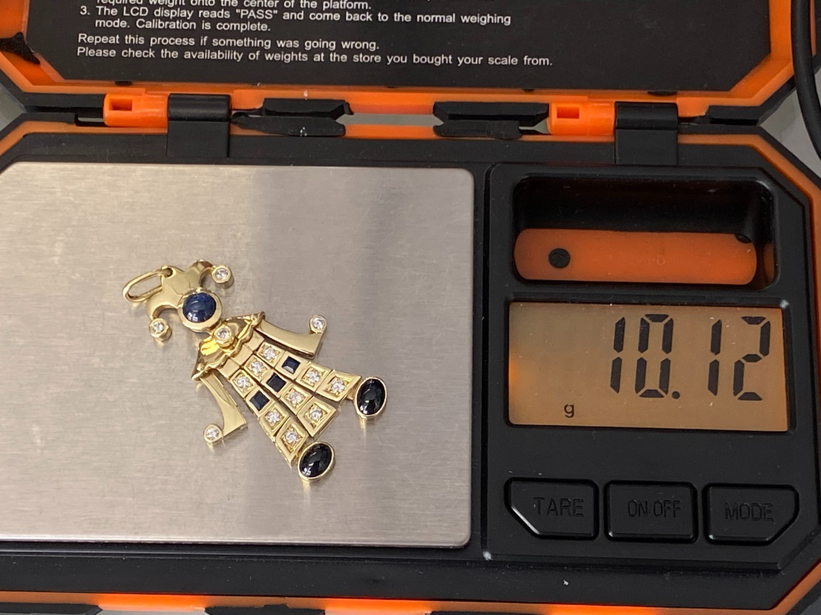 HARLEKIN ANHÄNGER GOLD 14K 10,12g DIAMANTEN 0.37ct UND SAPHIRE 1.39ct