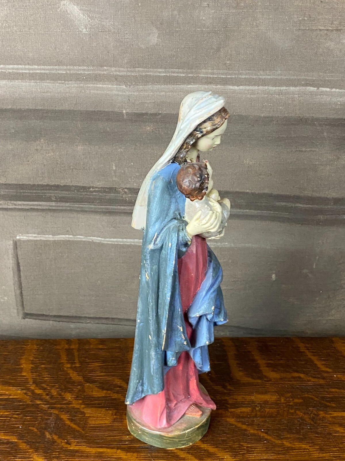 HEILIGENFIGUR HEILIGE MARIA MIT DEM JESUSKIND HOLZ HANDBEMALT POLYCHROMIE 28cm