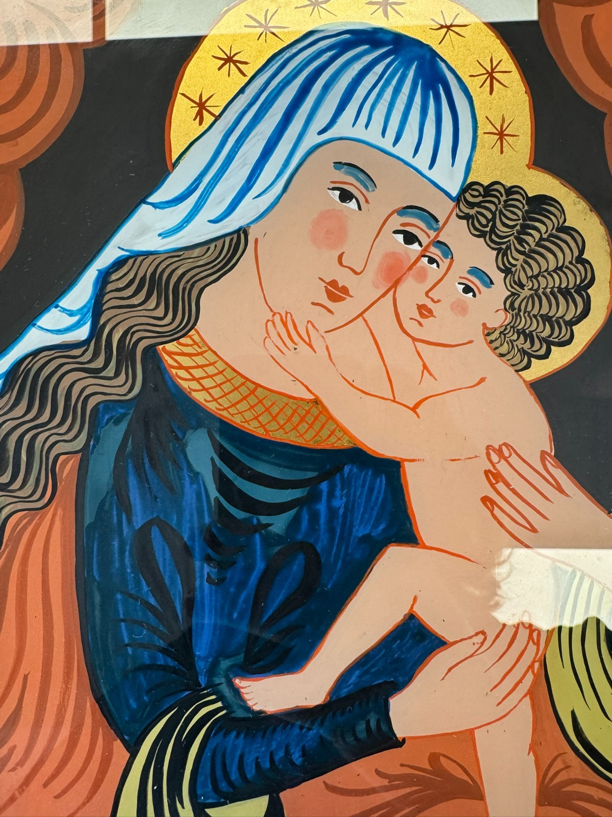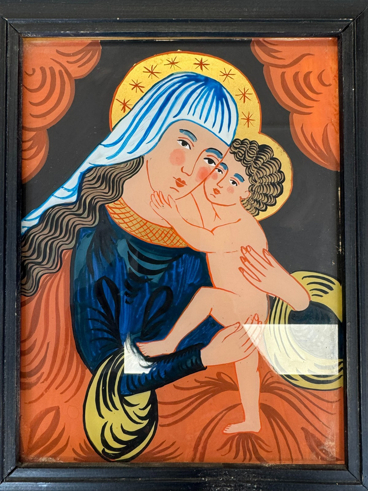 HINTERGLASMALEREI HEILIGE MARIA MIT DEM JESUS KIND