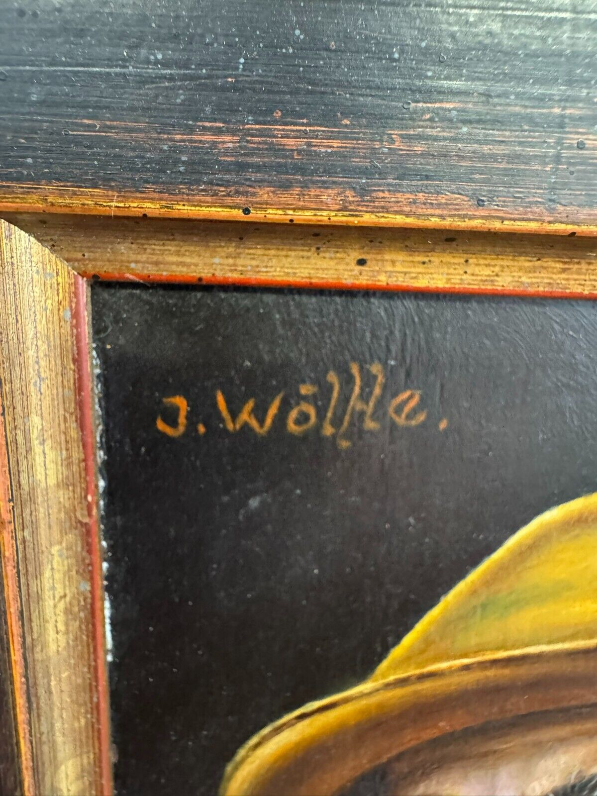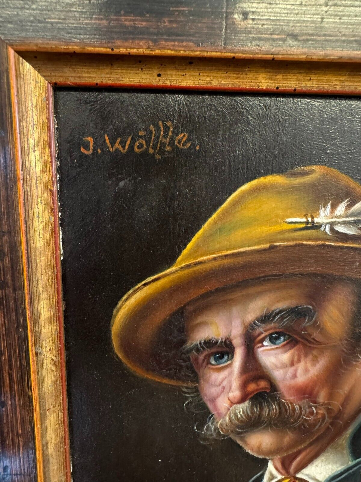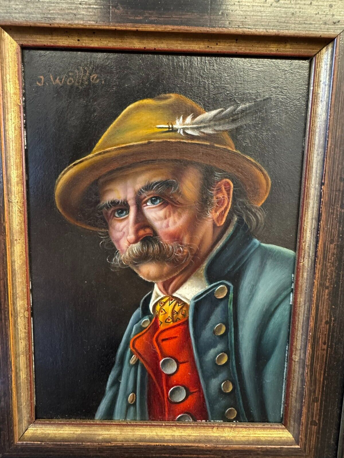 Ölgemälde auf Platte, im Prunkrahmen gerahmt, Portrait eines Bauers, oben links signiert, die Ränder am Passepartout leicht berieben. Abmessungen: 13,5×18, mit Rahmen: 32x37cm.