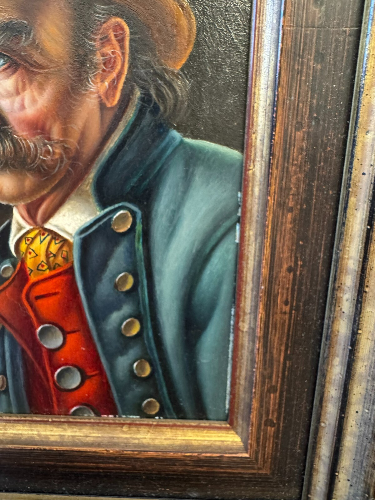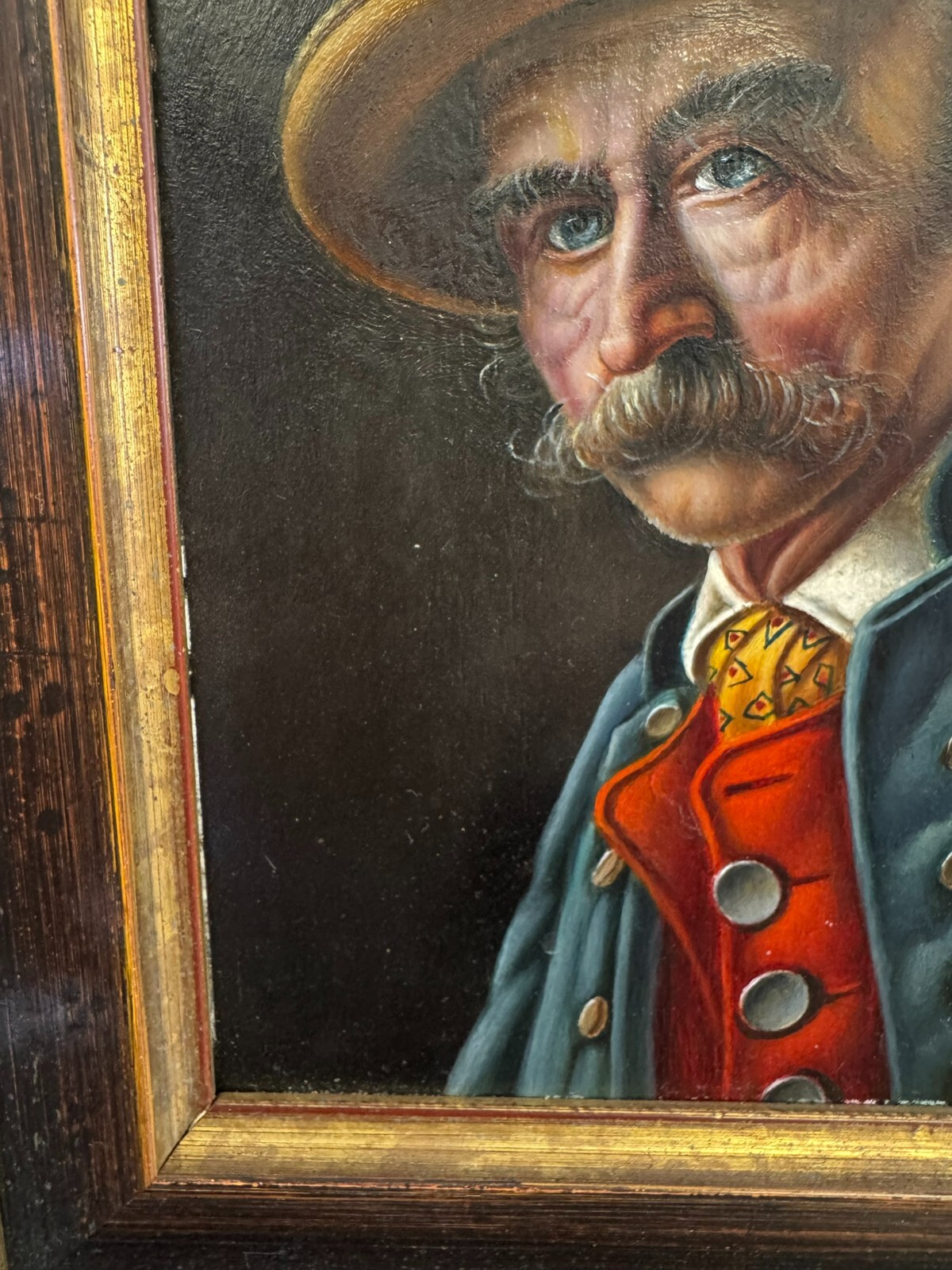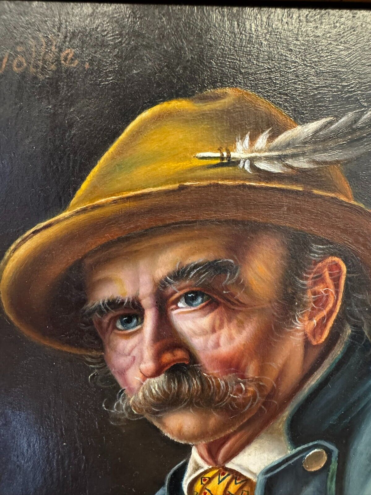 Ölgemälde auf Platte, im Prunkrahmen gerahmt, Portrait eines Bauers, oben links signiert, die Ränder am Passepartout leicht berieben. Abmessungen: 13,5×18, mit Rahmen: 32x37cm.