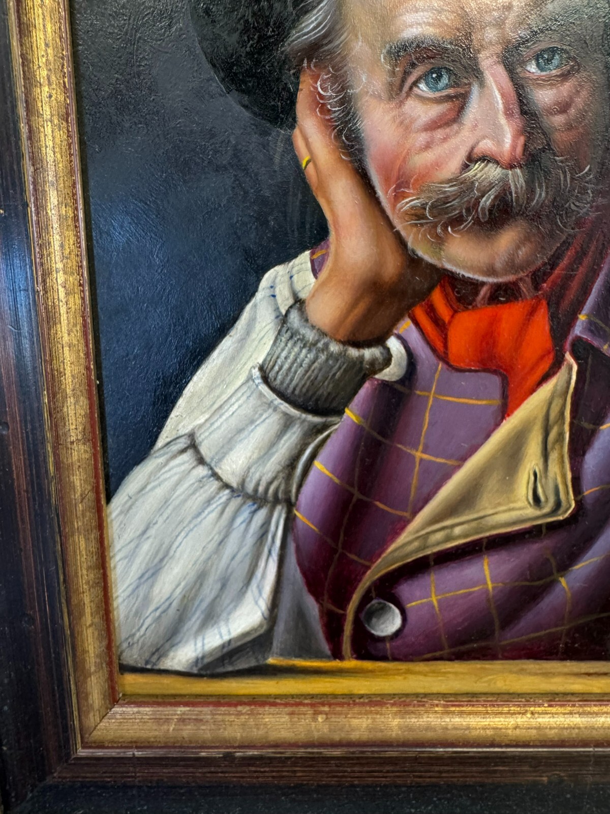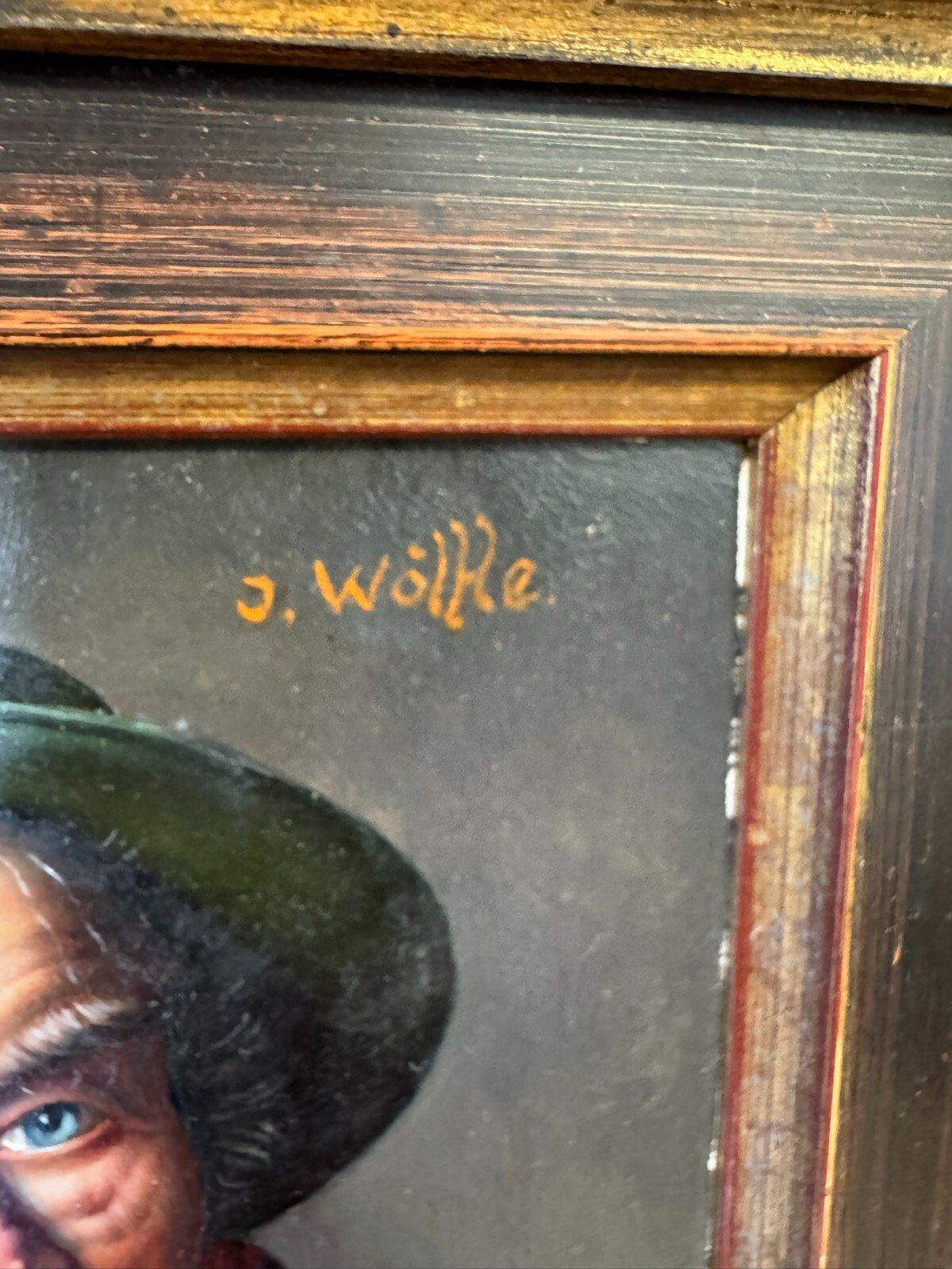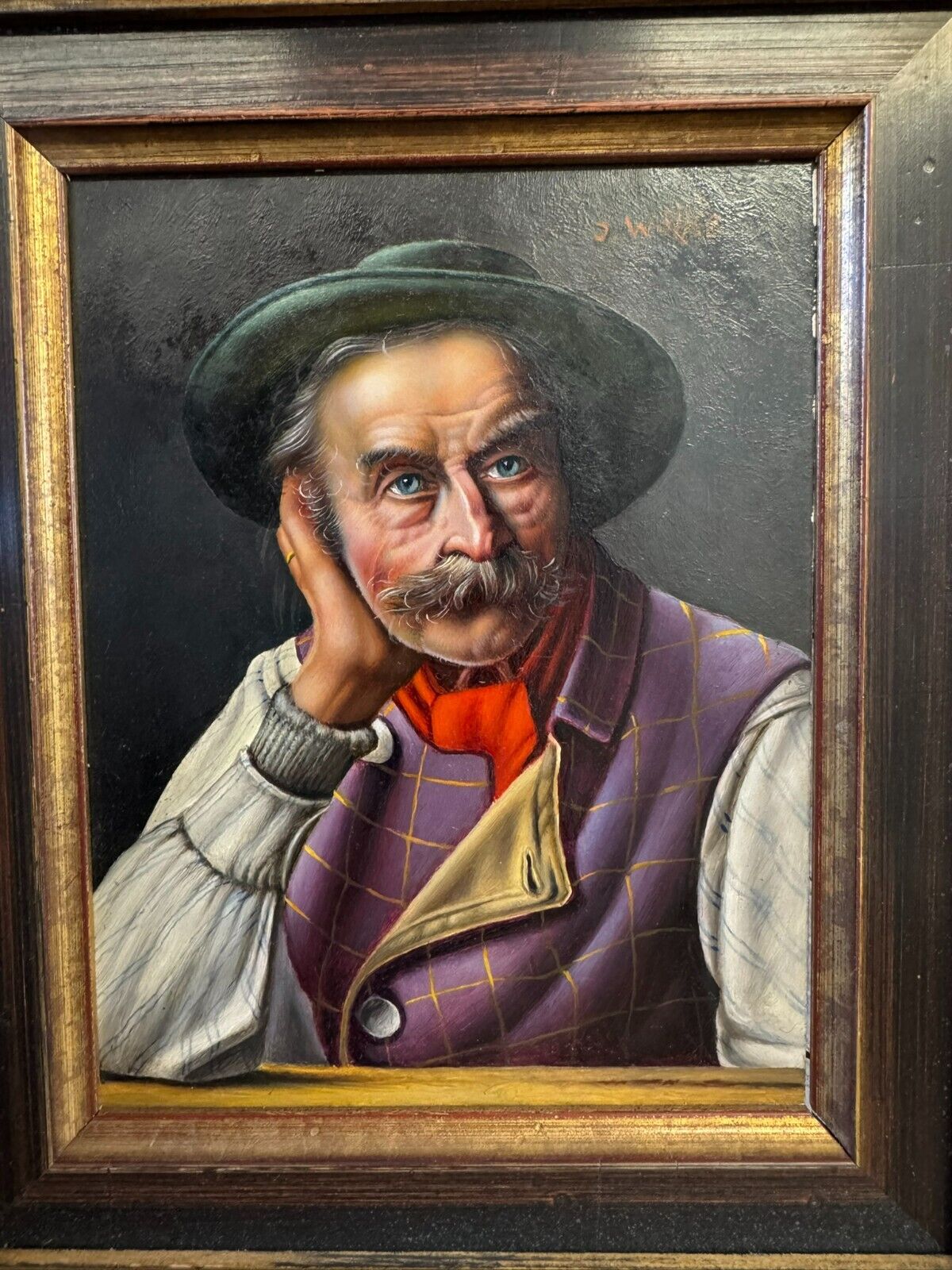 Ölgemälde auf Platte, im Prunkrahmen gerahmt, Portrait eines Bauers, oben links signiert, die Ränder am Passepartout leicht berieben. Abmessungen: 14×18, mit Rahmen: 32x37cm.