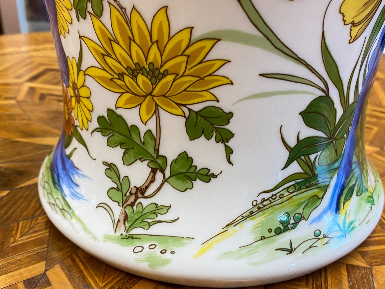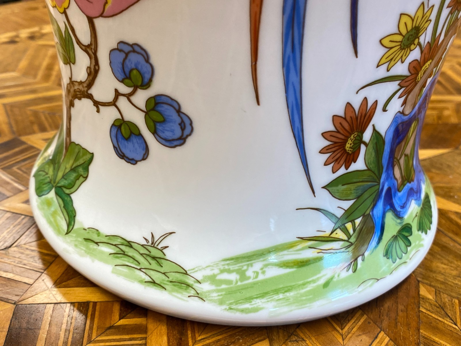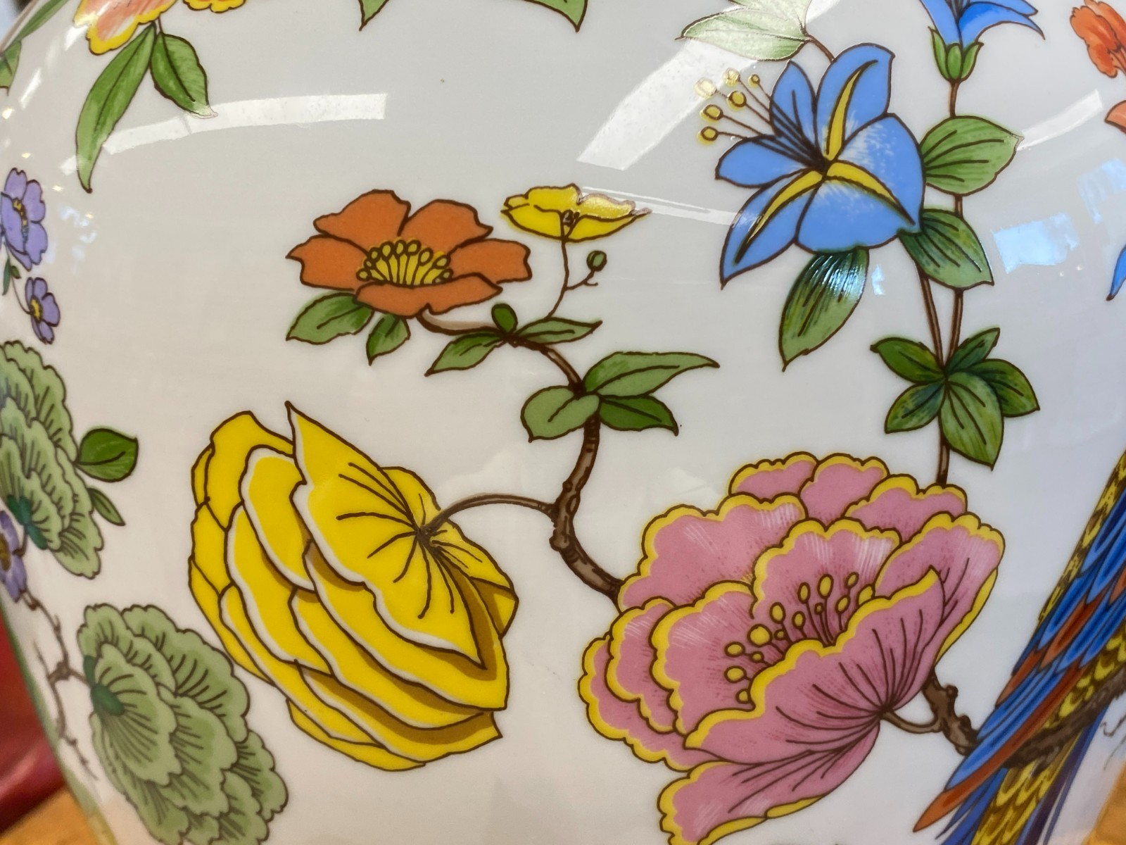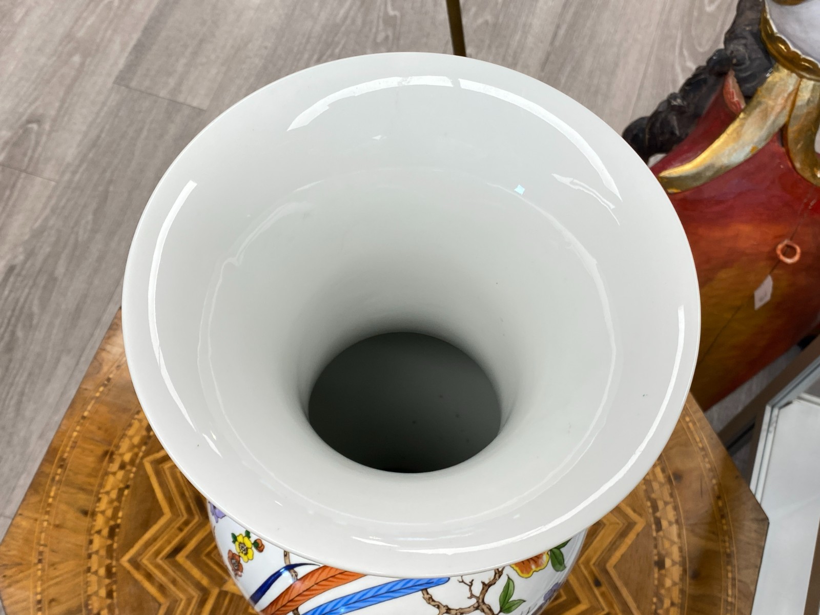 Sehr schöne große Vase aus Porzellan der Manufaktur Kaiser im Dekor Nanking. Die Vase ist dekoriert mit Blumen, Bäumen und Vögeln im Stil chinesischer Porzellane. Keine Chips oder Abplatzer, Gesamthöhe ca. 56cm. Durchmesser der Bodenplatte ca. 17cm, Durchmesser der Öffnung ca. 21,2cm, Gesamtgewicht ca. 4,03kg.