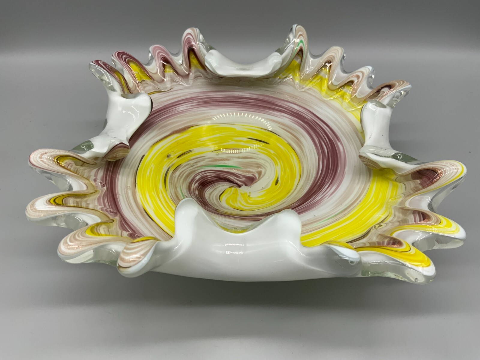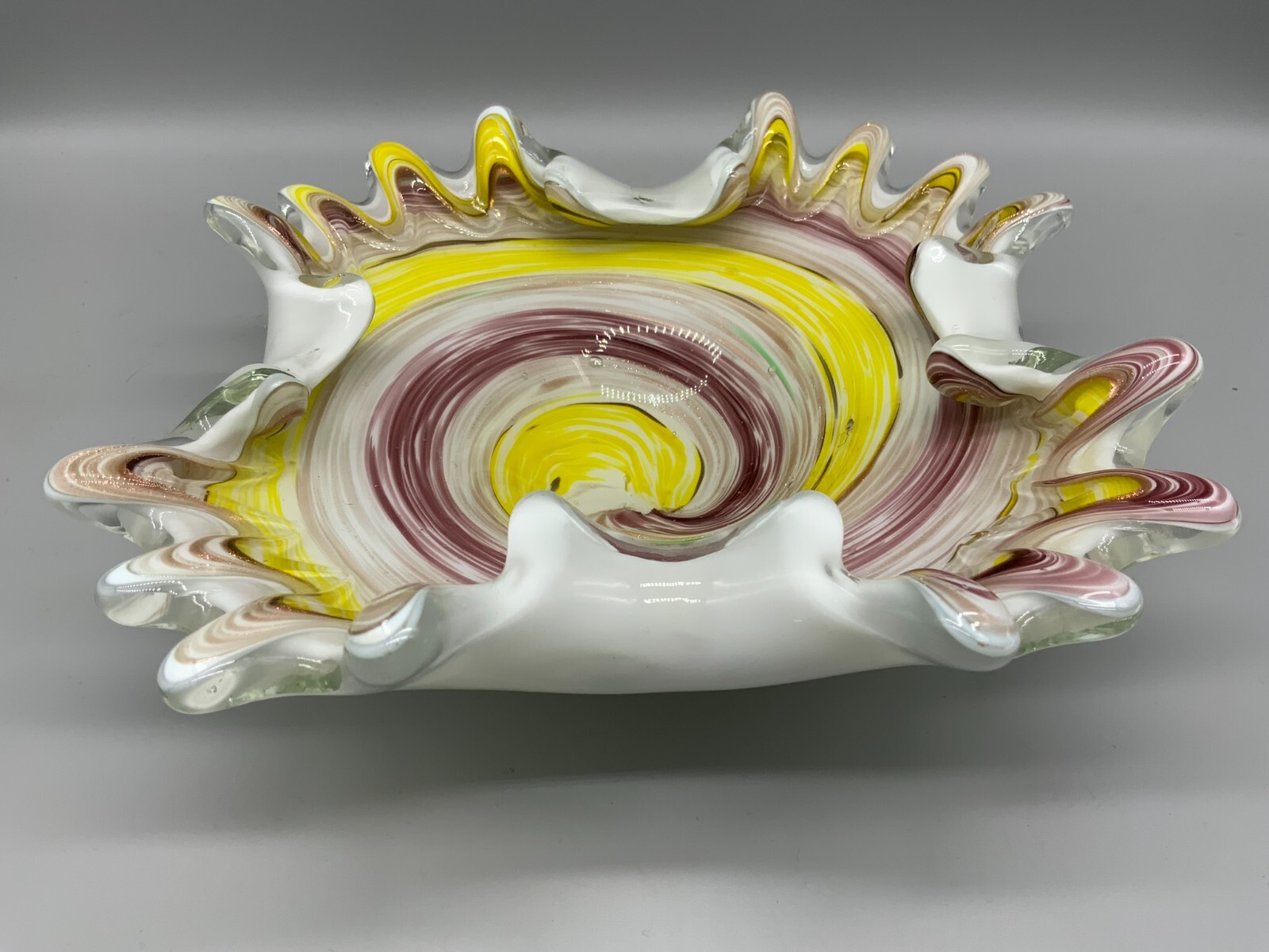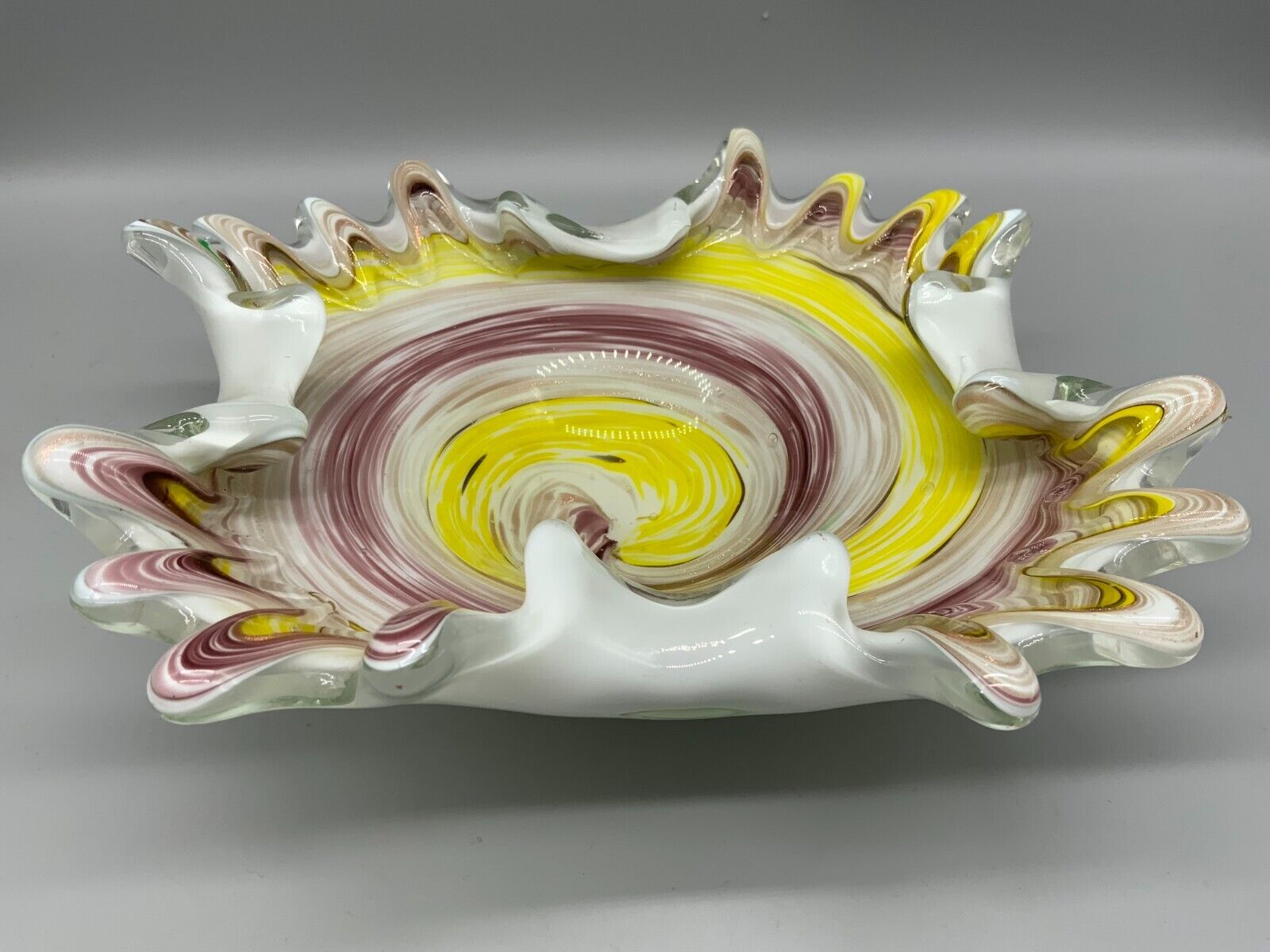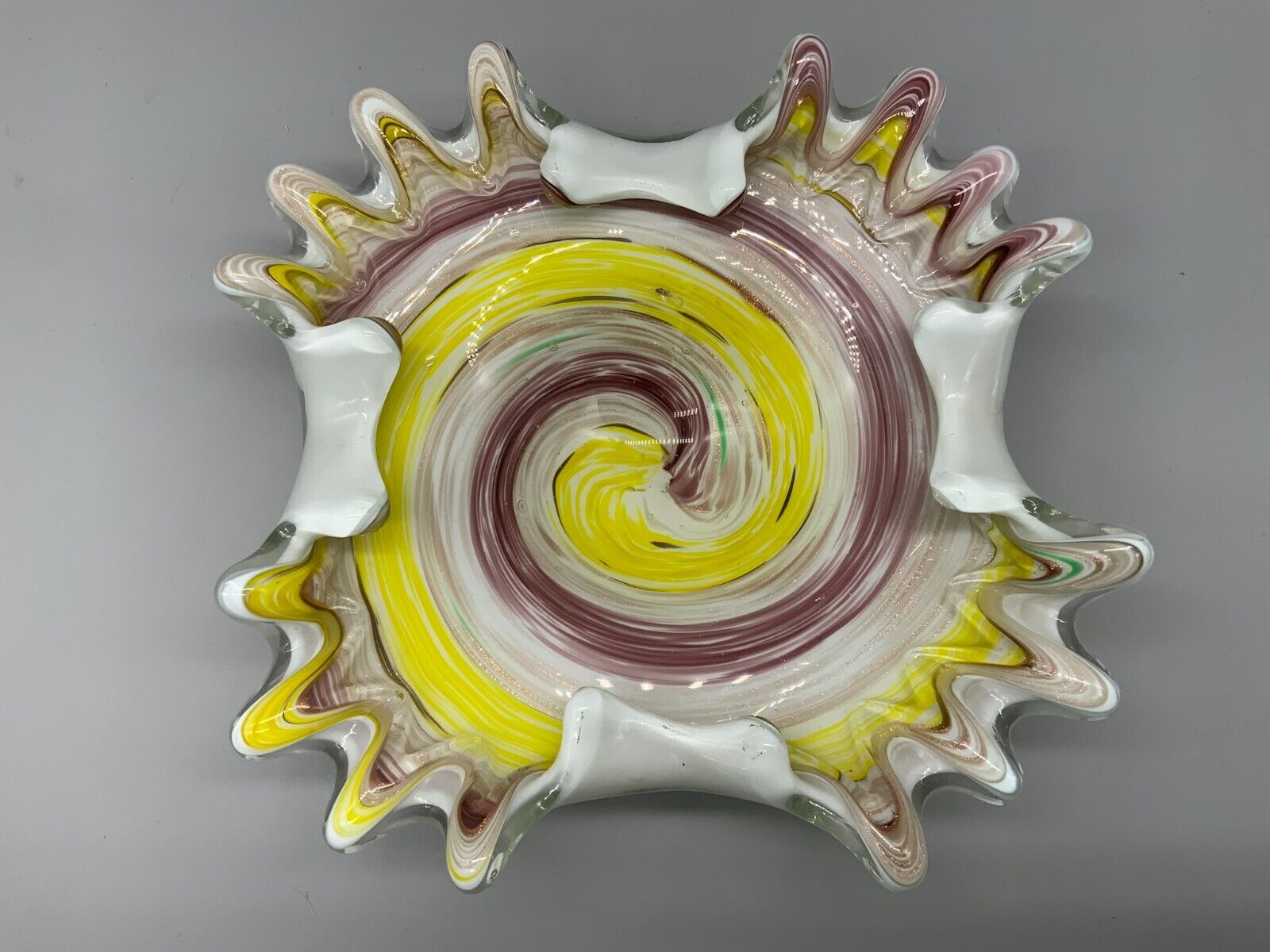KÜNSTLERGLAS SCHALE AUS GLAS MASSIV GEARBEITET Ø 26cm OHNE CHIPS