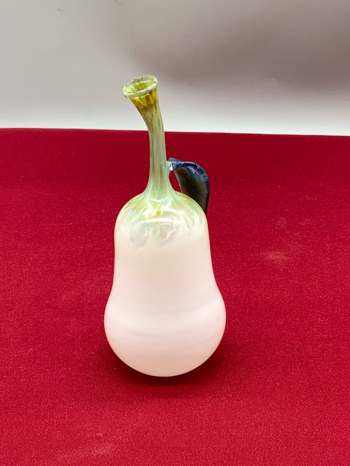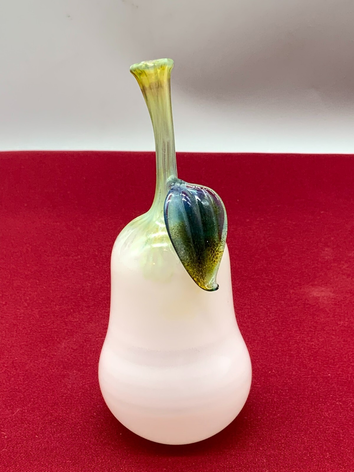 KUNSTOBJEKT BIRNE AUS GLAS MUNDGEBLASEN SIGNIERT UND DATIERT