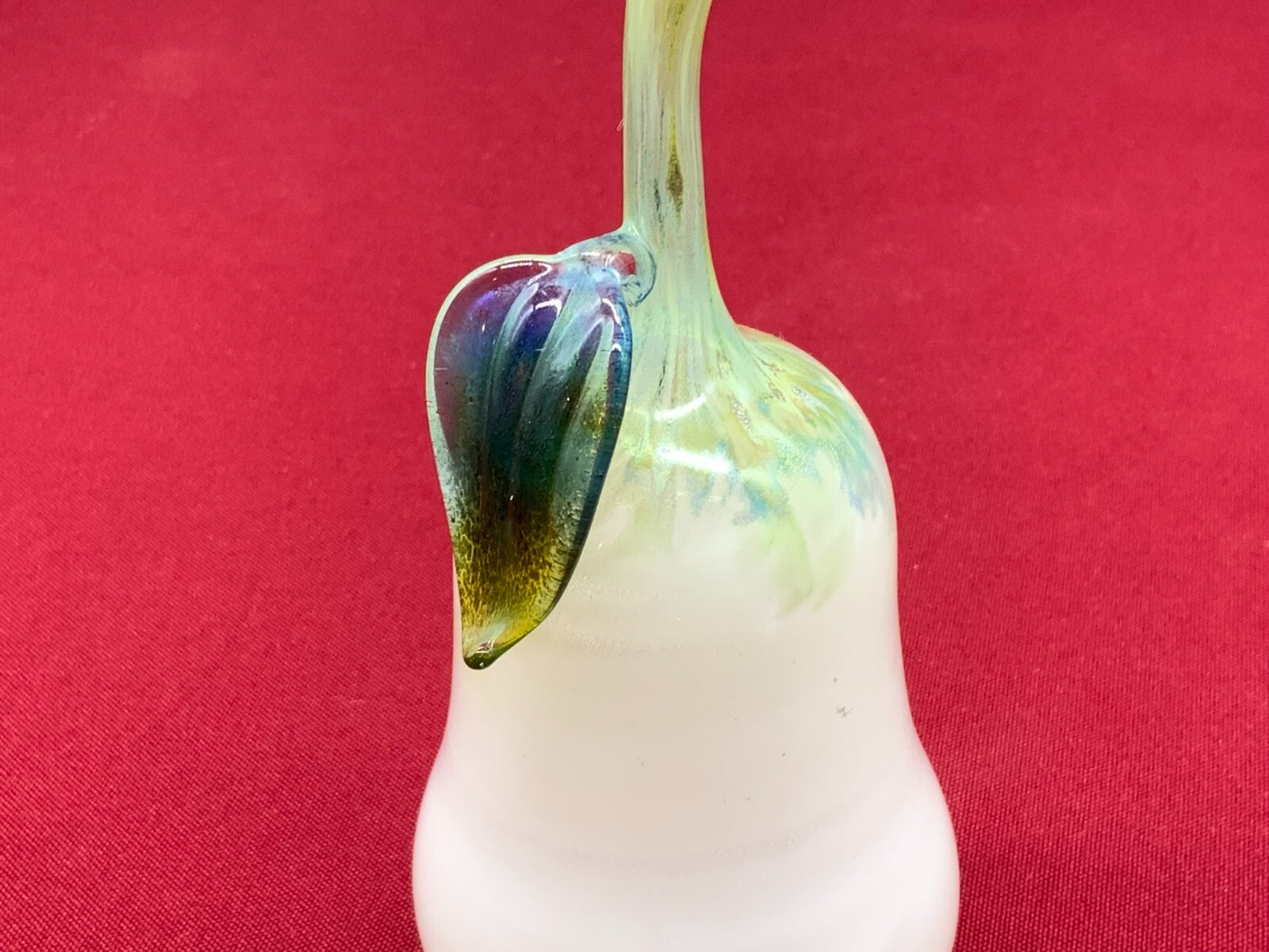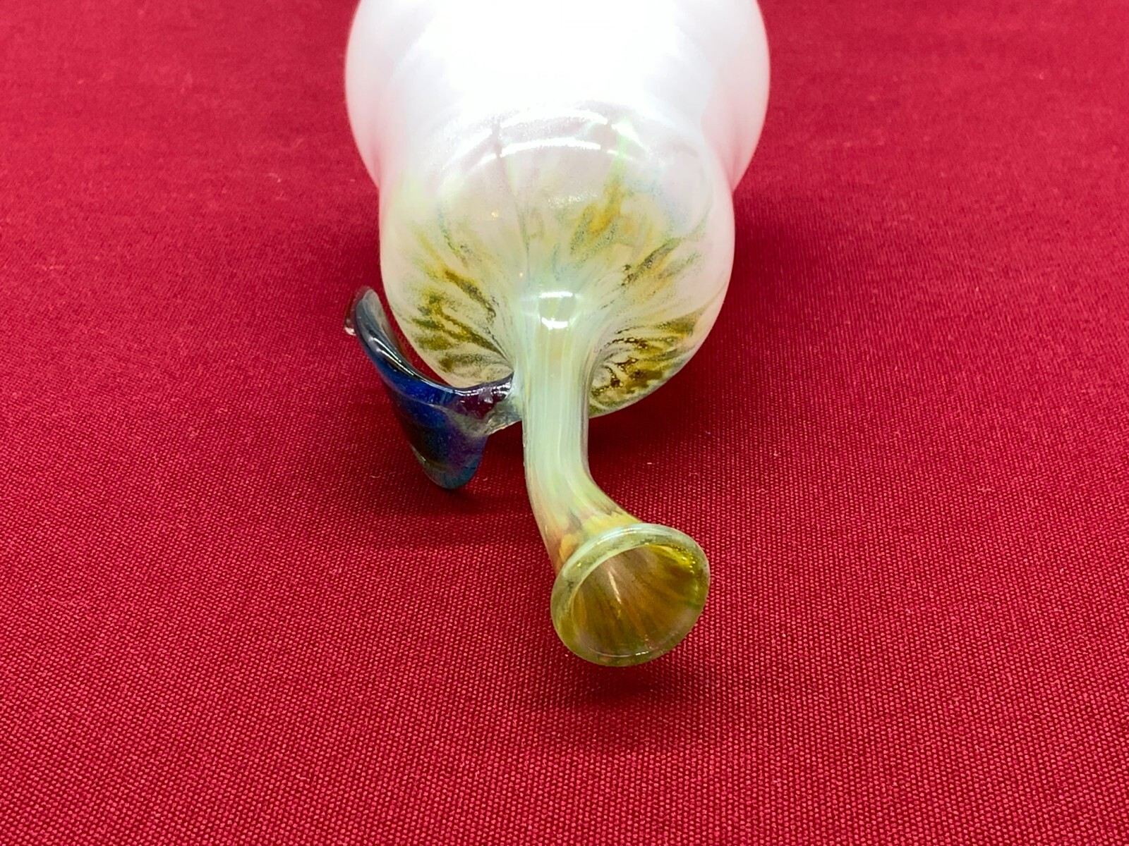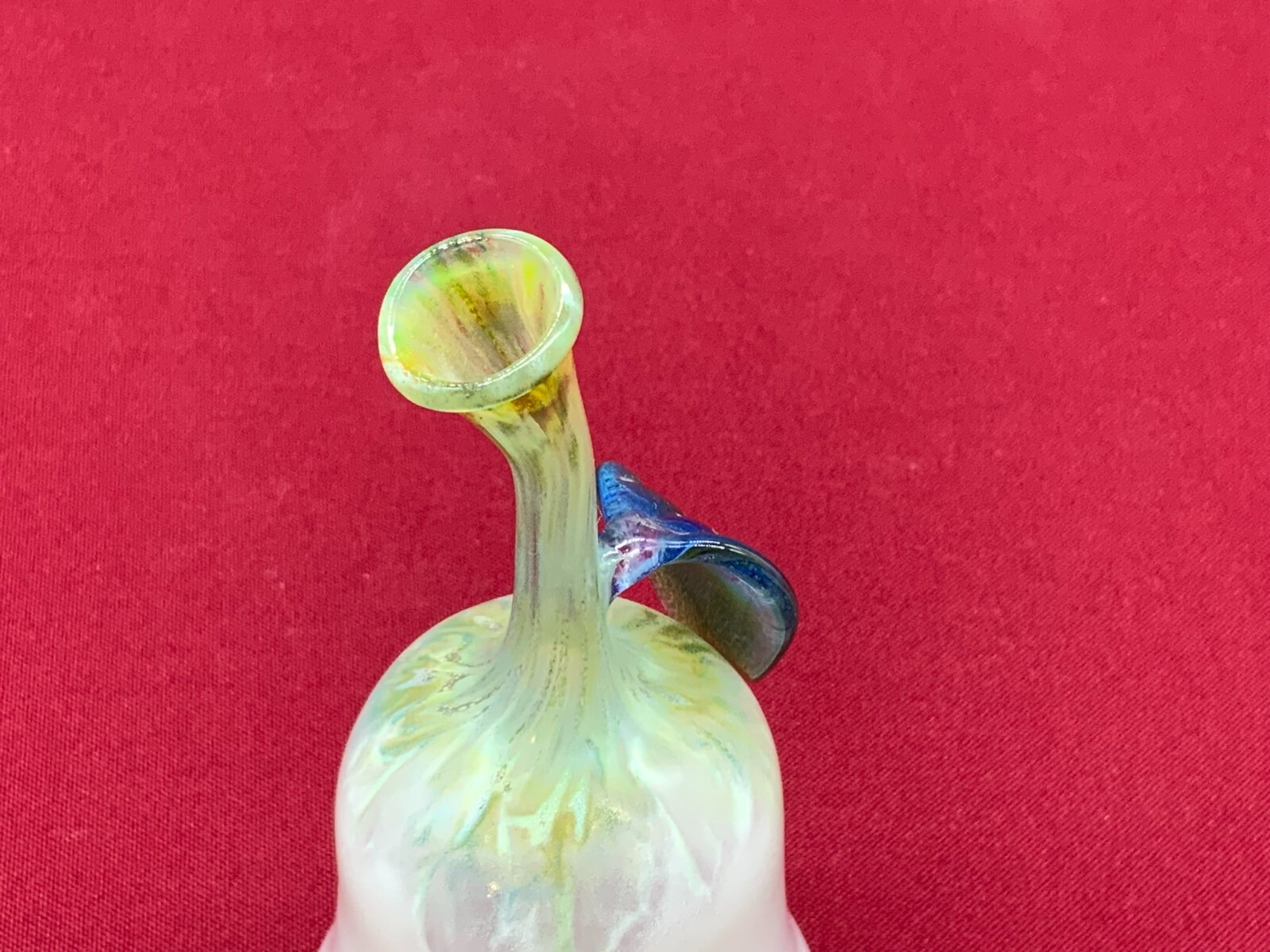 Sehr schönes Kunstobjekt aus Glas, schmale Vase in Form einer Birne. Mundgeblasen, am Boden signiert und datiert. Höhe/Durchmesser 15/6cm.