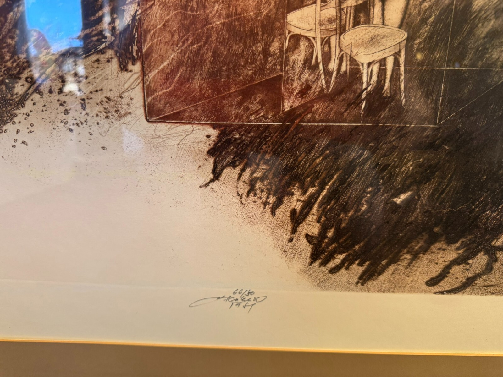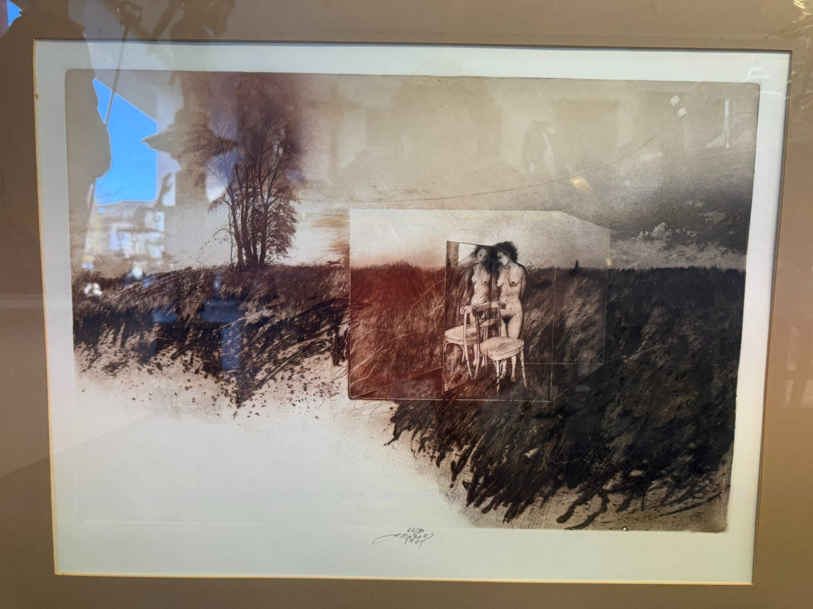 Farbradierung auf Papier mit Bleistift signiert, bezeichnet und nummeriert, gerahmt hinter Glas, der Rahmen minimal berieben, das Blatt befindet sich in schönem Zustand, Abmessungen sichtbar: 59x44cm, gesamt: 81x71cm.
