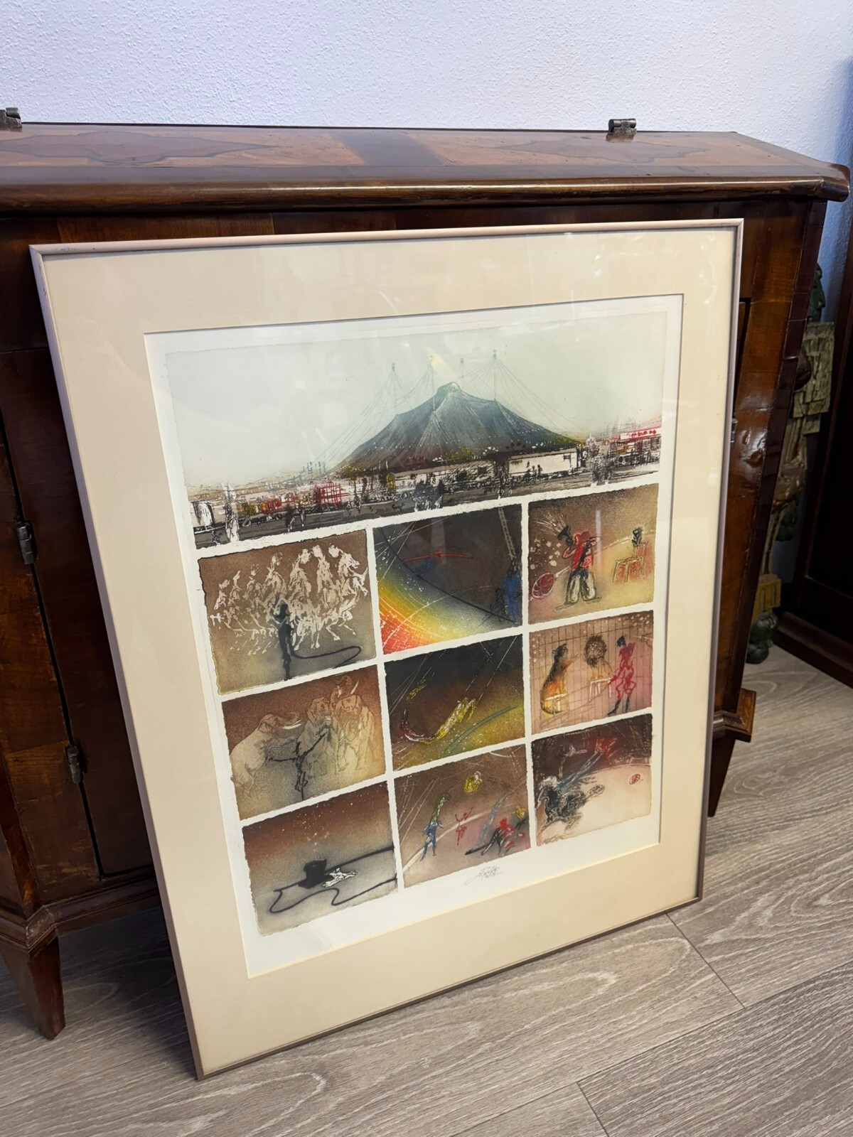 Farbradierung auf Papier mit Bleistift signiert, bezeichnet und nummeriert, gerahmt hinter Glas, der Rahmen minimal berieben, das Blatt befindet sich in schönem Zustand, Abmessungen sichtbar: 51x65cm, gesamt: 65x82cm.