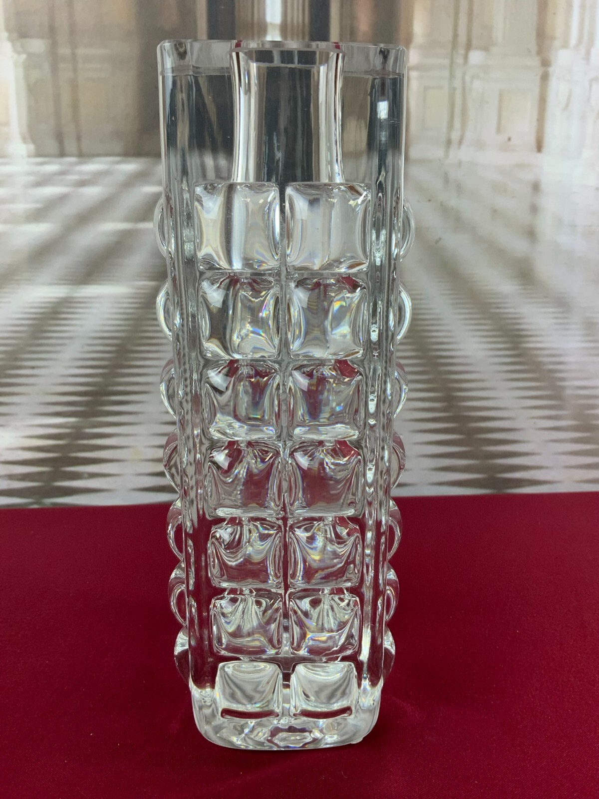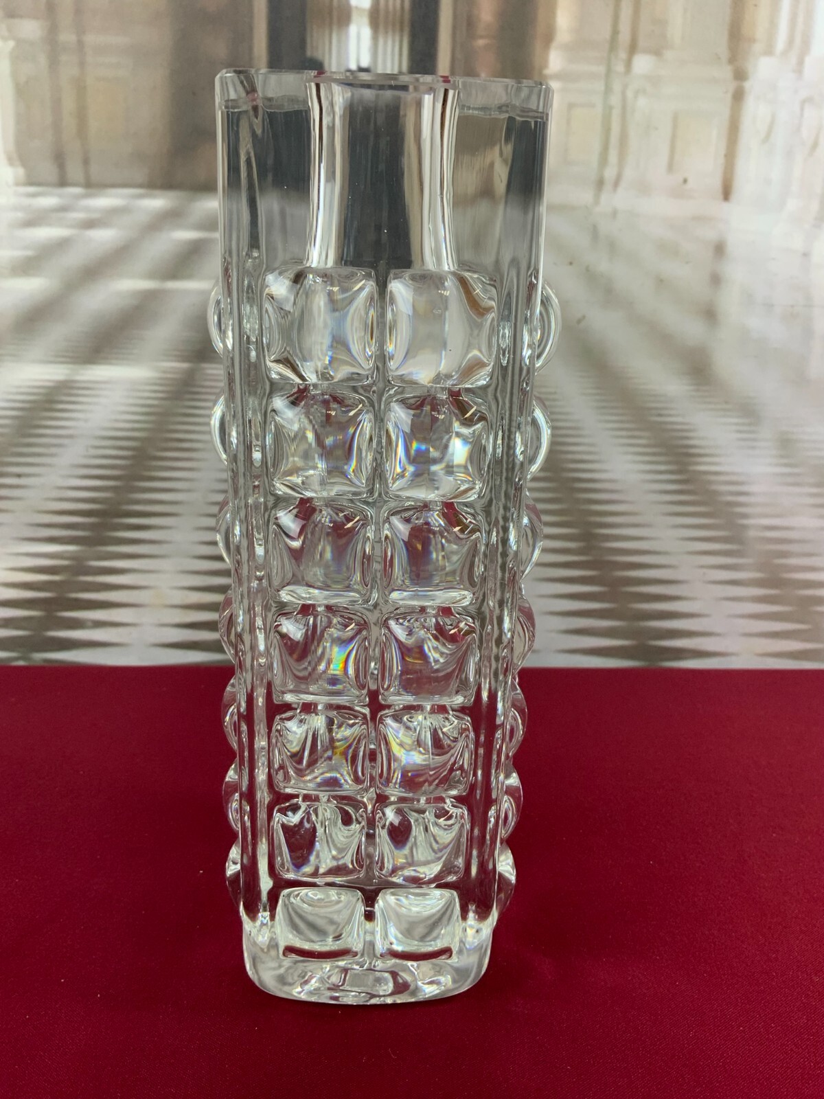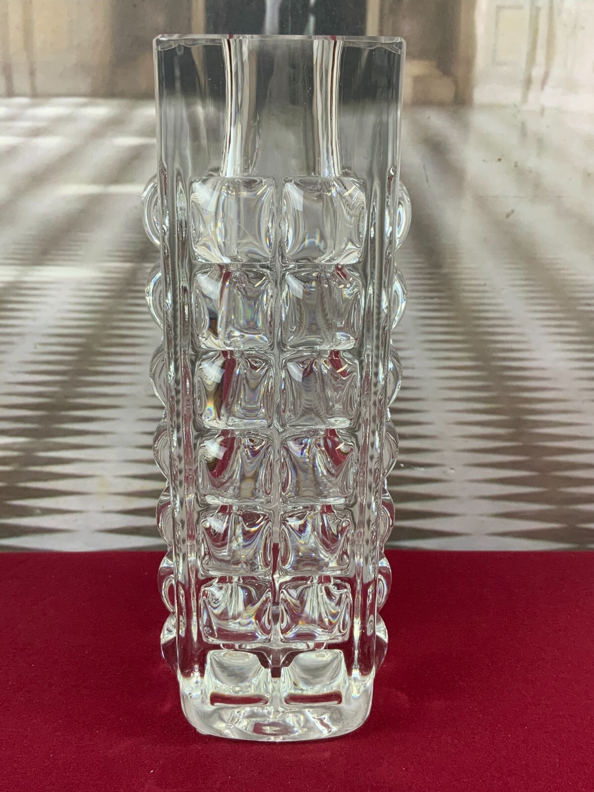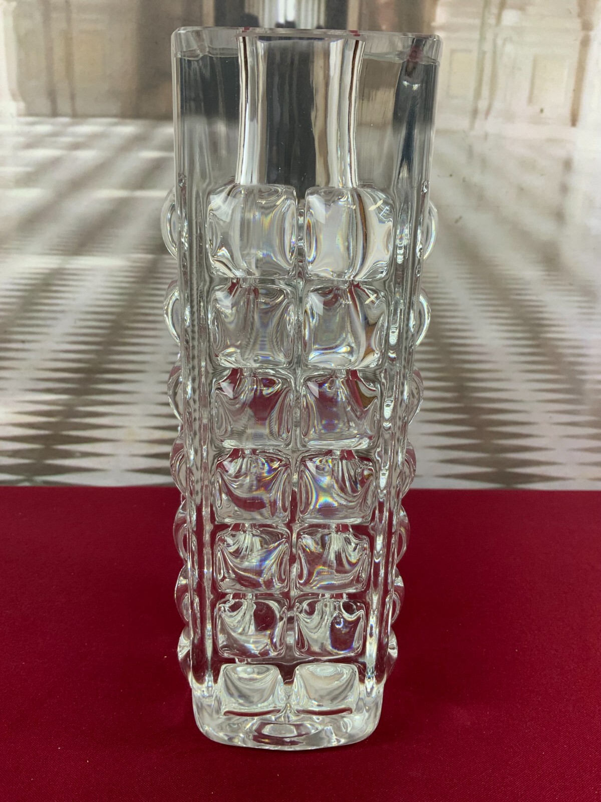 MASSIVE VASE AUS GLAS ICHENDORF BLOCKVASE 5kg 29cm HOCH NOPPEN OP ART