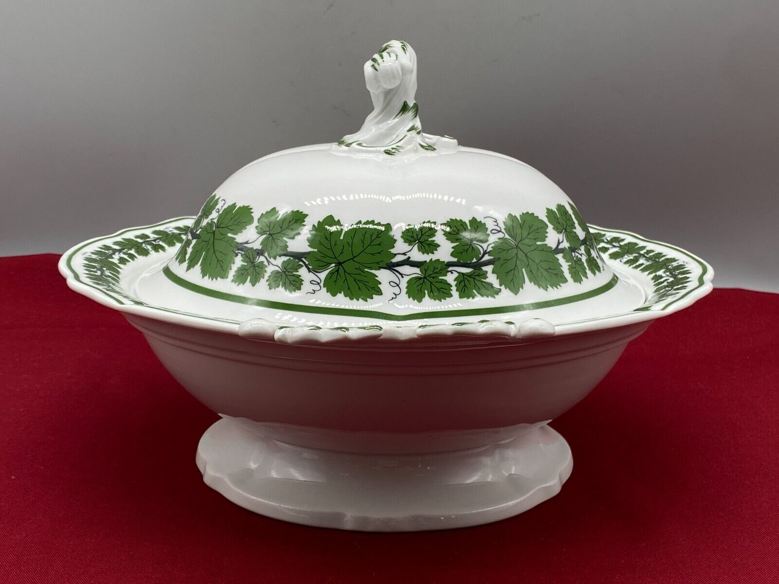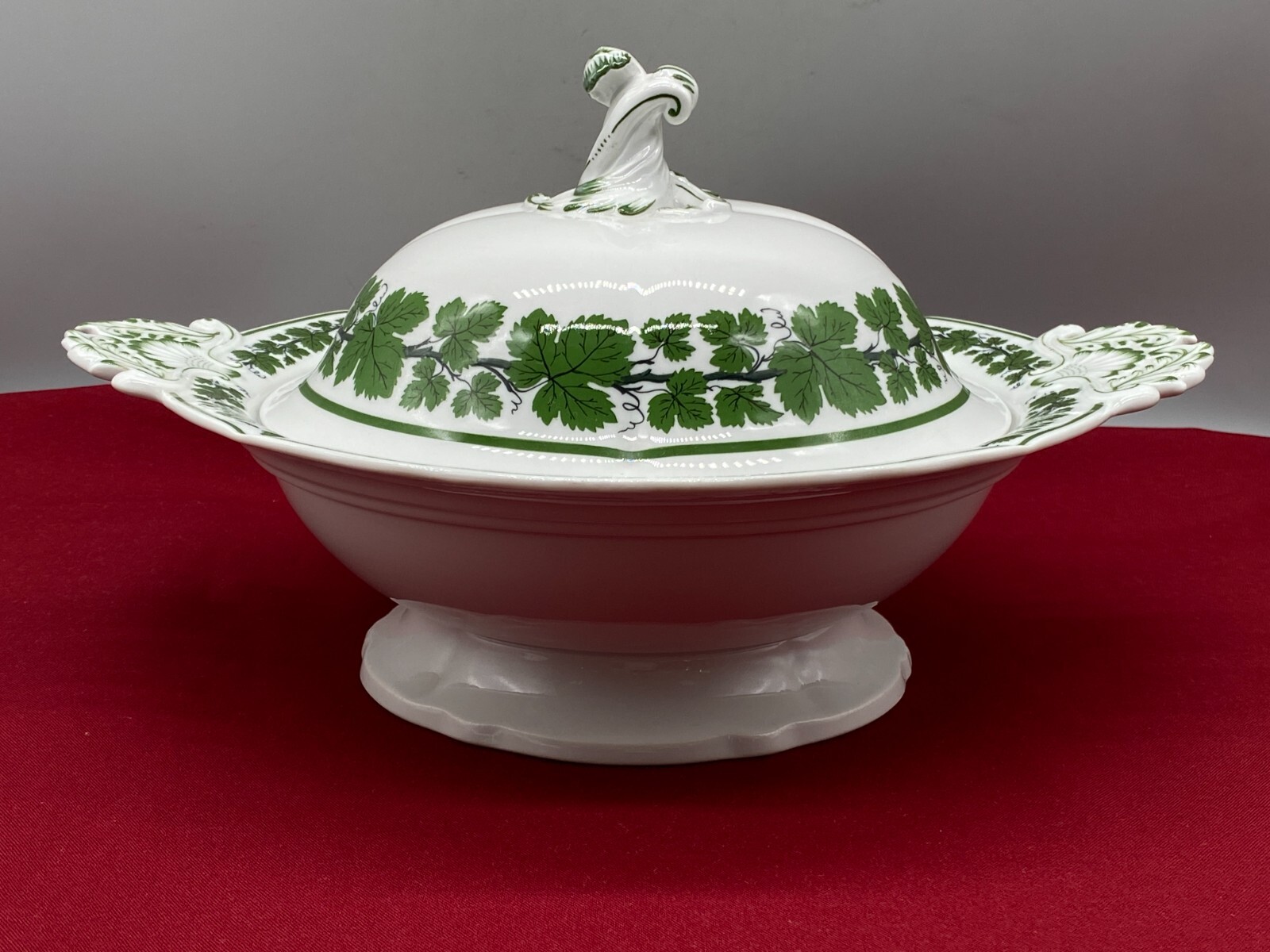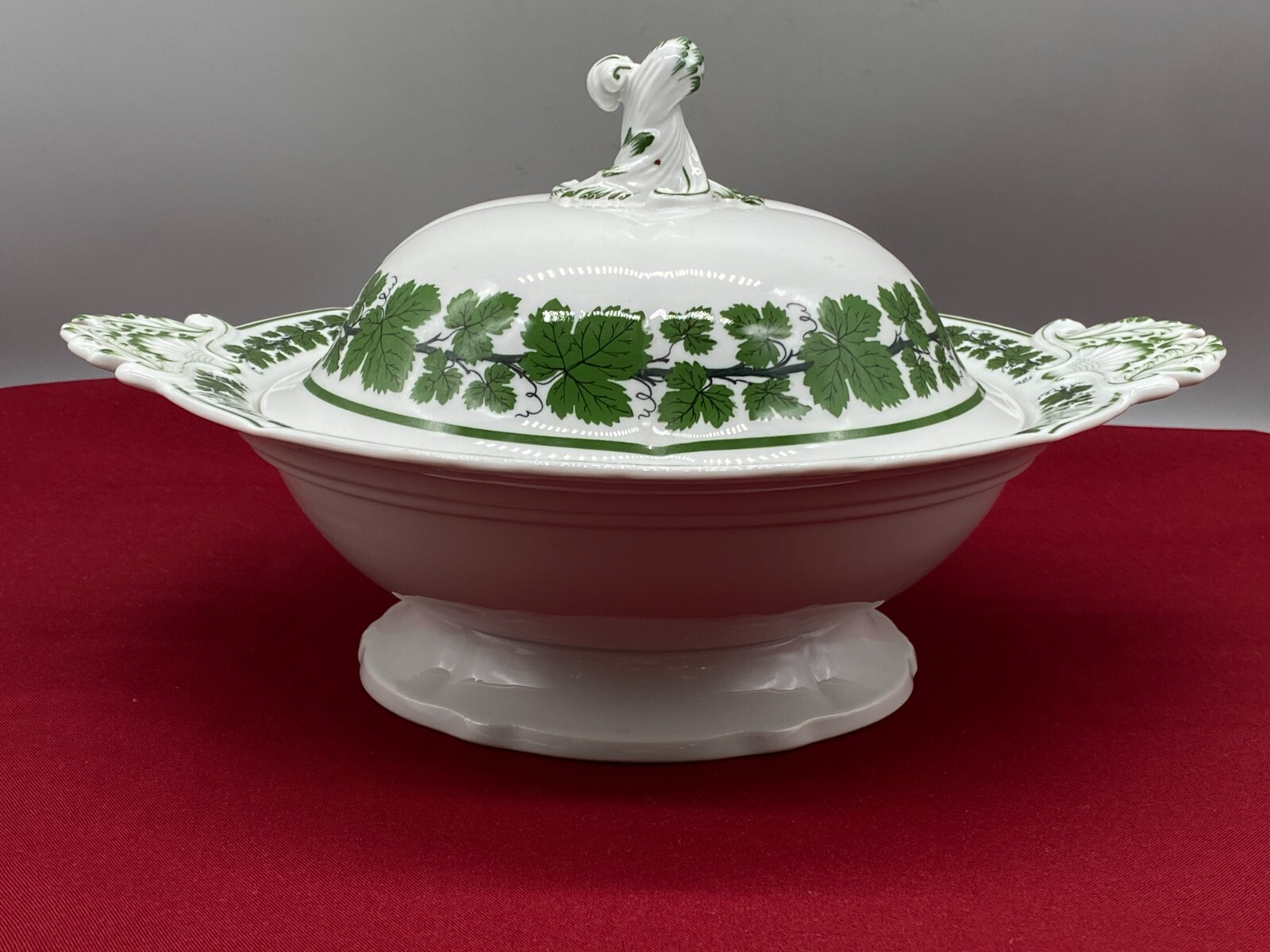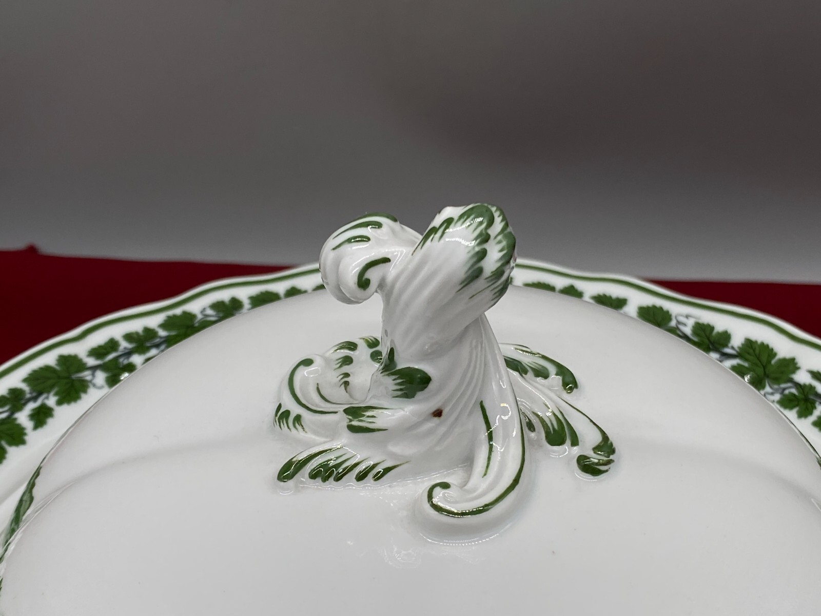 Meissen Porzellan Terrine in Weinlaubdekor. Abmessungen BTH 33/27,5/16cm. Sehr guter Zustand ohne Chips, Oberfläche minimalst berieben, erste Wahl ohne Chips, Knaufzeit.