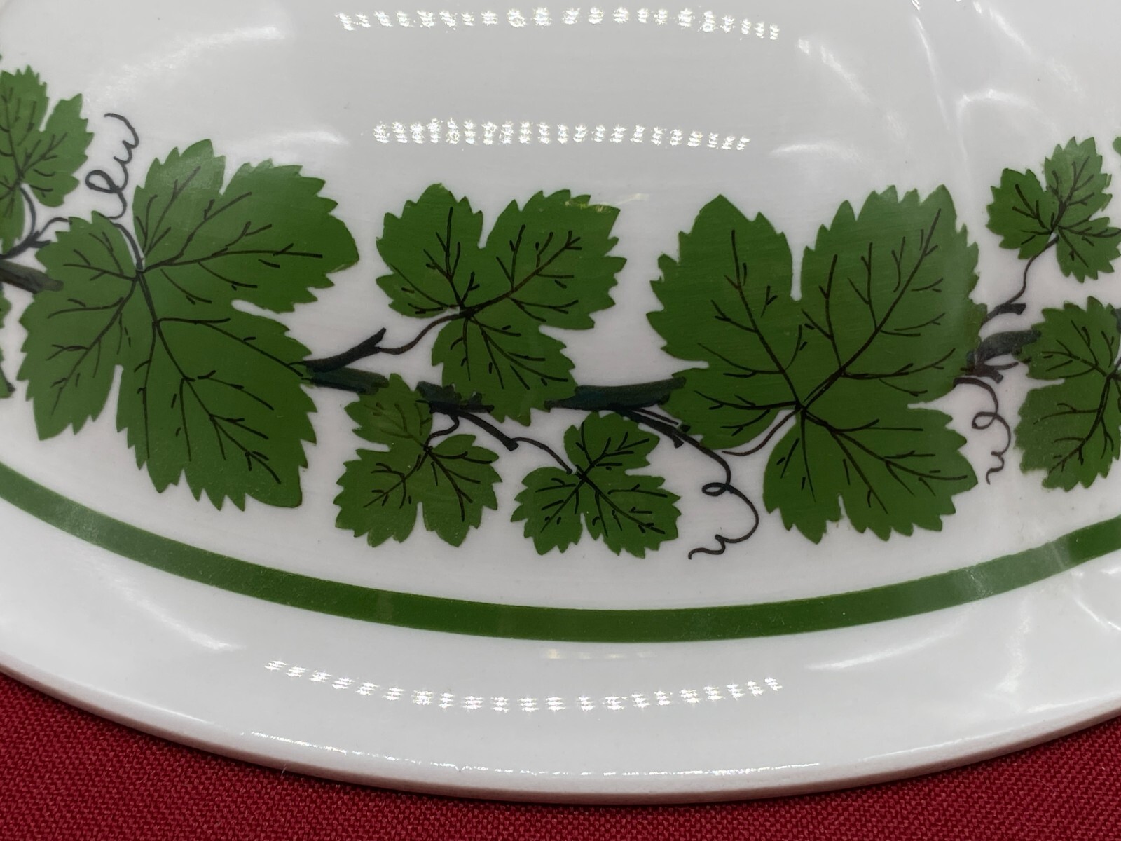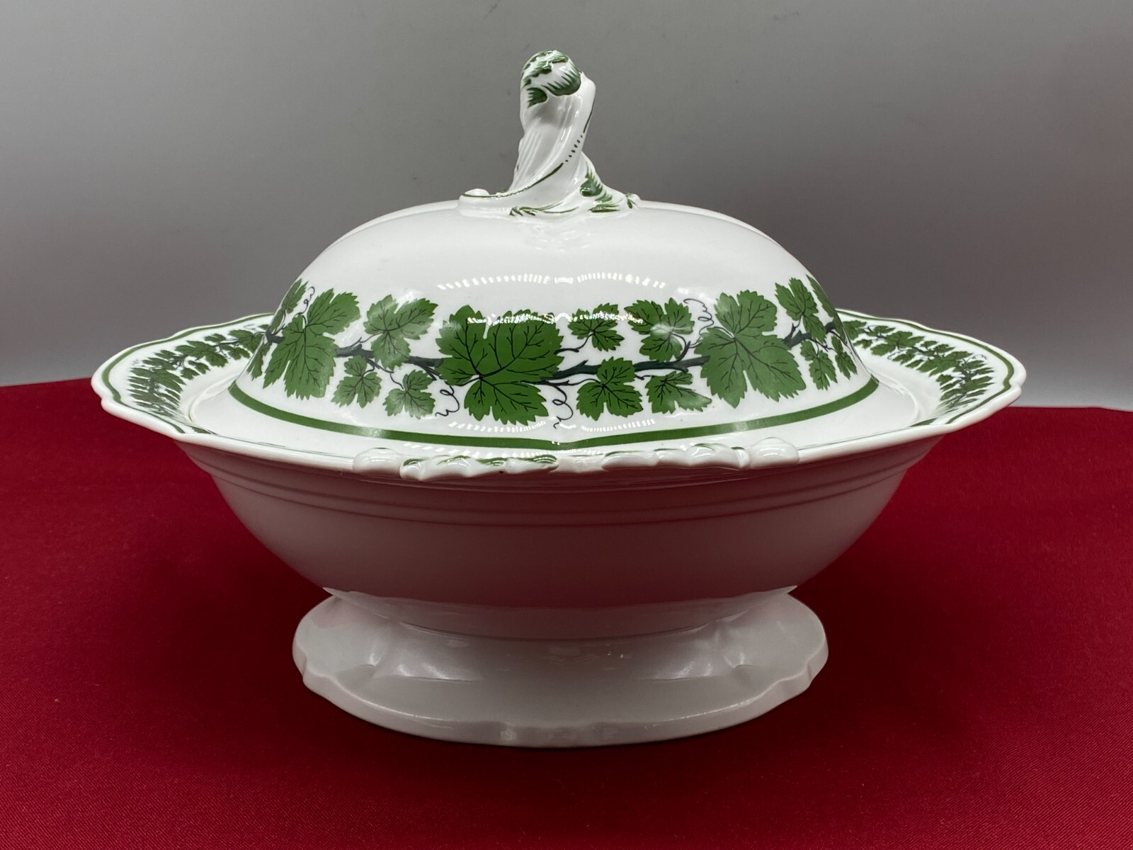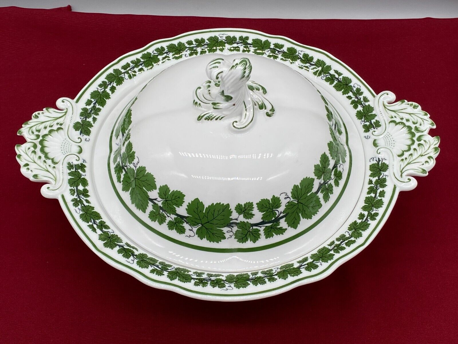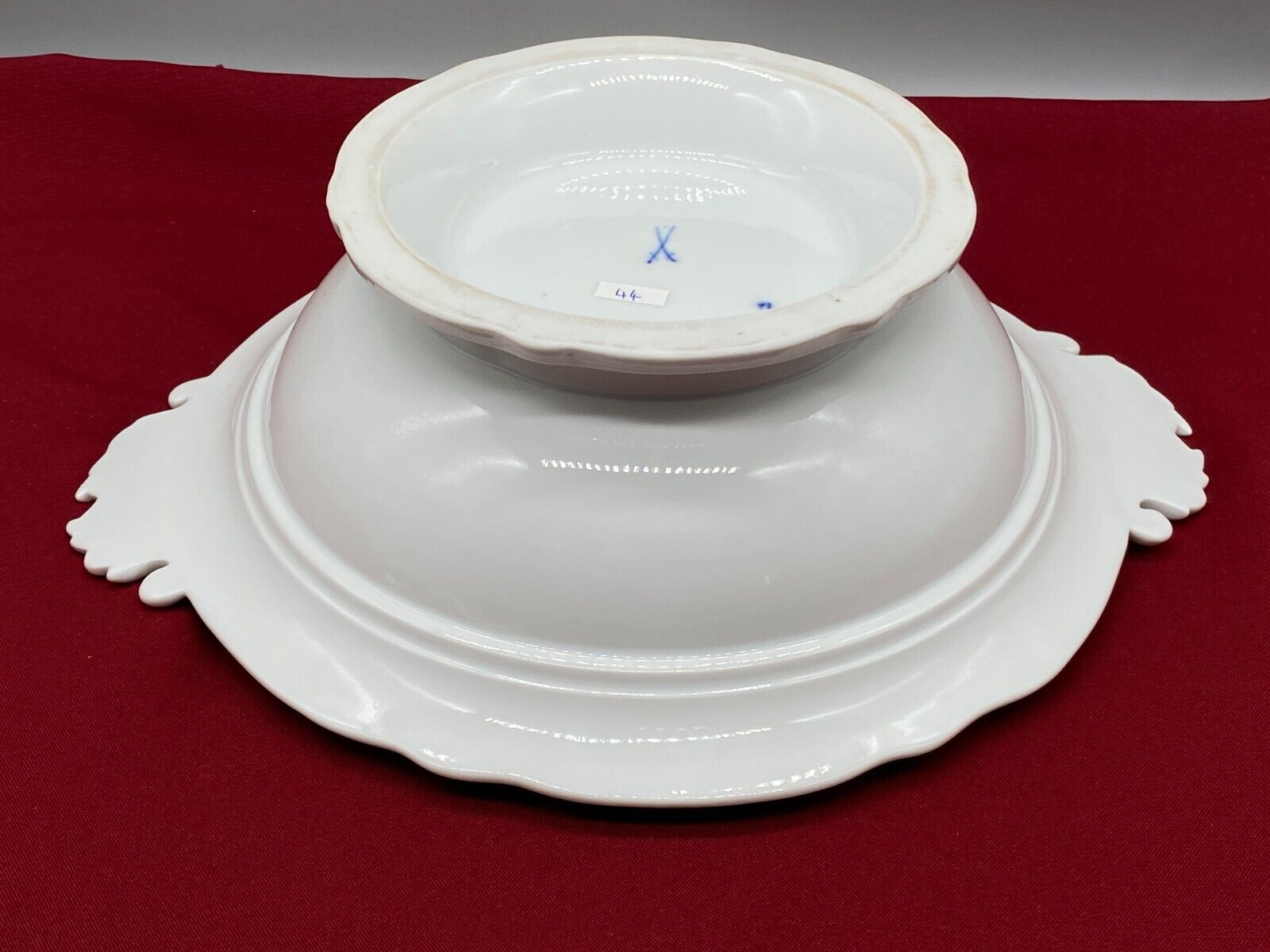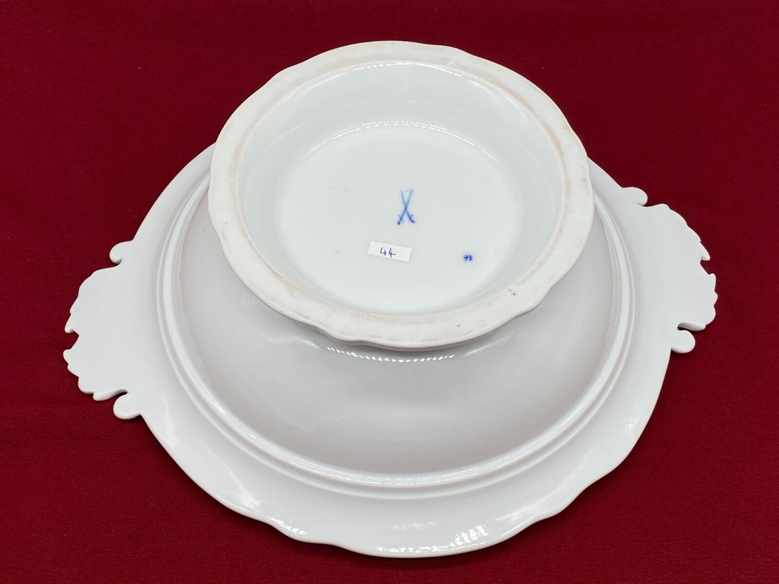 Meissen Porzellan Terrine in Weinlaubdekor. Abmessungen BTH 33/27,5/16cm. Sehr guter Zustand ohne Chips, Oberfläche minimalst berieben, erste Wahl ohne Chips, Knaufzeit.