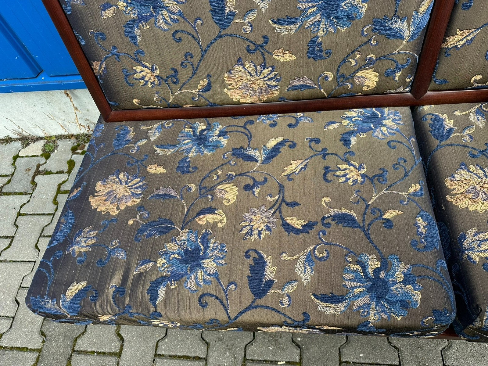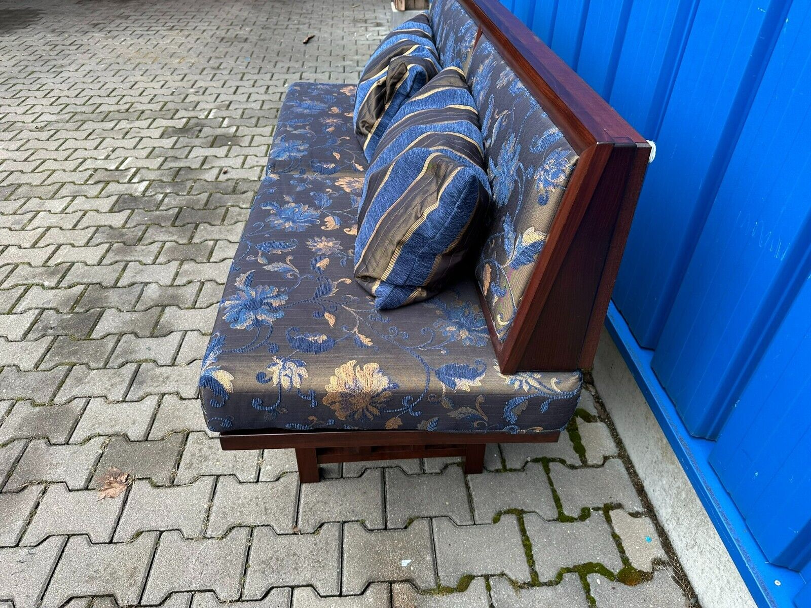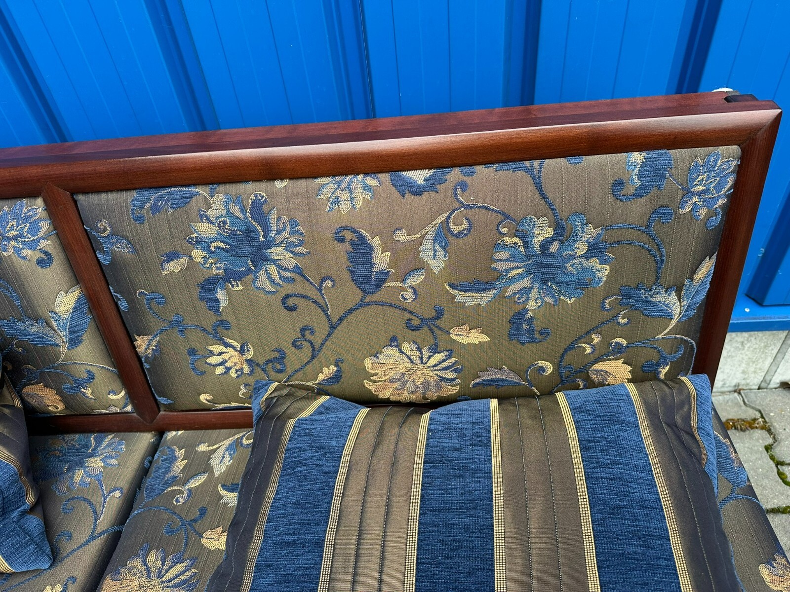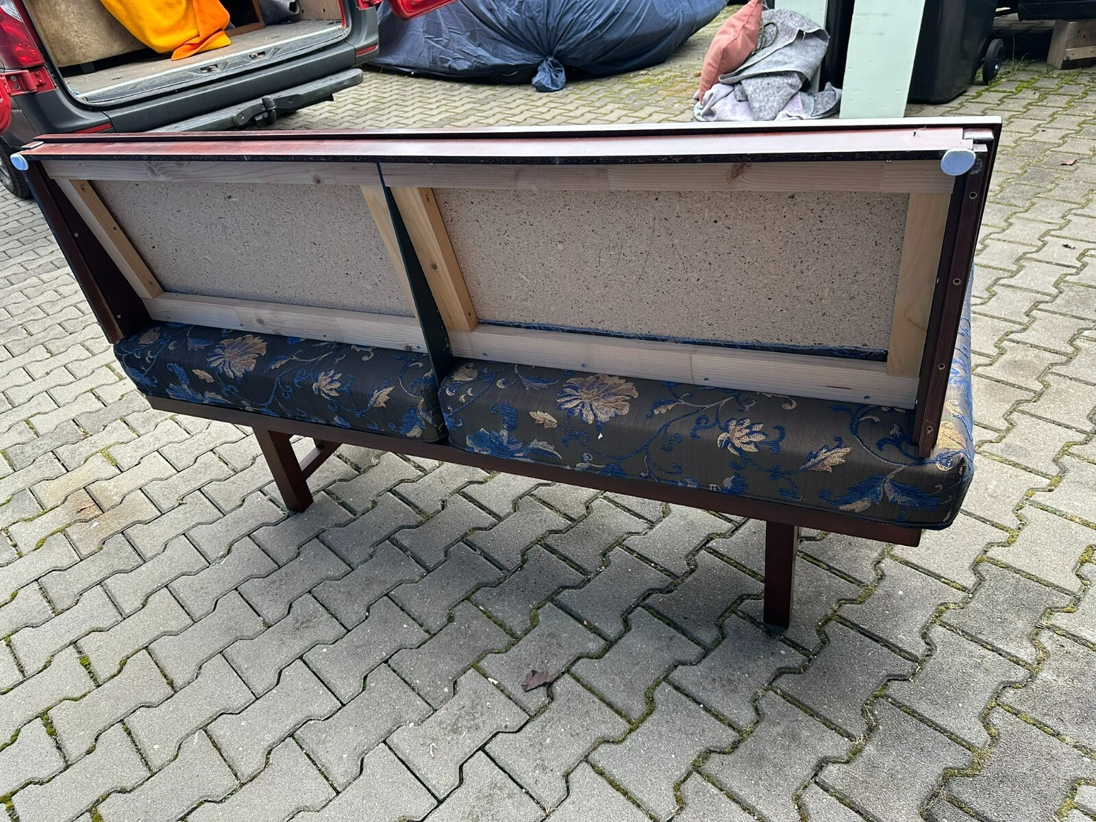 Sehr schöne, moderne Couch, Gestell aus massivem Holz, mit Seidestoffbezug. Sehr schwere ausführung, Gestell minimalst berieben. Der Stoff ist fleckenfrei und befindet sich in sehr gutem Zustand. Die Couch ist nicht aufklappbar. Abmessungen BTH: 160x63x90cm. Sitzhöhe: 54cm, Sitztiefe: 48cm.