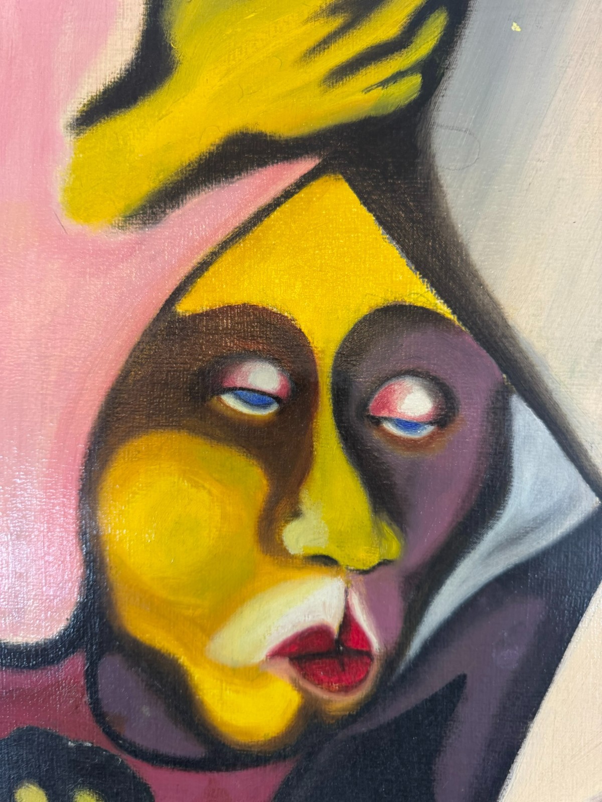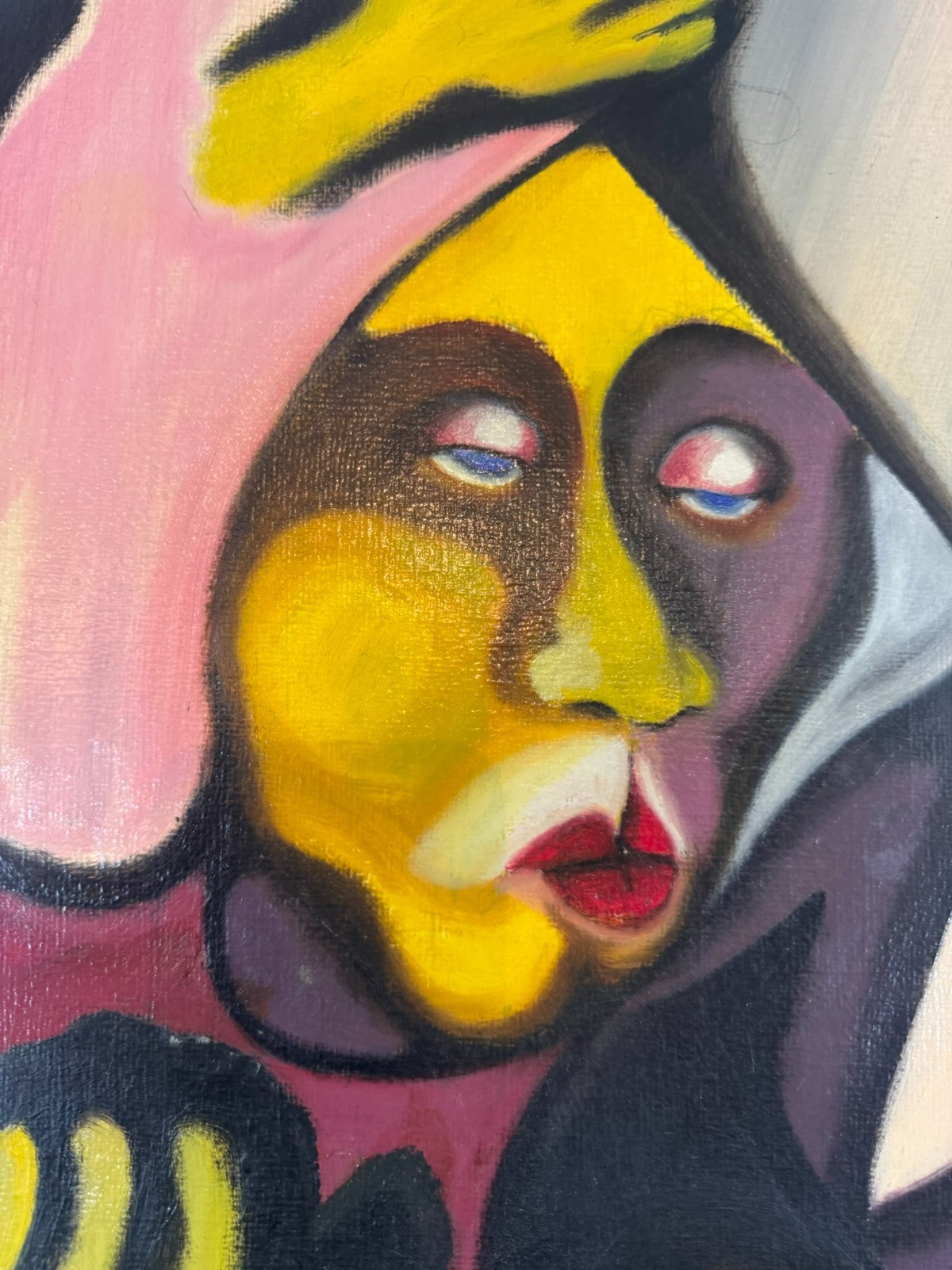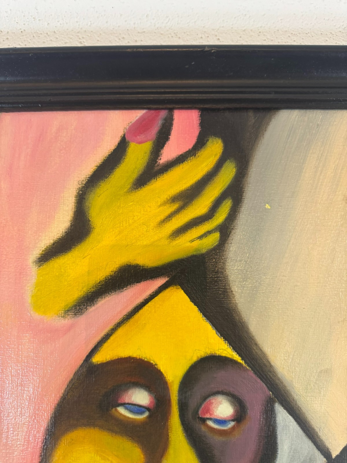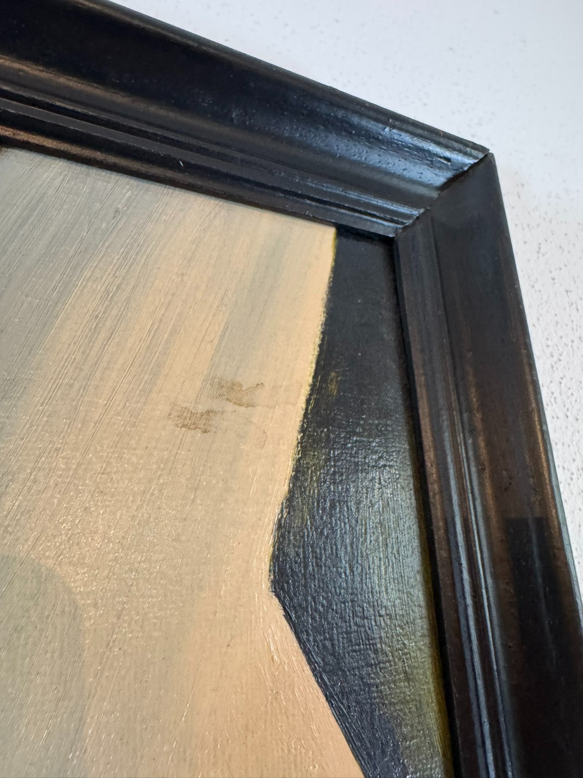 Schönes Gemälde, Acrylfarben auf Leinwand, geklebt auf eine Platte. Das Gemälde hat zwei Flecken im oberen rechten Bereich, es ist in der unteren rechten Ecke signiert “ Huber“ und datiert „1.80“. Der Rahmen ist leicht berieben, Abmessungen gesamt: 45x55cm, ohne Rahmen: 40x50cm.