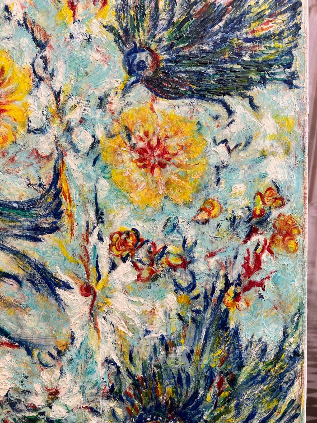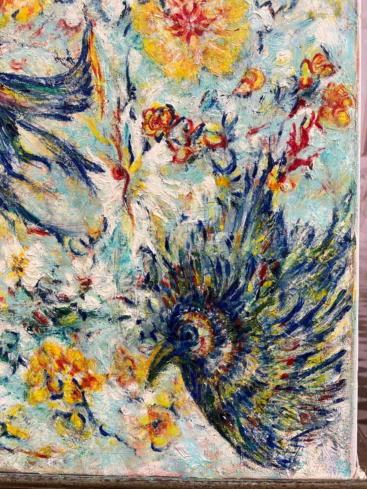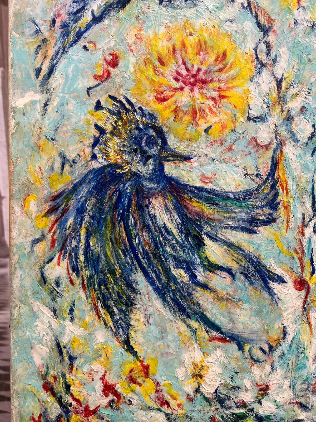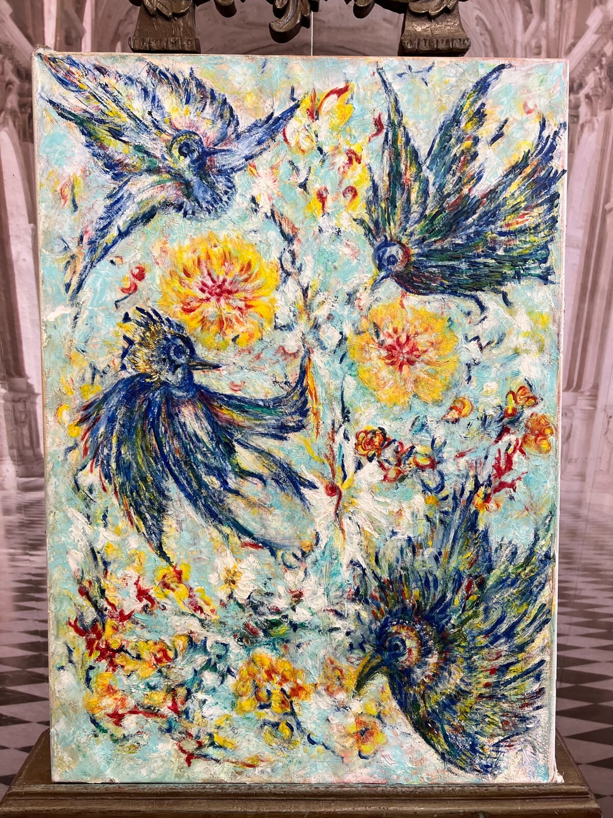 MODERNES ÖLGEMÄLDE AUF LEINWAND VÖGEL UND BLUMEN 50x70cm