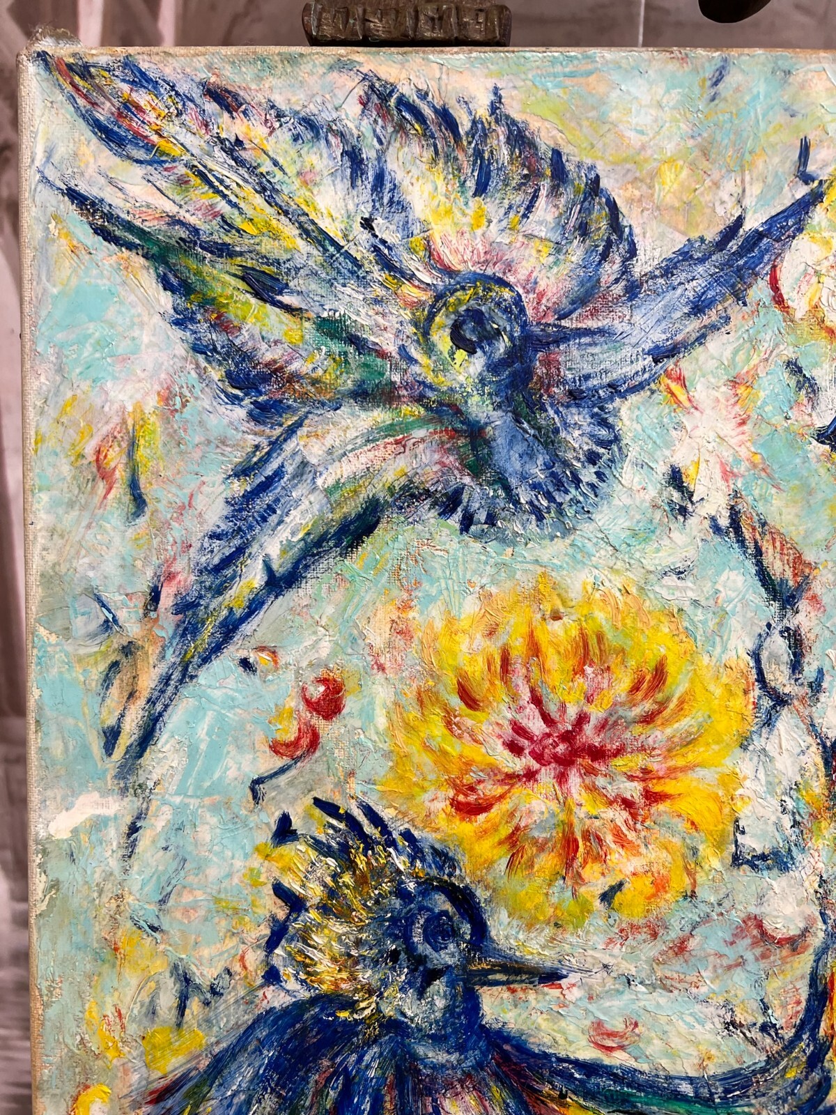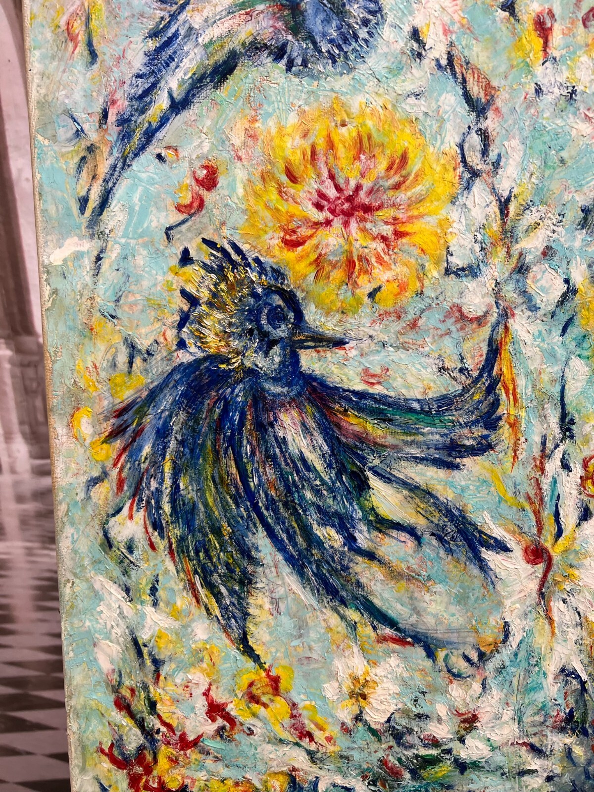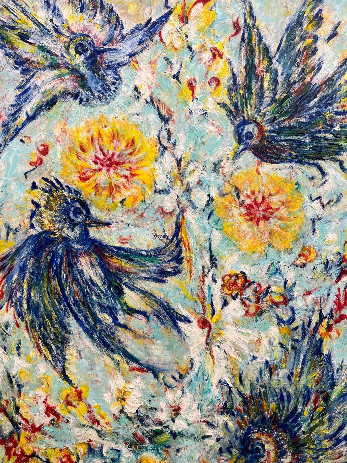 MODERNES ÖLGEMÄLDE AUF LEINWAND VÖGEL UND BLUMEN 50x70cm