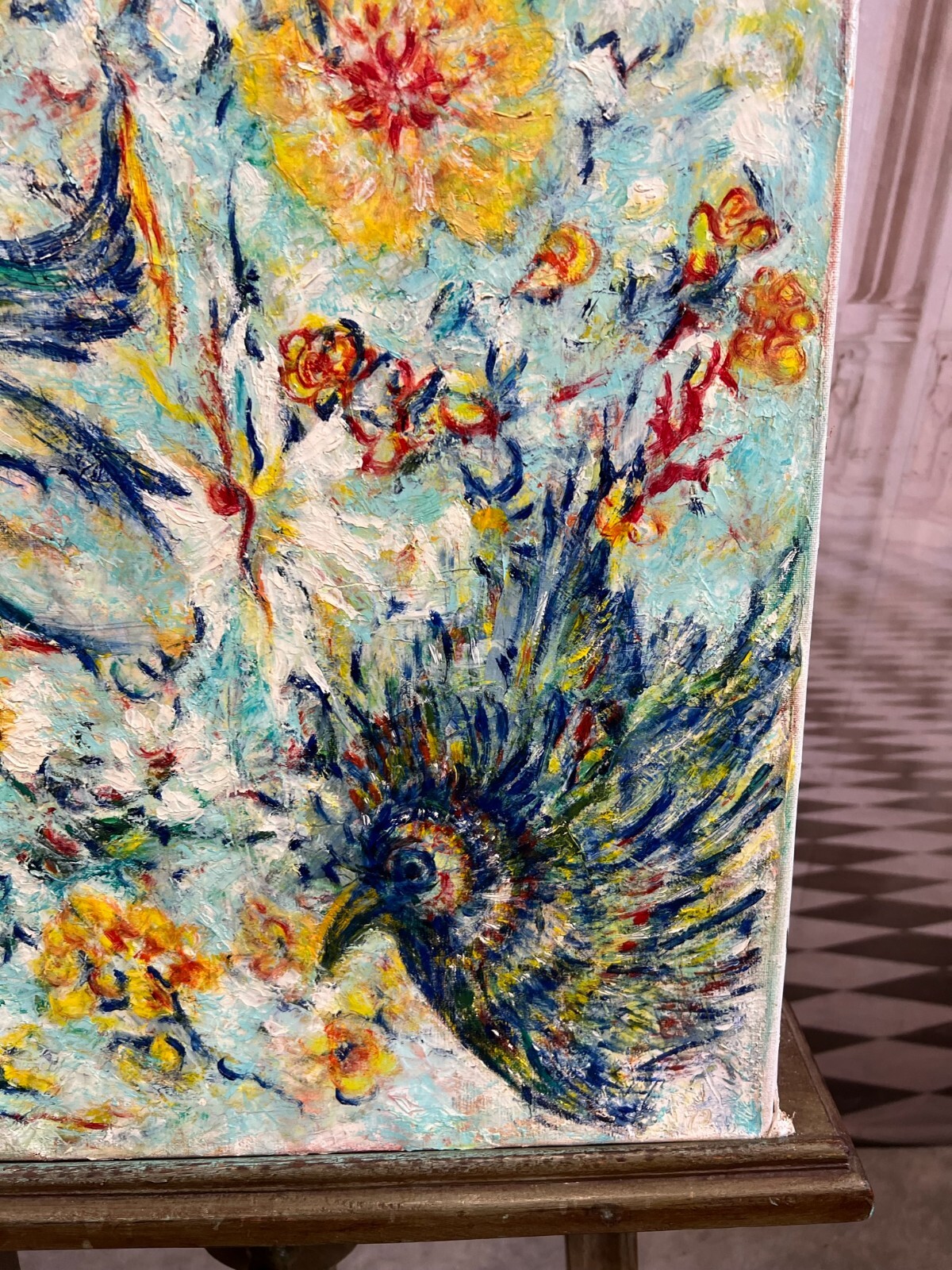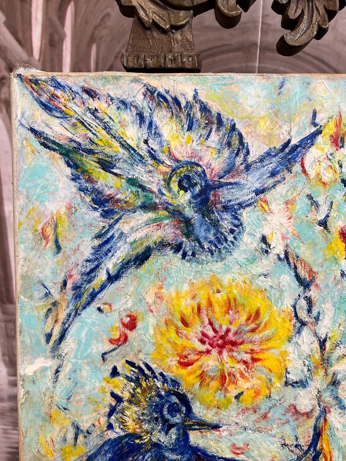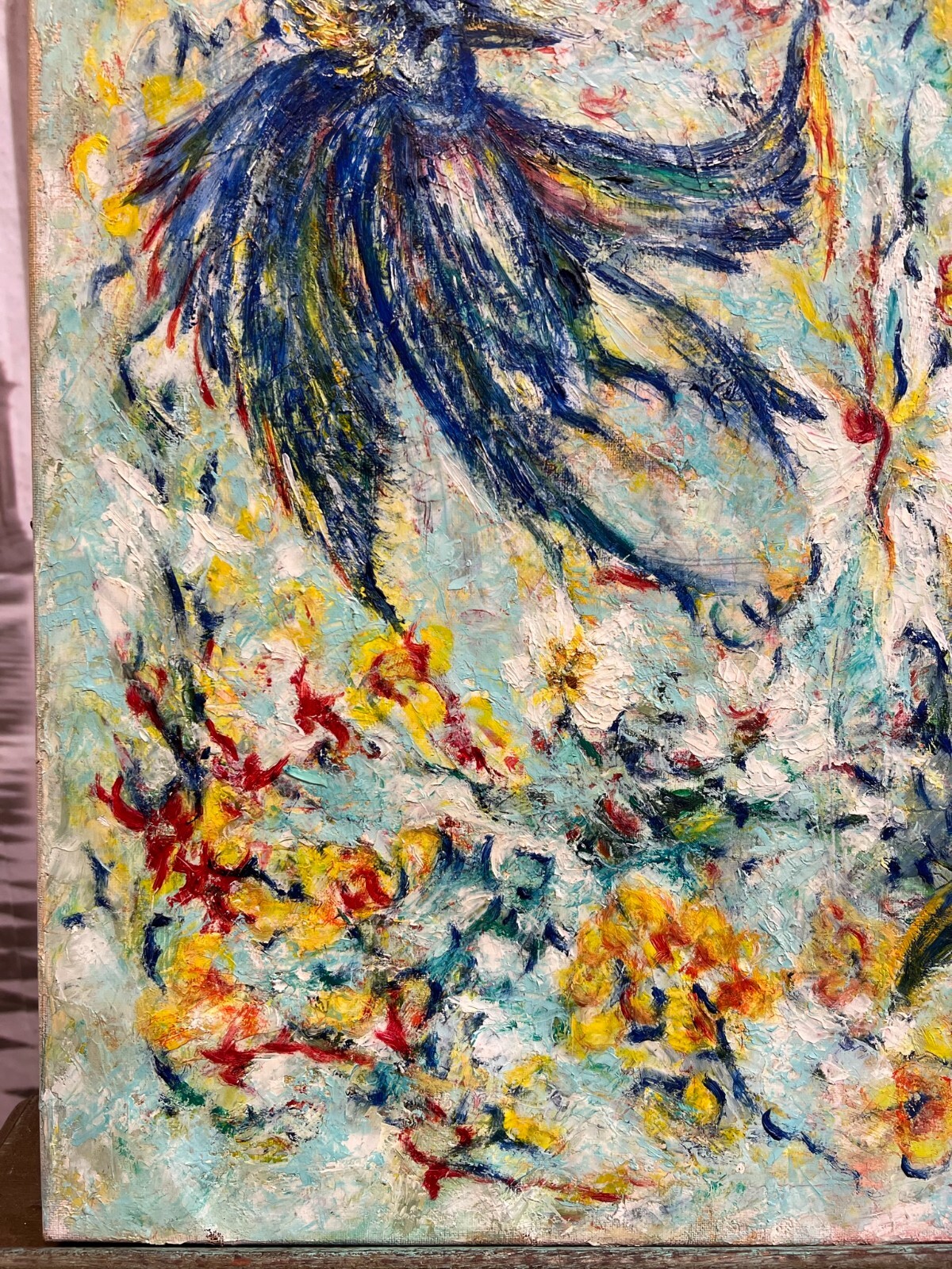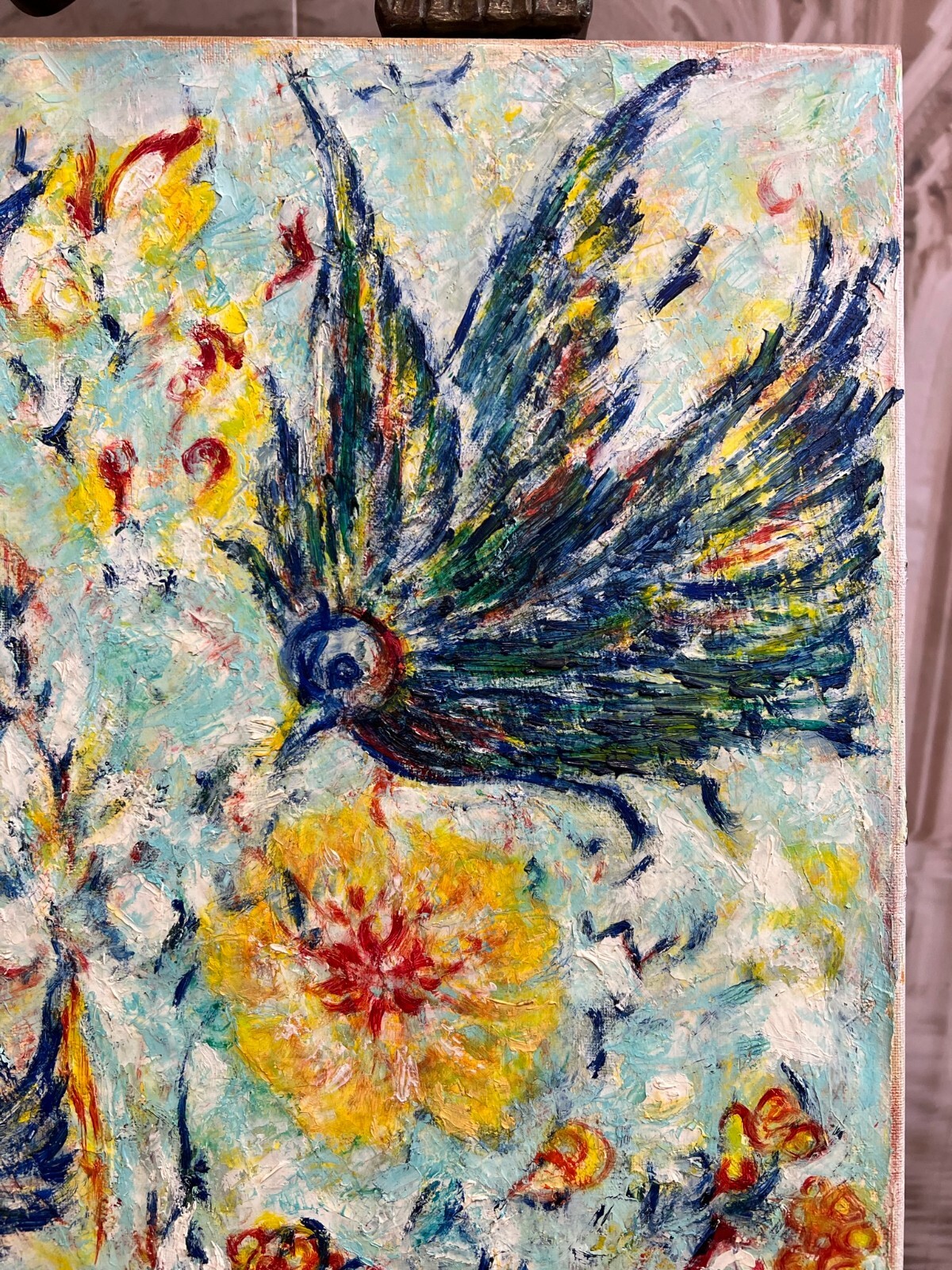 MODERNES ÖLGEMÄLDE AUF LEINWAND VÖGEL UND BLUMEN 50x70cm
