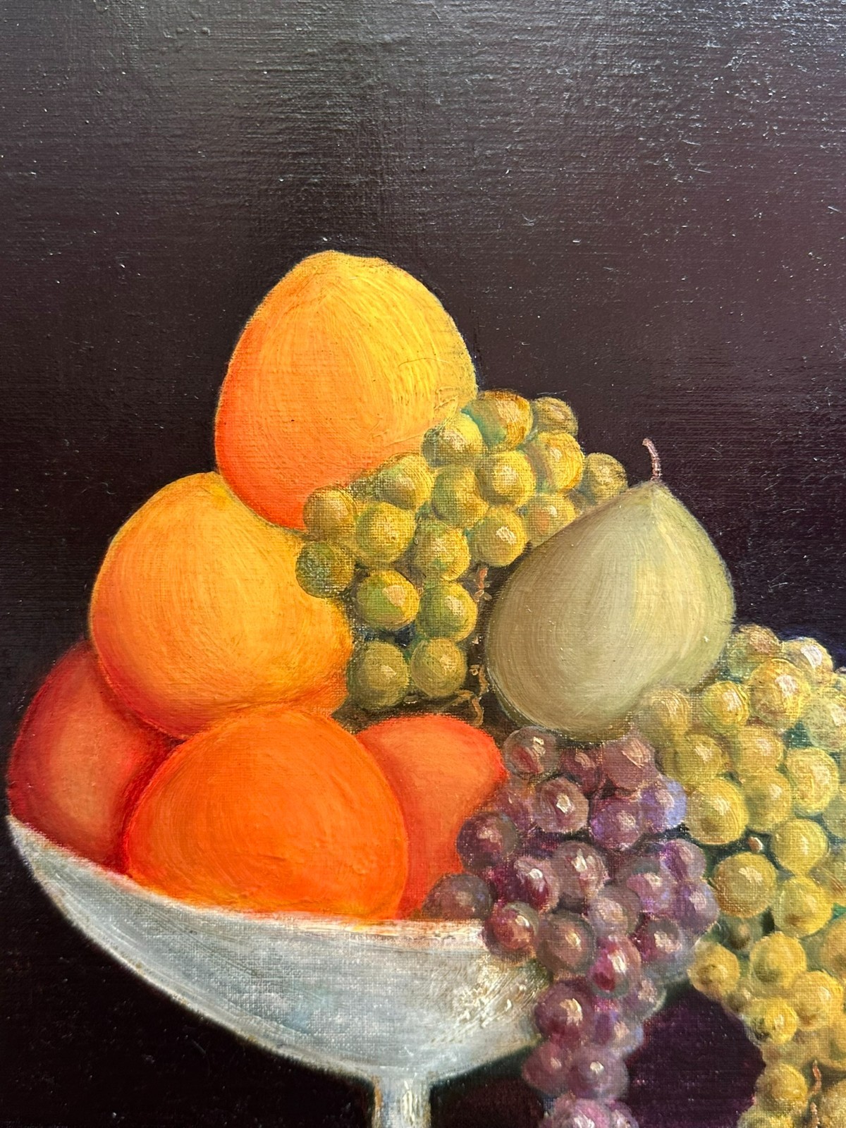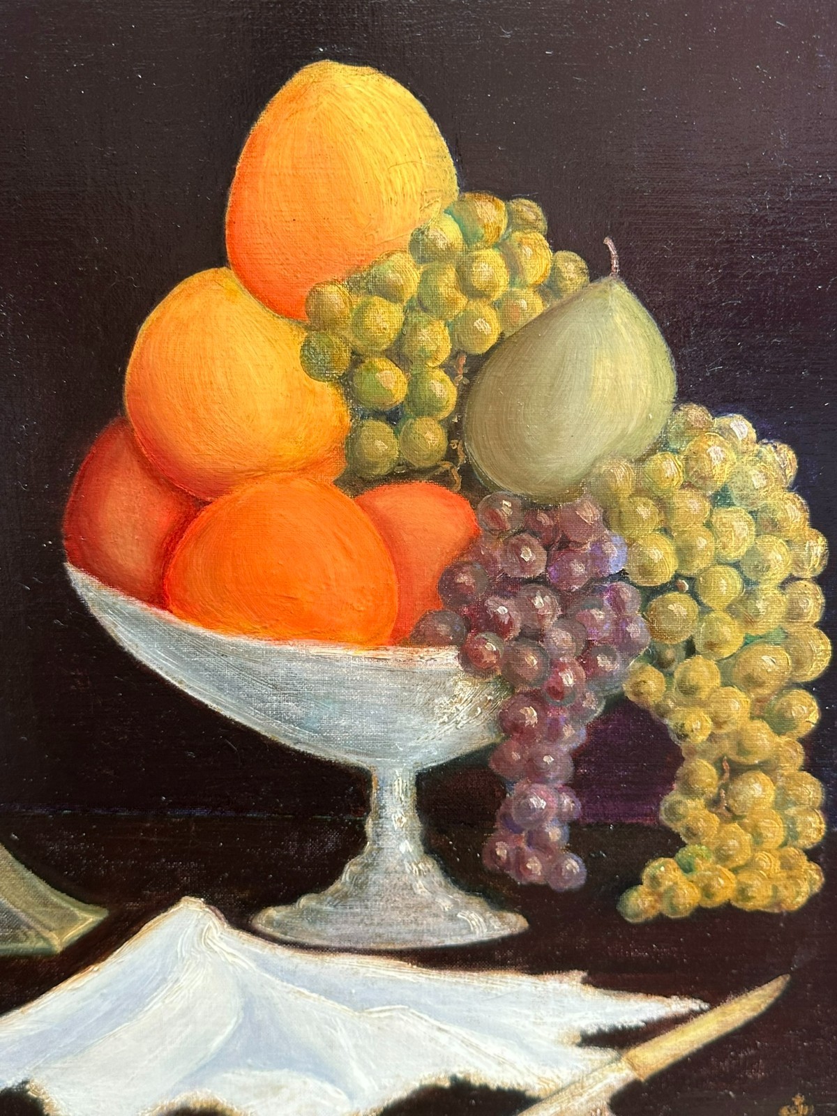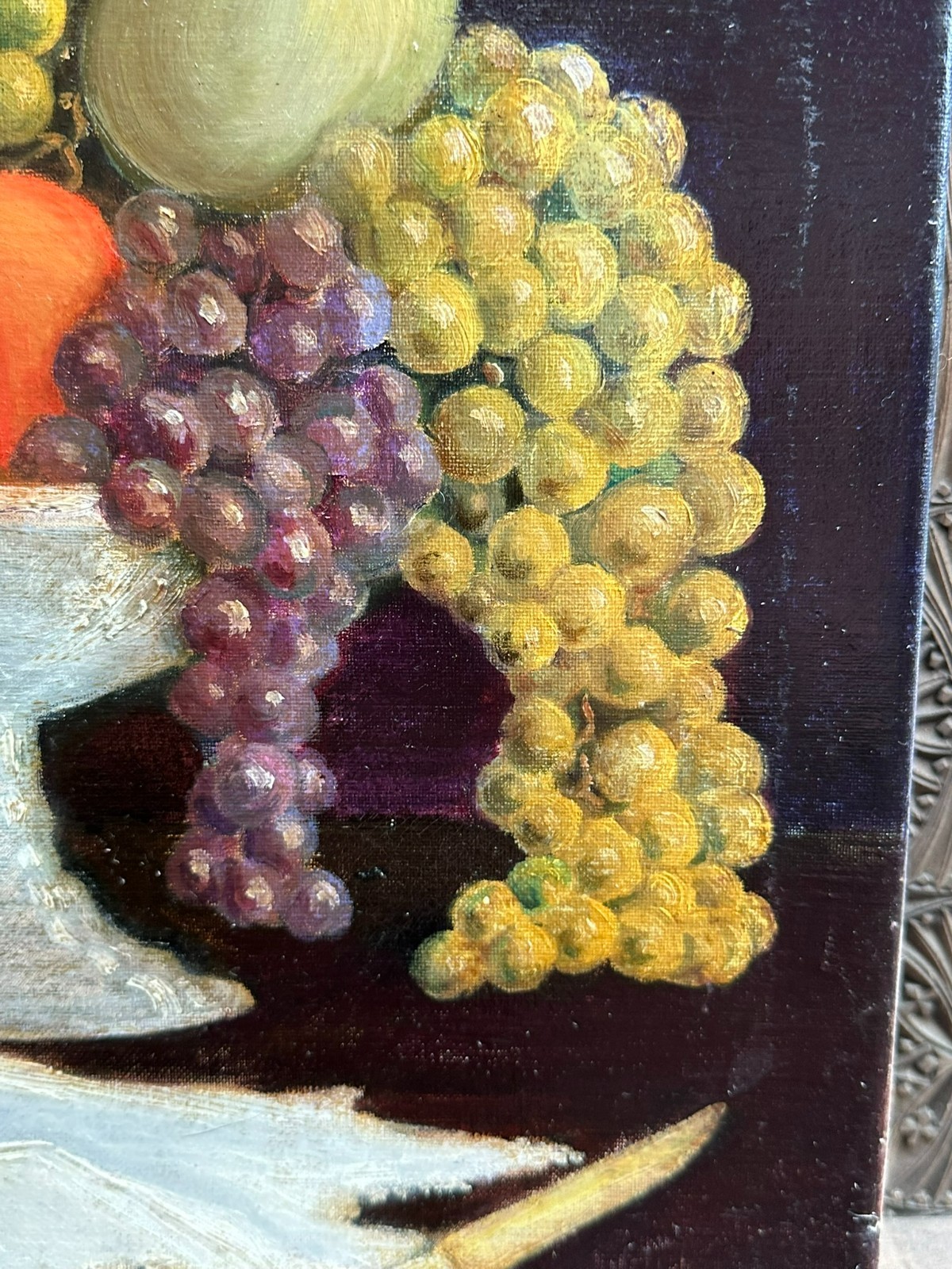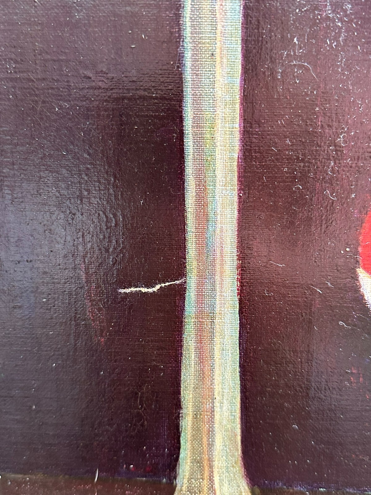 Altes Ölgemälde auf Leinwand, auf Leinwand doubliert, unten rechts Monogramm. Links mittig Leinwandschaden. Abmessungen 44x52cm.