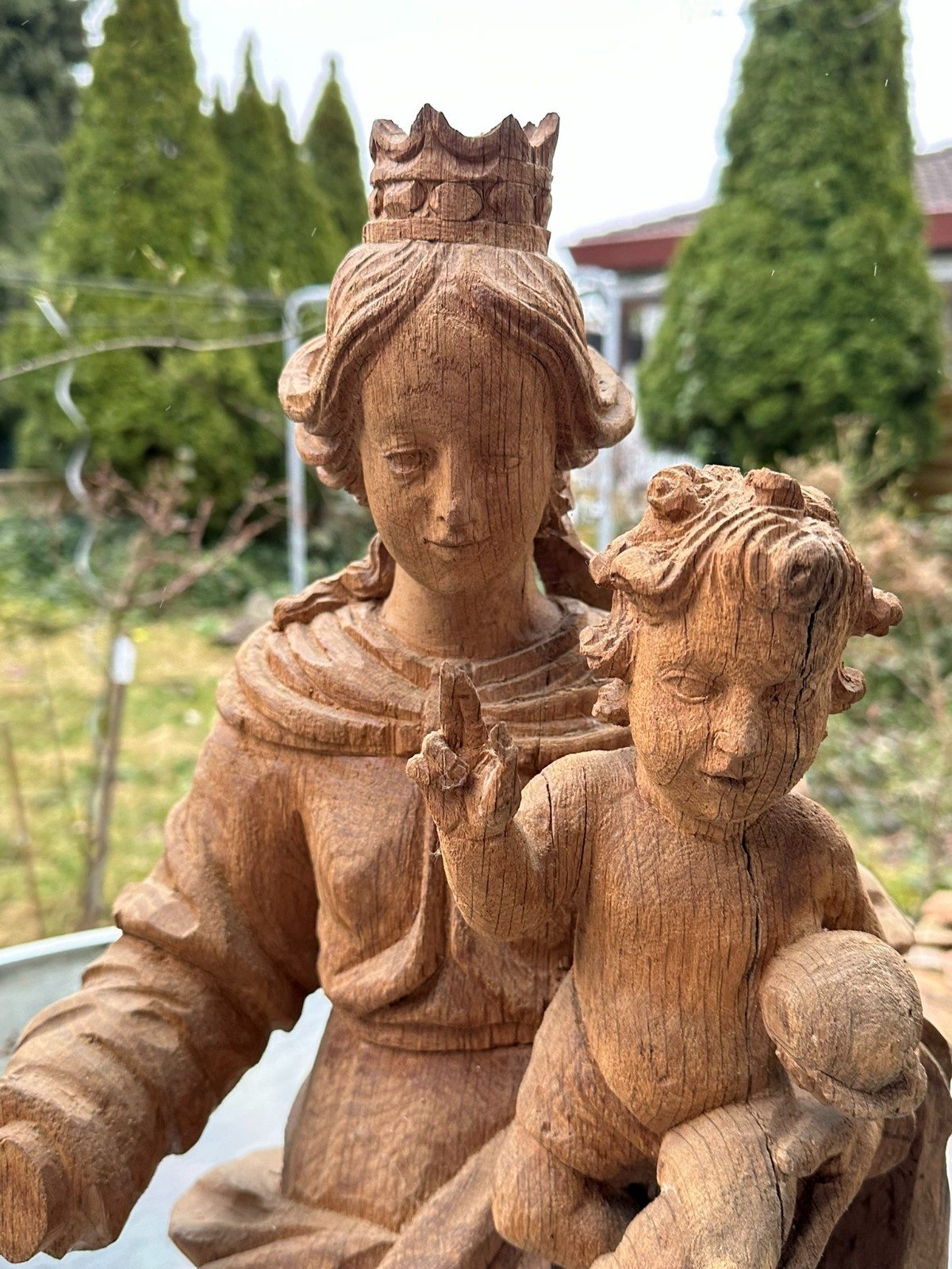 NEO GOTIK HEILIGENFIGUR MADONNA MIT JESUS KIND HANDGESCHNITZT 68cm 20 TES