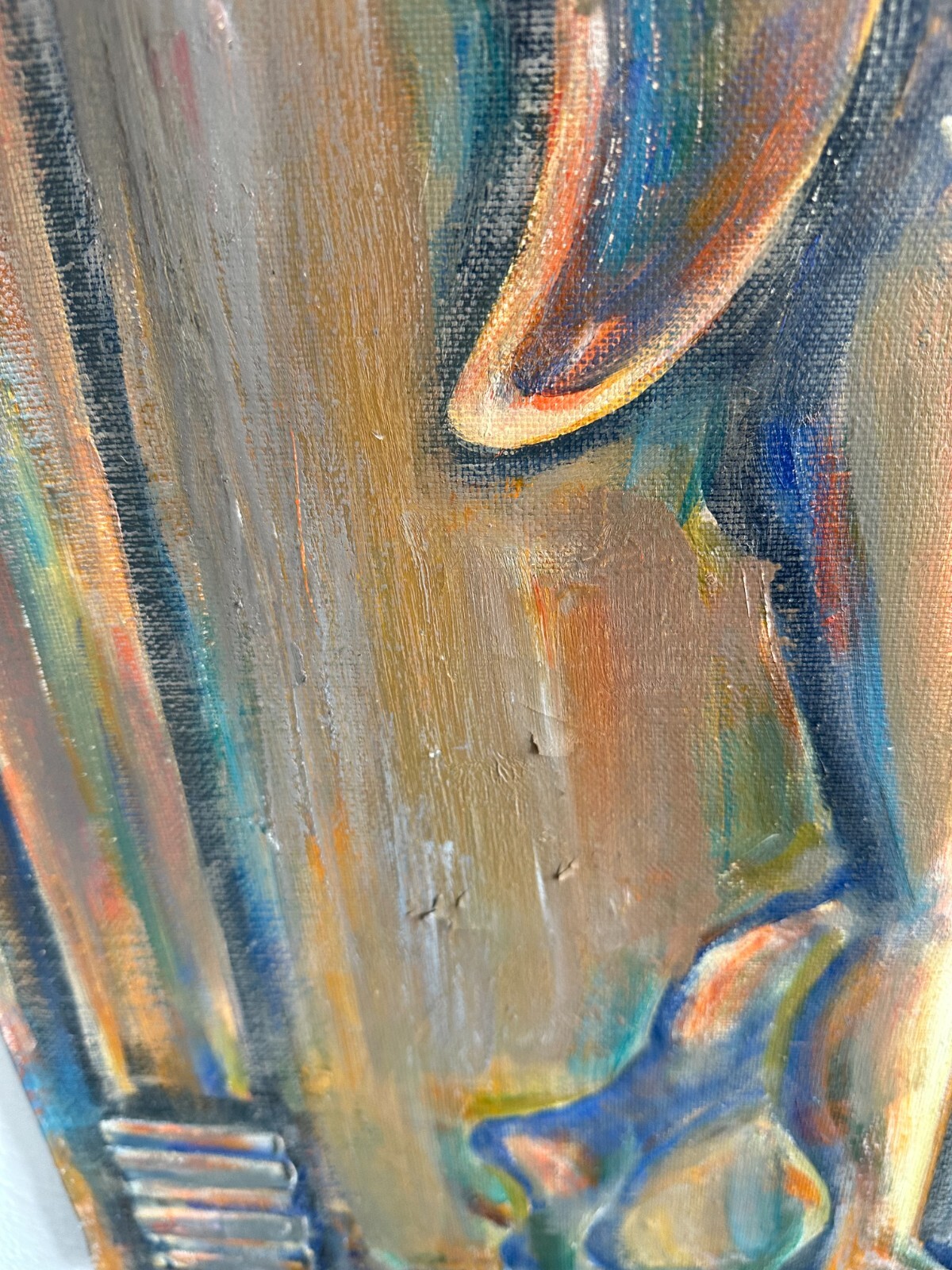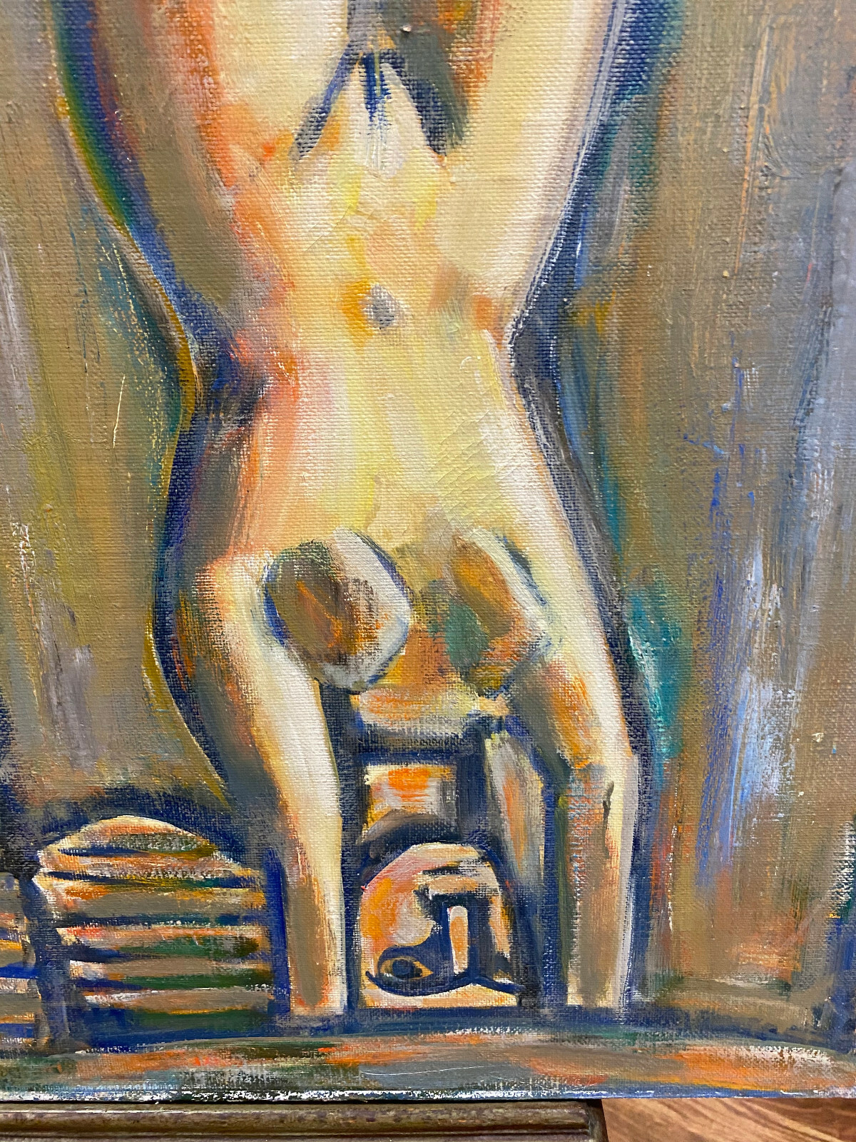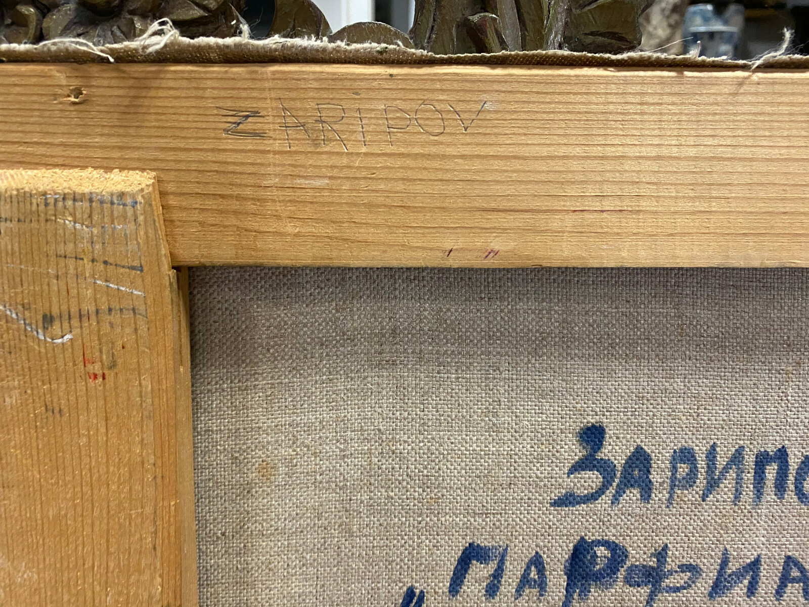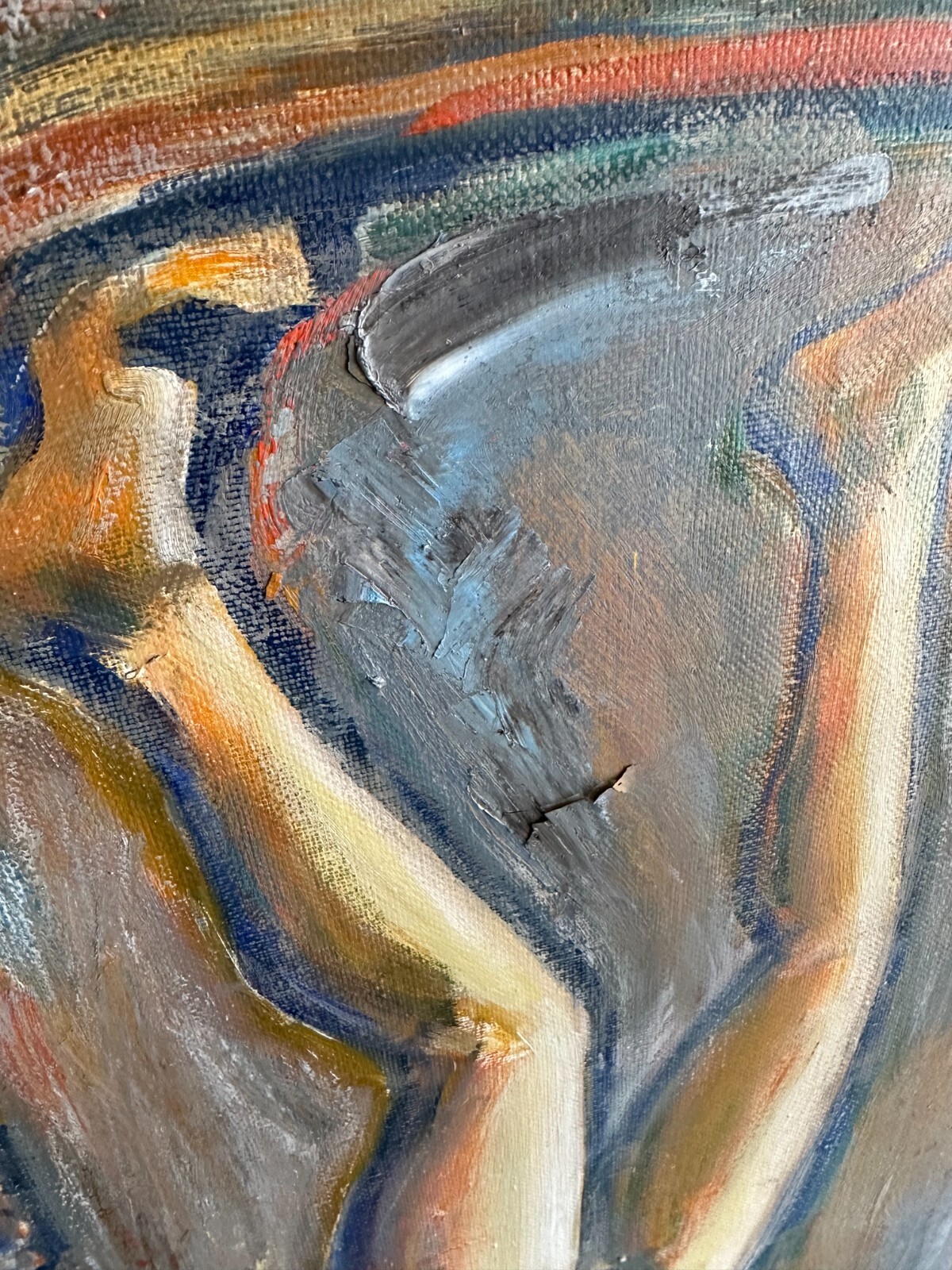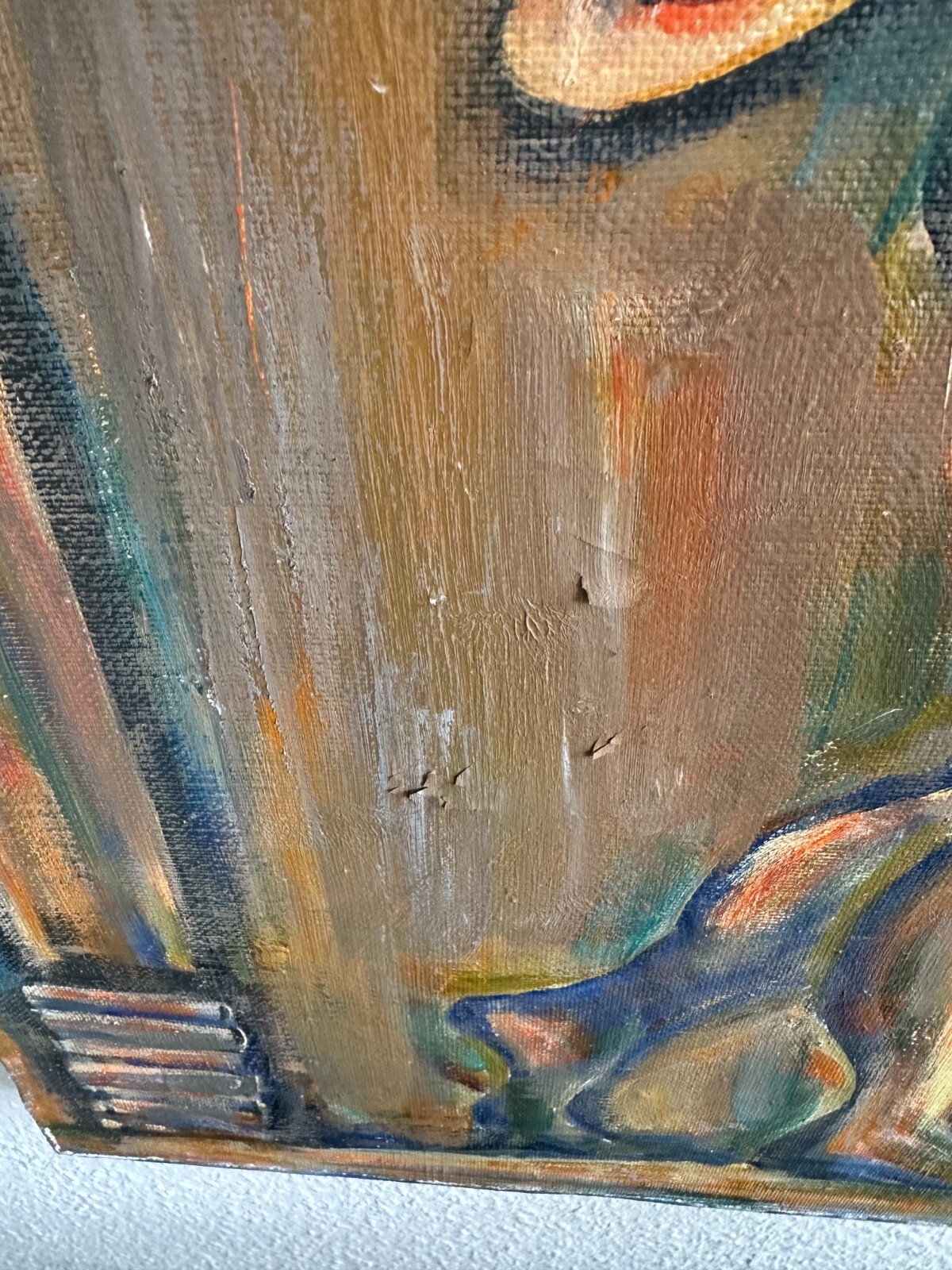 Ölgemälde auf Leinwand, an der Rückseite auf Kyrillisch betitelt und bezeichnet. Das Gemälde hat diverse Stellen mit gekrauselter und zum teil beriebener, loser und abgelöster Farbe. Abmessungen 100x90cm.