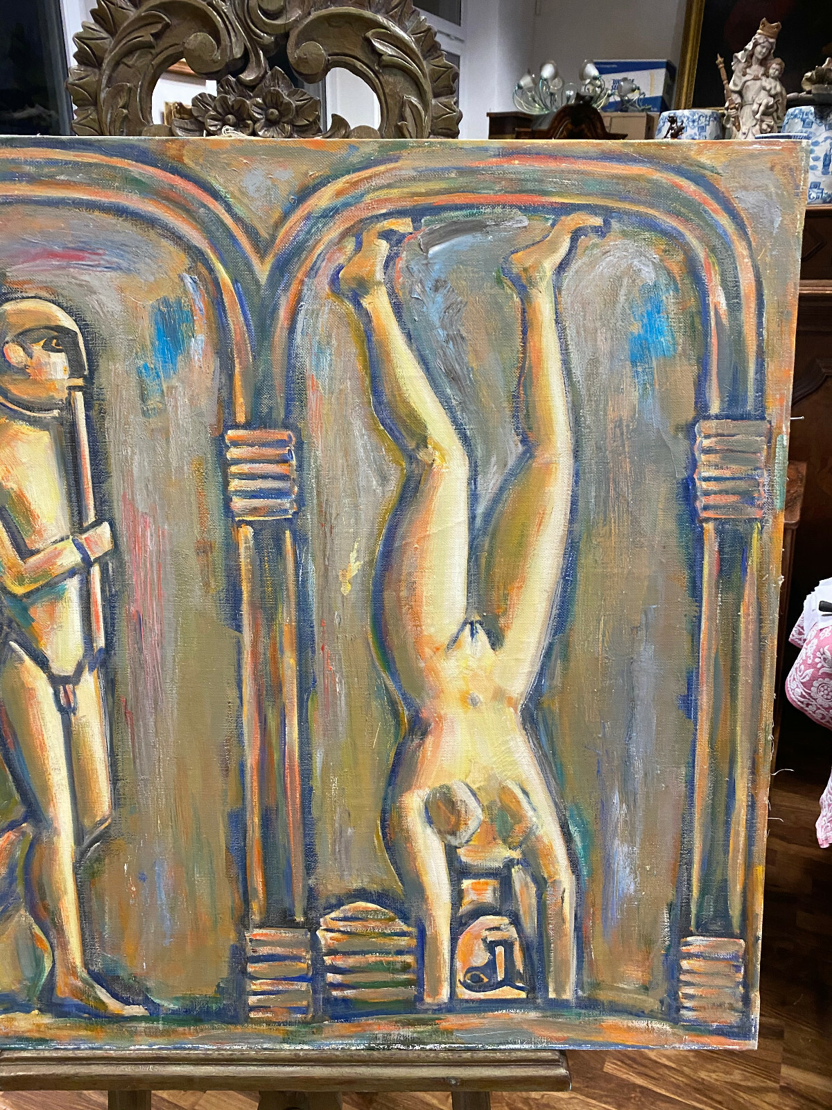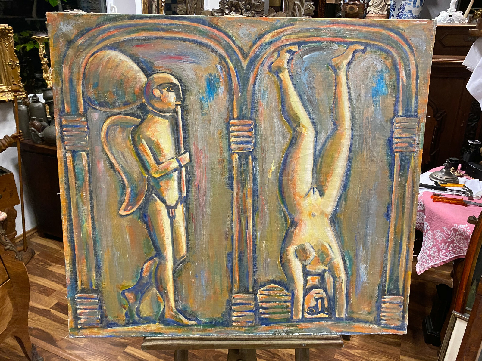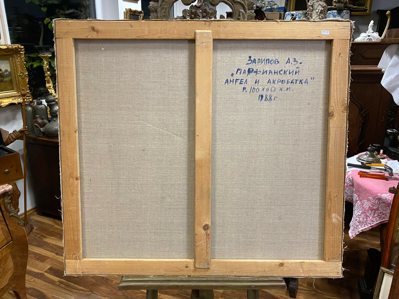 ÖLGEMÄLDE ENGEL UND AKROBATIN GEMÄLDE PARFIANSKIJ A. ZARIPOV GROSS 100x90cm