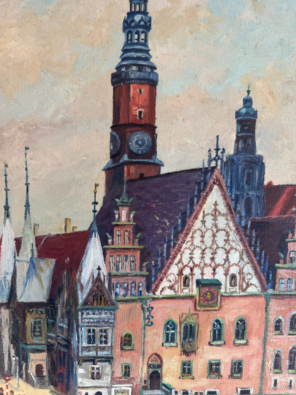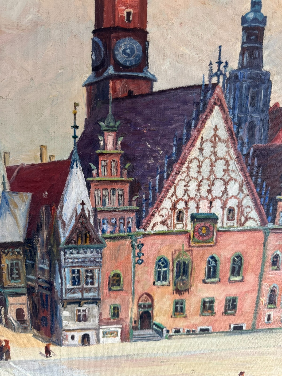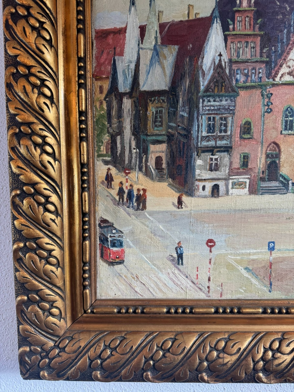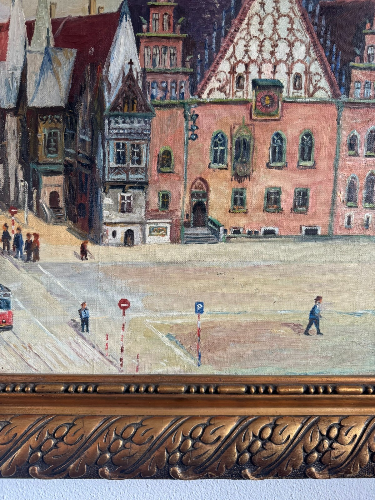 ÖLGEMÄLDE GERAHMT ALTSTADT MIT PERSONEN