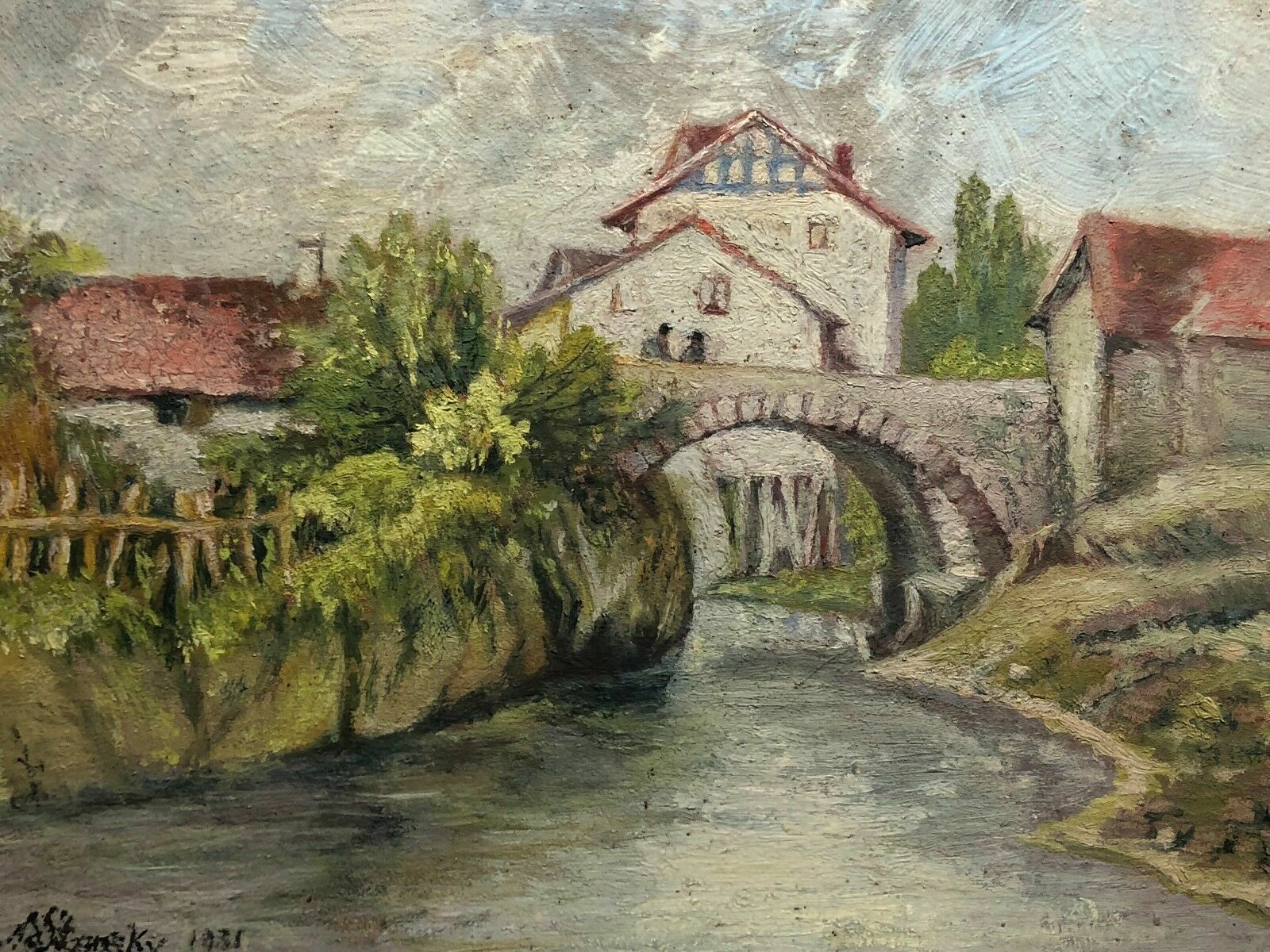 ÖLGEMÄLDE IDYLLISCHE DORF SZENERIE GEMÄLDE 1931 Ferdinand STRANSKY (1904-1981)