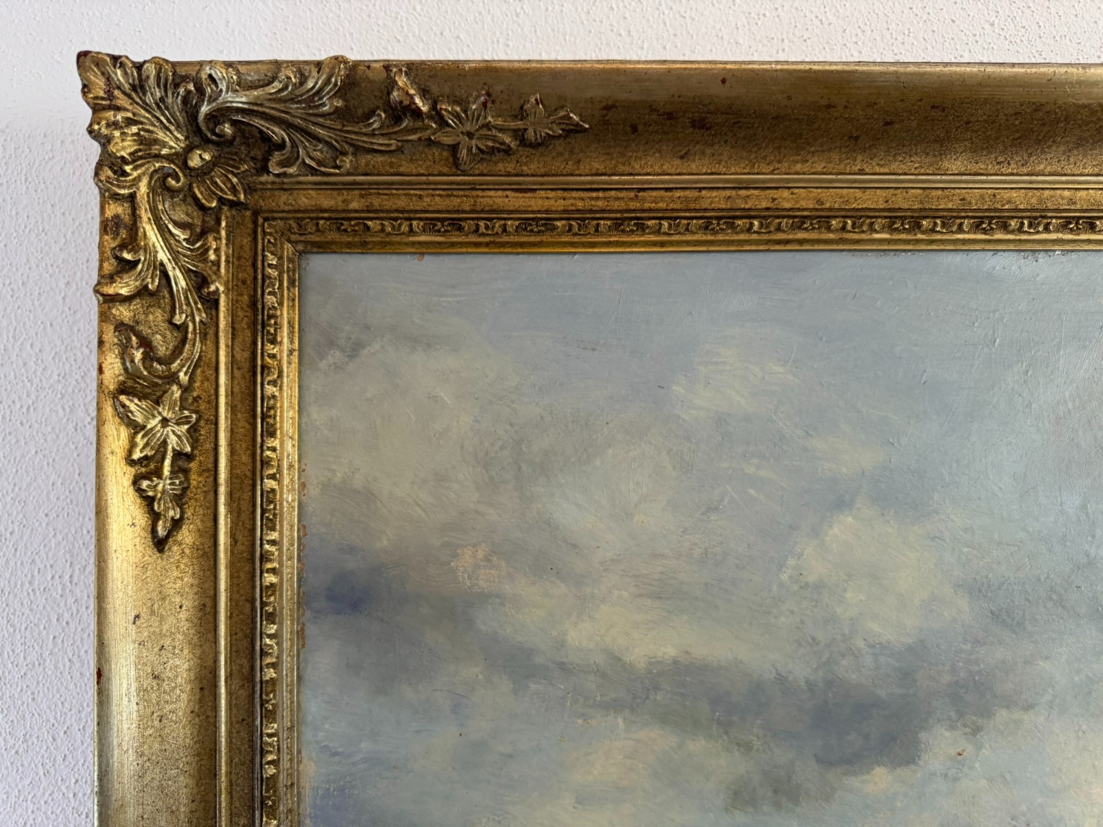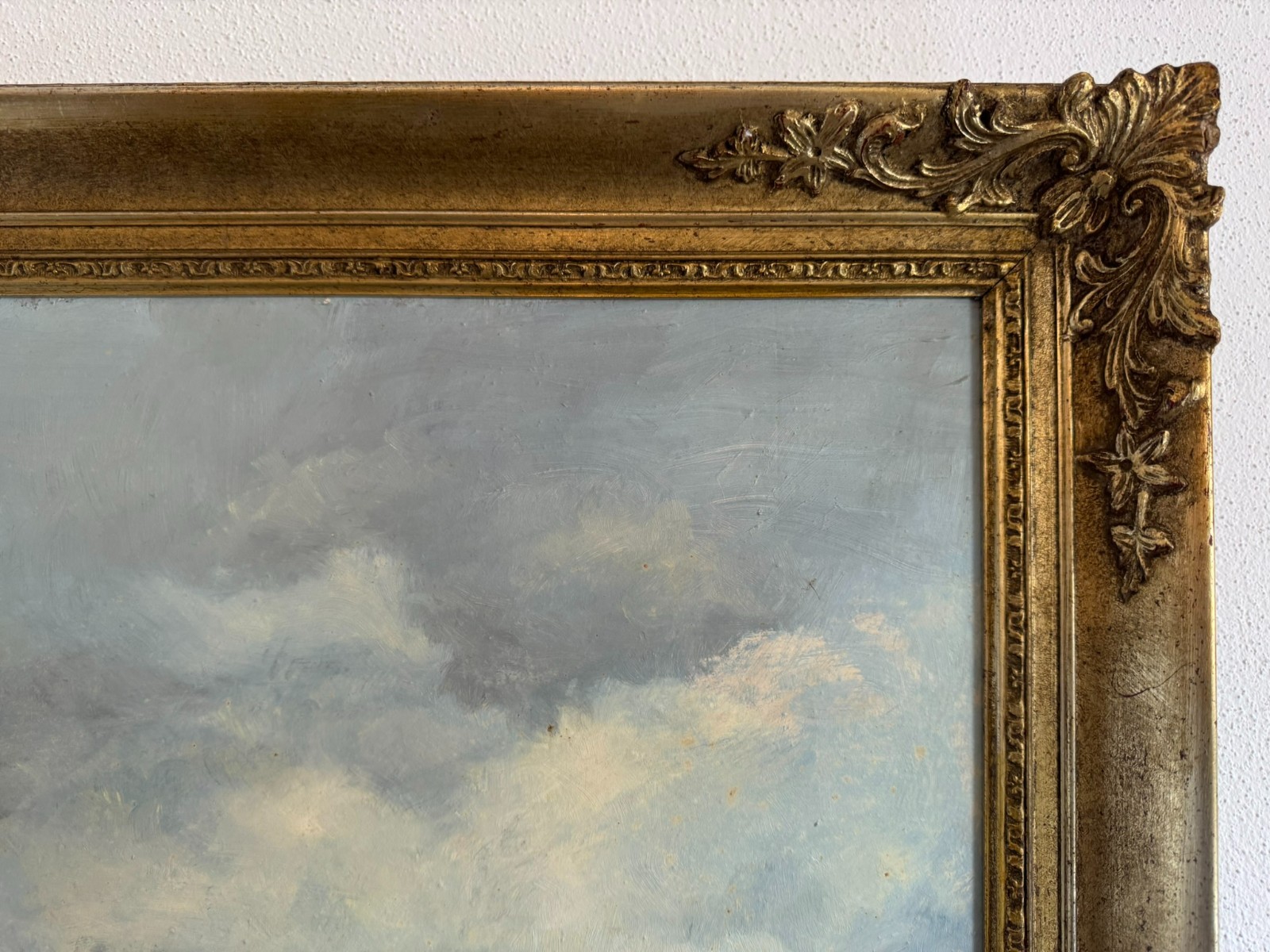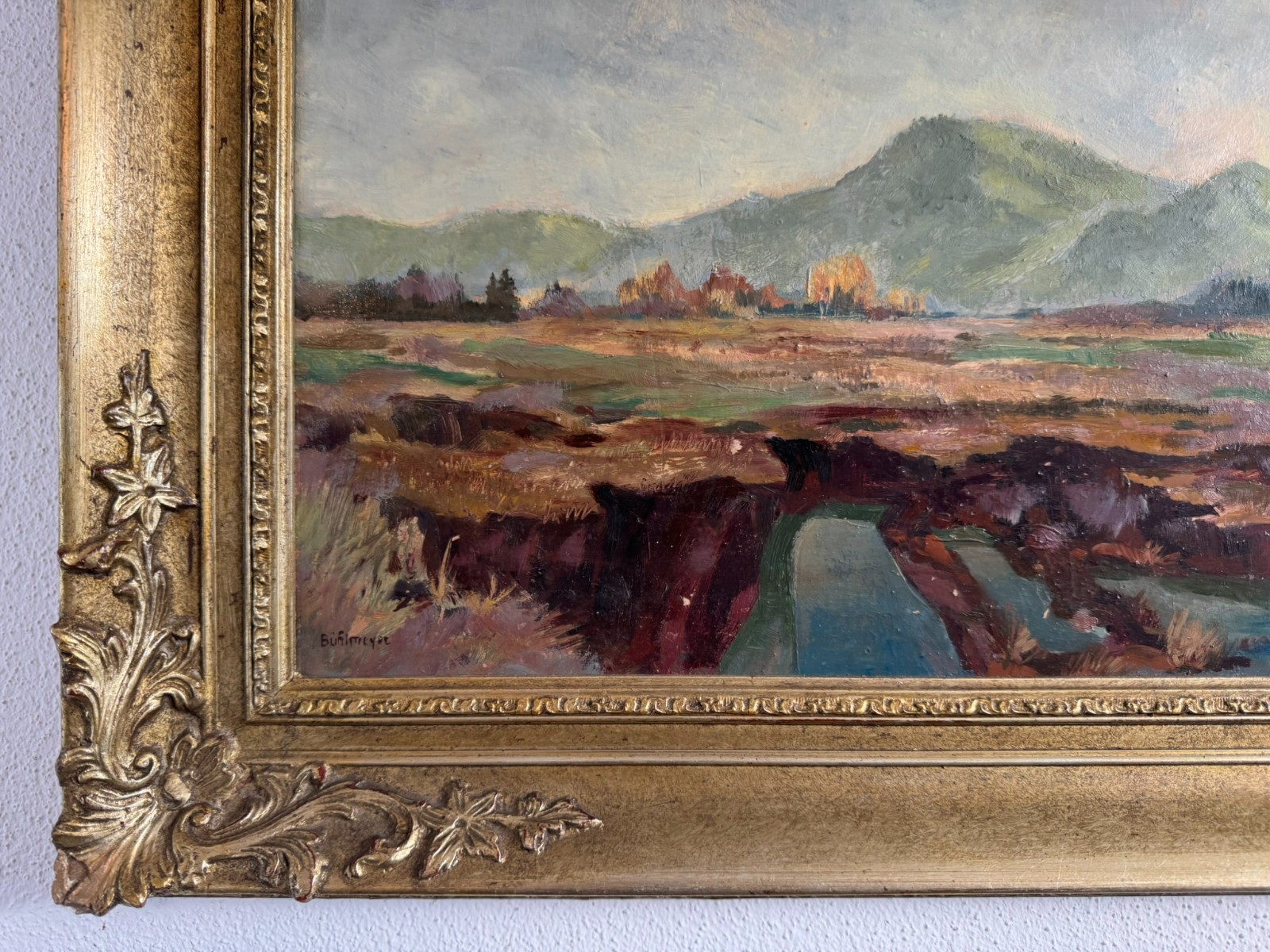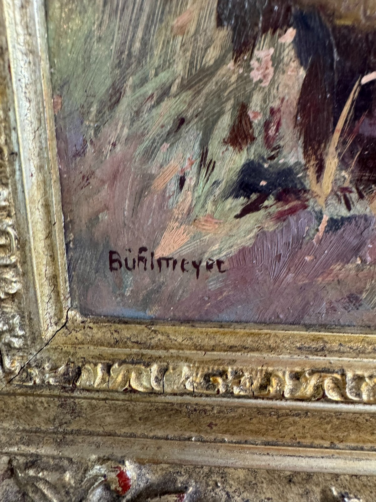 Sehr schönes Ölgemälde auf Platte. Das Gemälde ist in einem sehr schönen Zustand, unten links signiert „Bühlmeyer“. Der Rahmen ist oben rechs etwas bestoßen. Abmessungen gesamt: 79x69cm, ohne Rahmen: 65x56cm.