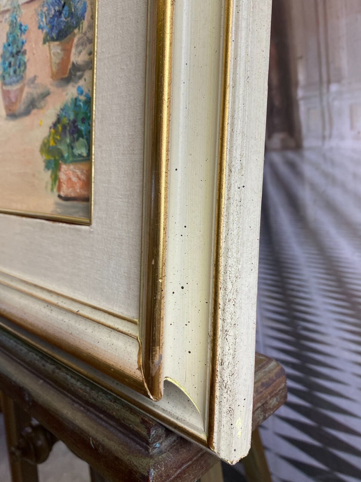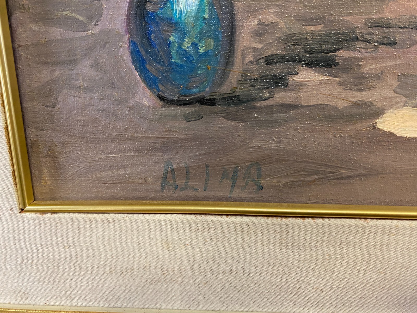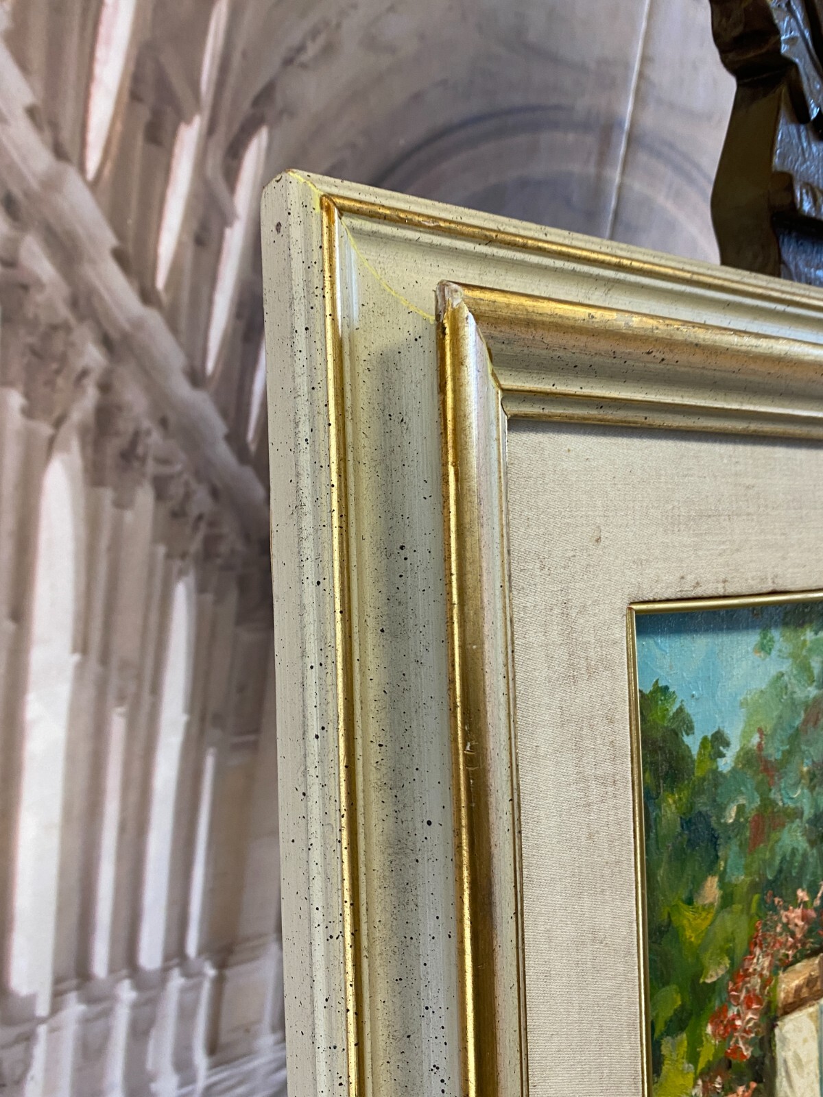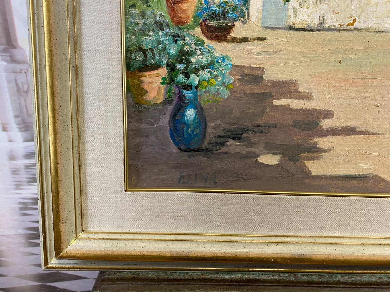 Ölgemälde auf Leinwand, unten links signiert Alina. Der Firnis ist minimal vergilbt, der Rahmen rechts bestossen und berieben. Gesamtabmessungen 68x59cm.
