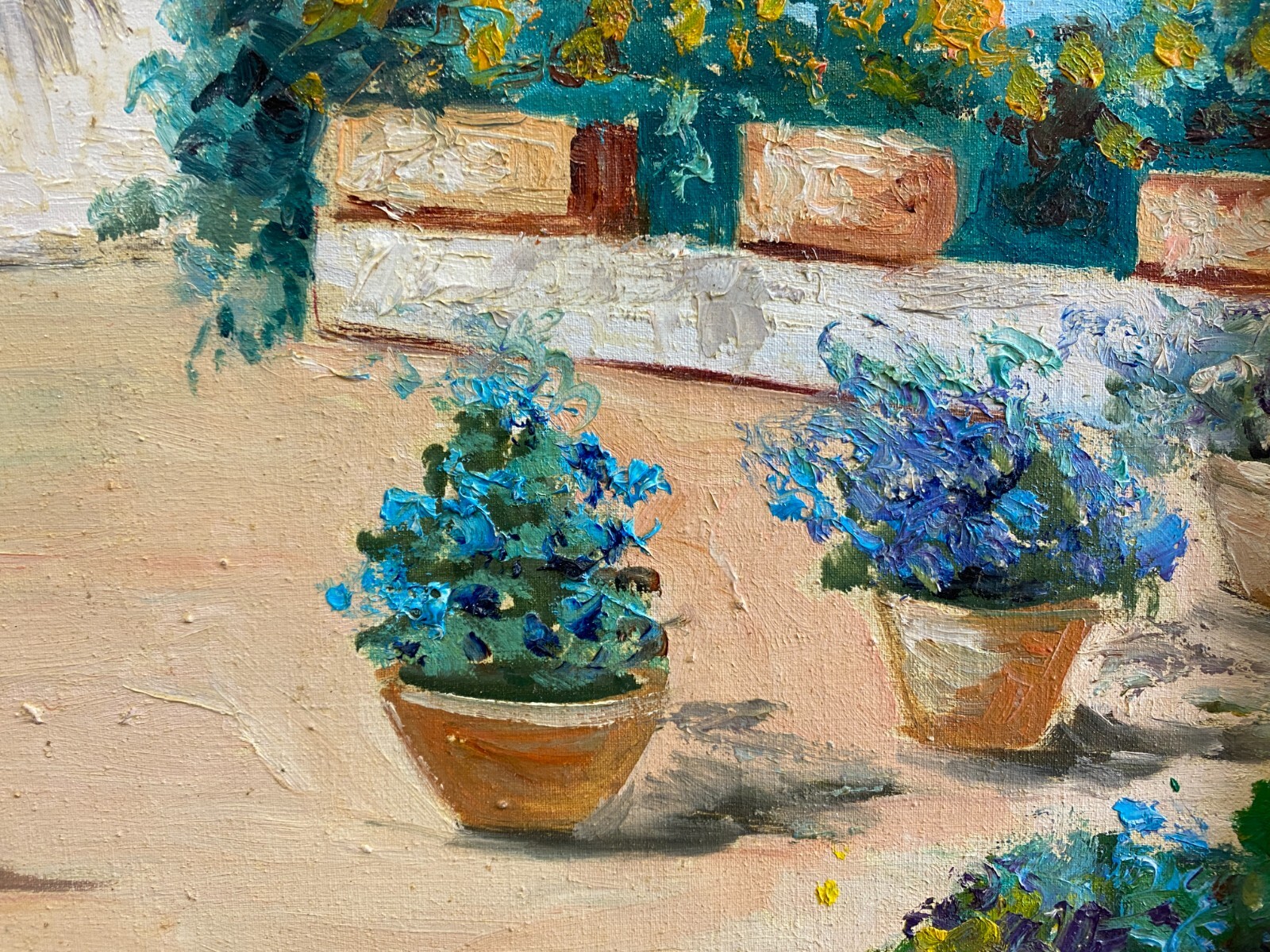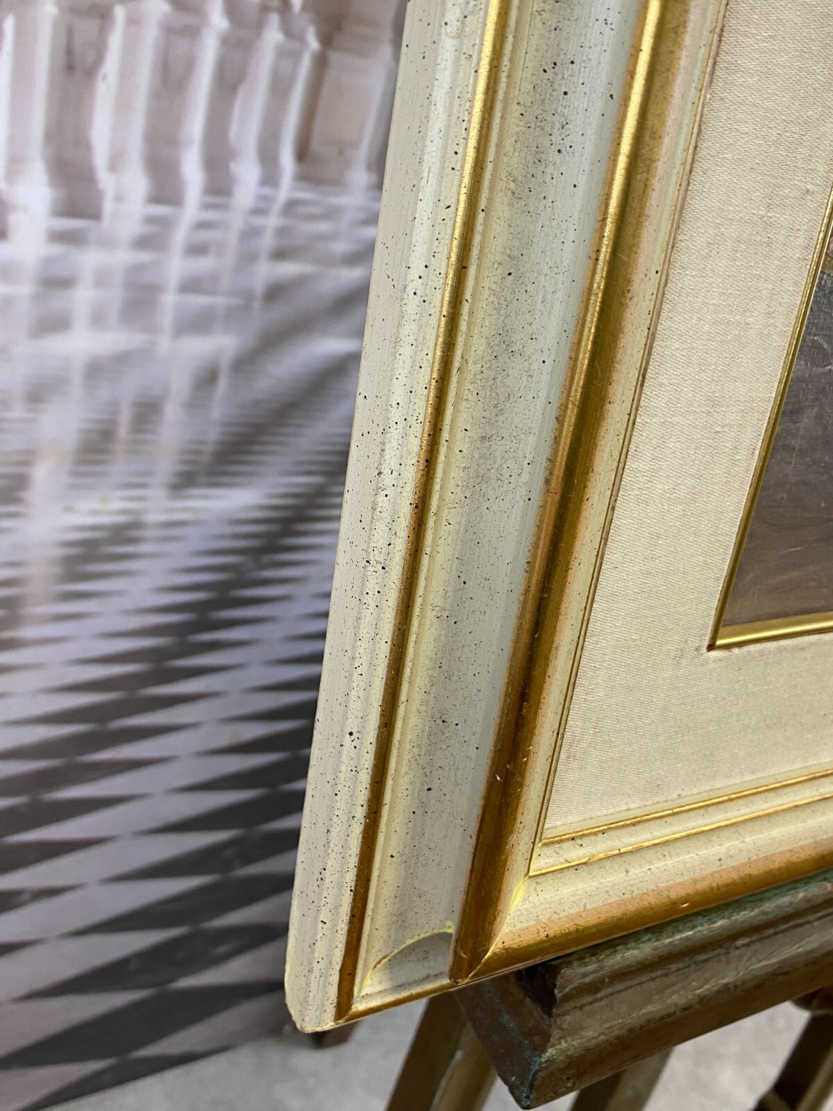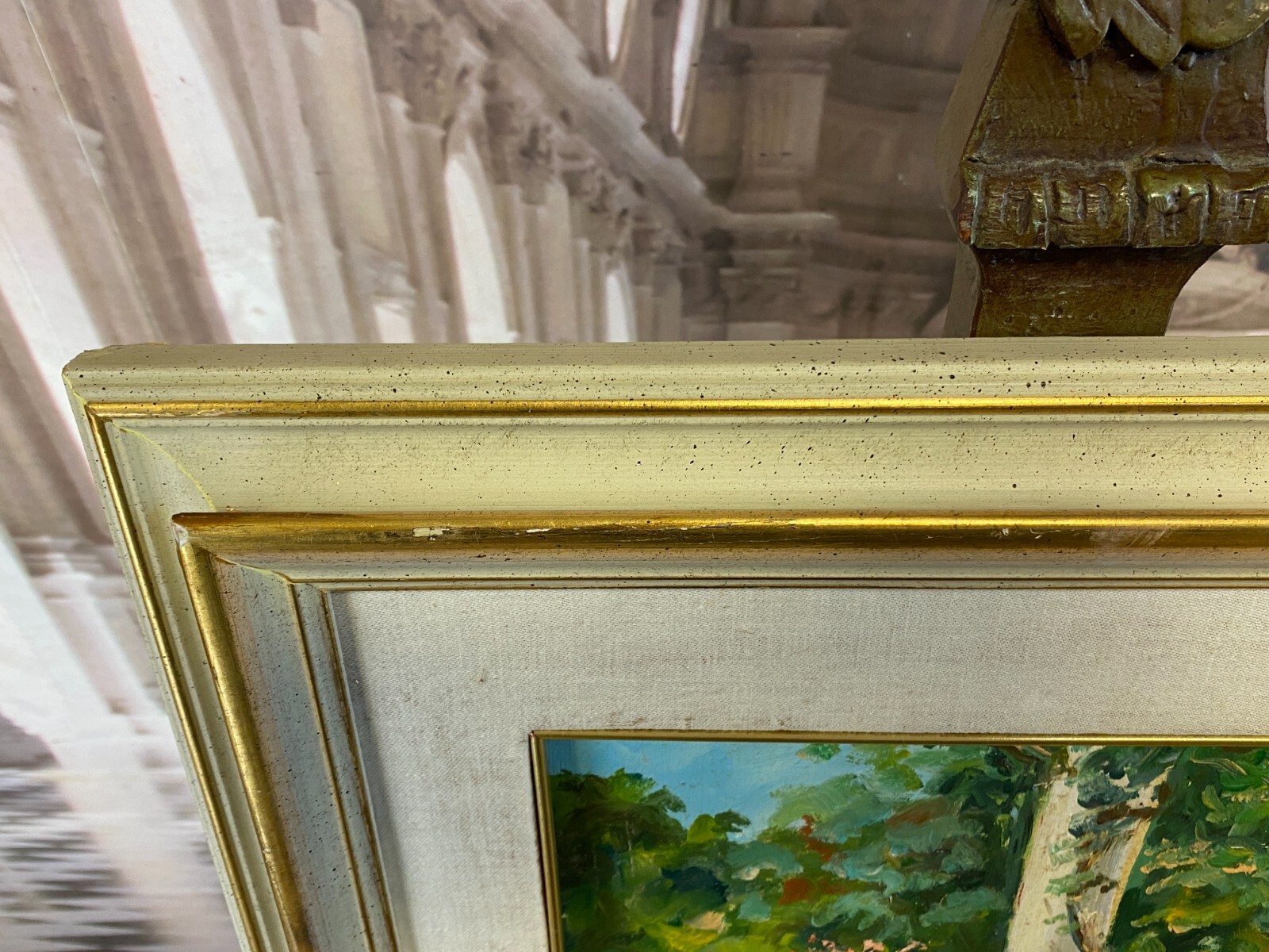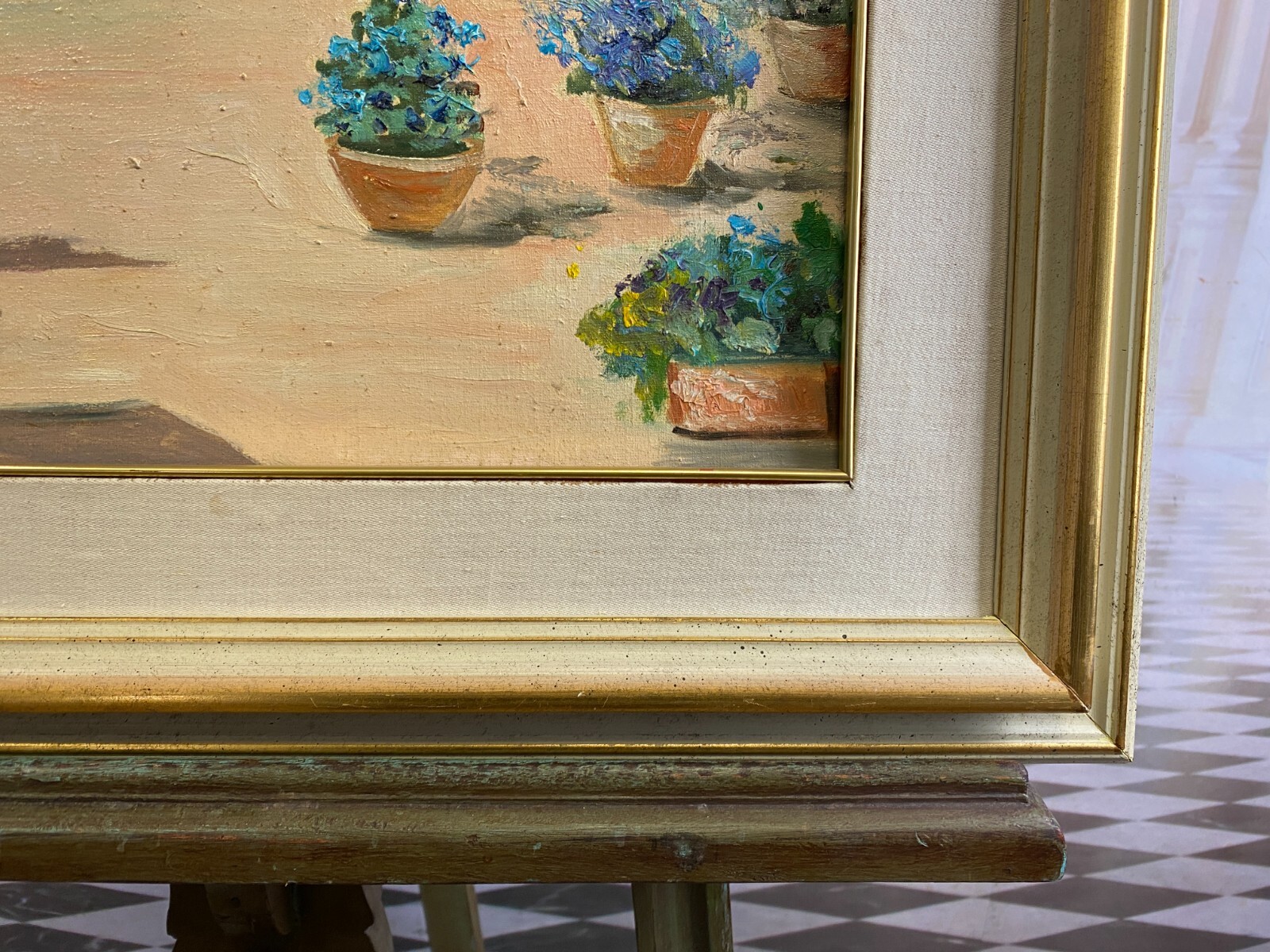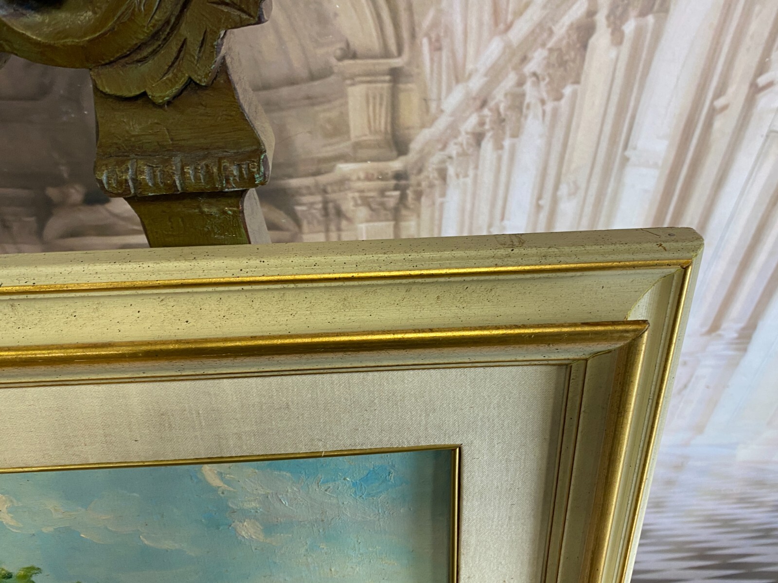 Ölgemälde auf Leinwand, unten links signiert Alina. Der Firnis ist minimal vergilbt, der Rahmen rechts bestossen und berieben. Gesamtabmessungen 68x59cm.