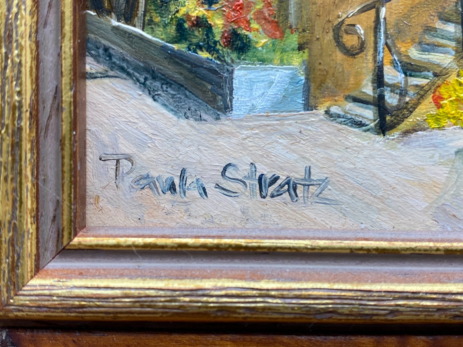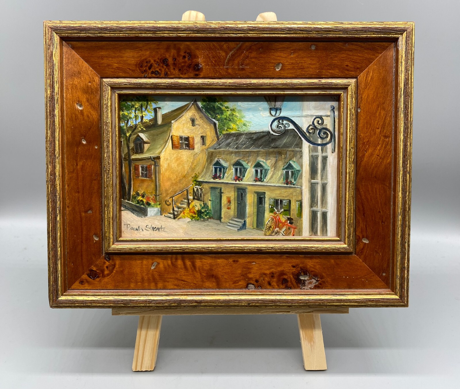 Artikelstandort: 83727 Schliersee – Sehr schönes kleines Ölgemälde auf Holz von Paula Stratz. Das Gemälde ist signiert und rückseitig gestempelt. Der Rahmen ist gewollt in Antikstil angefertigt mit vielen nachgeahmten Beschädigungen. Abmessungen 15x10cm, mit Rahmen 23x18cm.