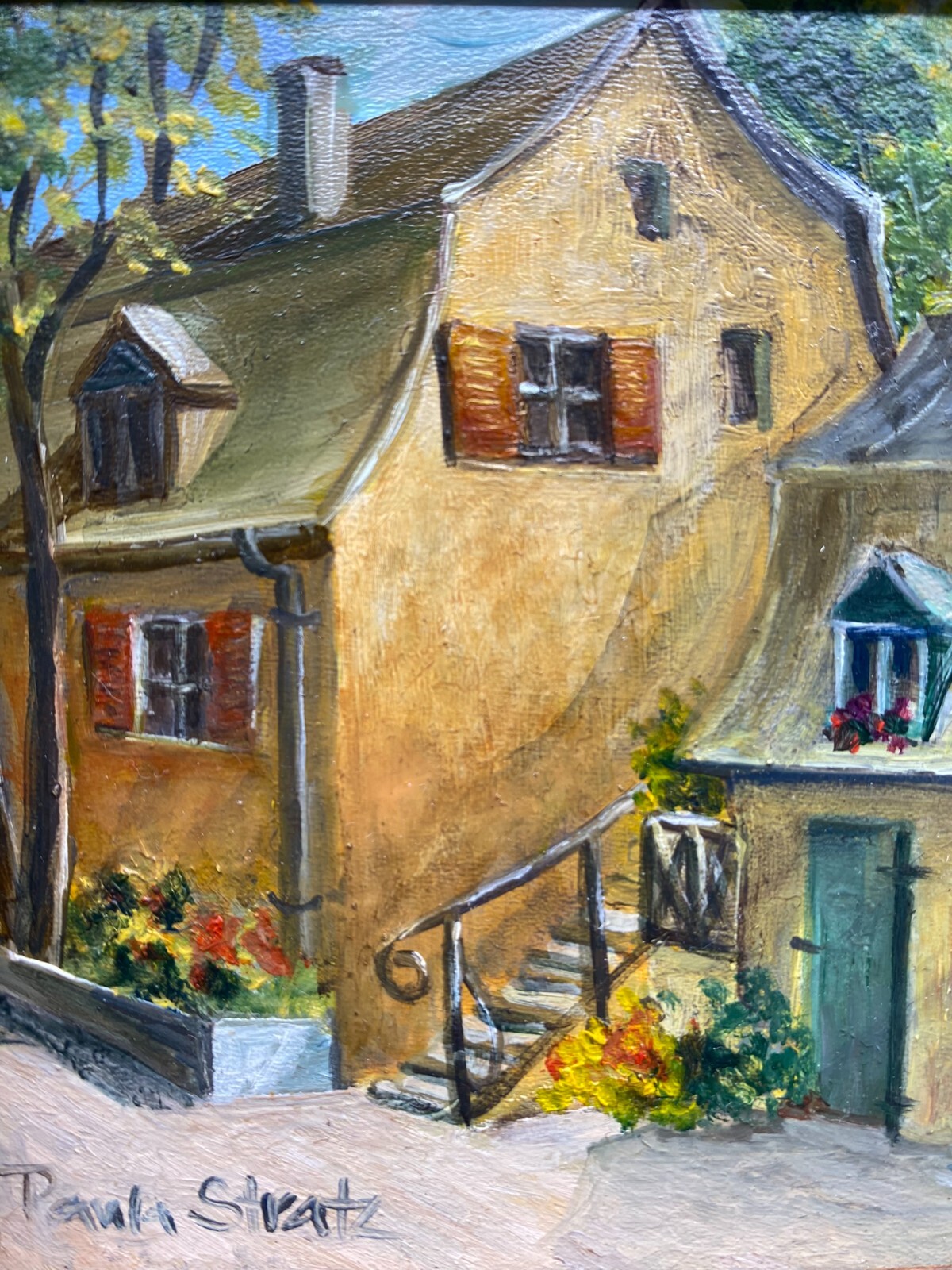 ÖLGEMÄLDE PAULA STRATZ MÜNCHEN GEMÄLDE GERAHMT HÄUSERZEILE