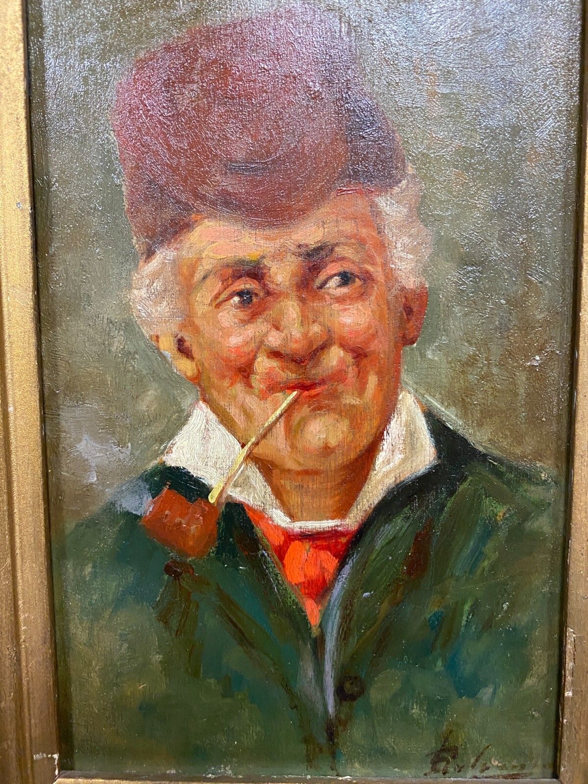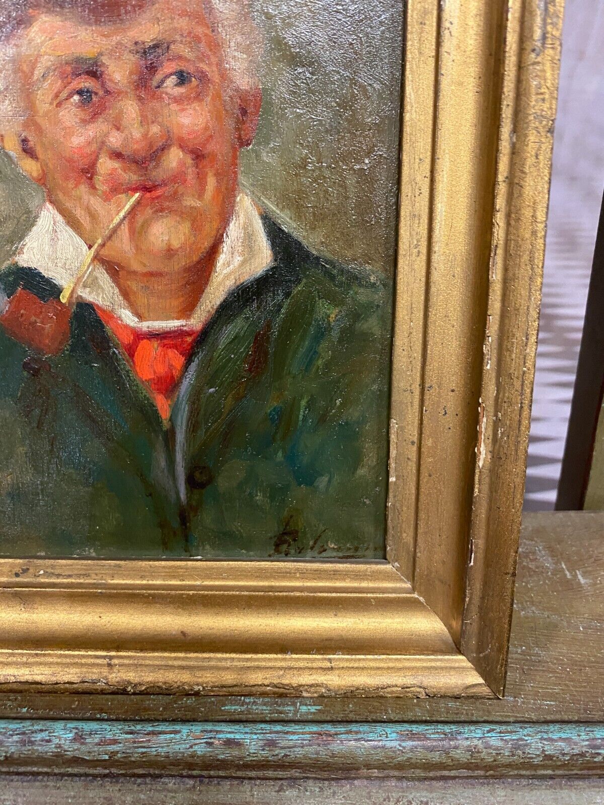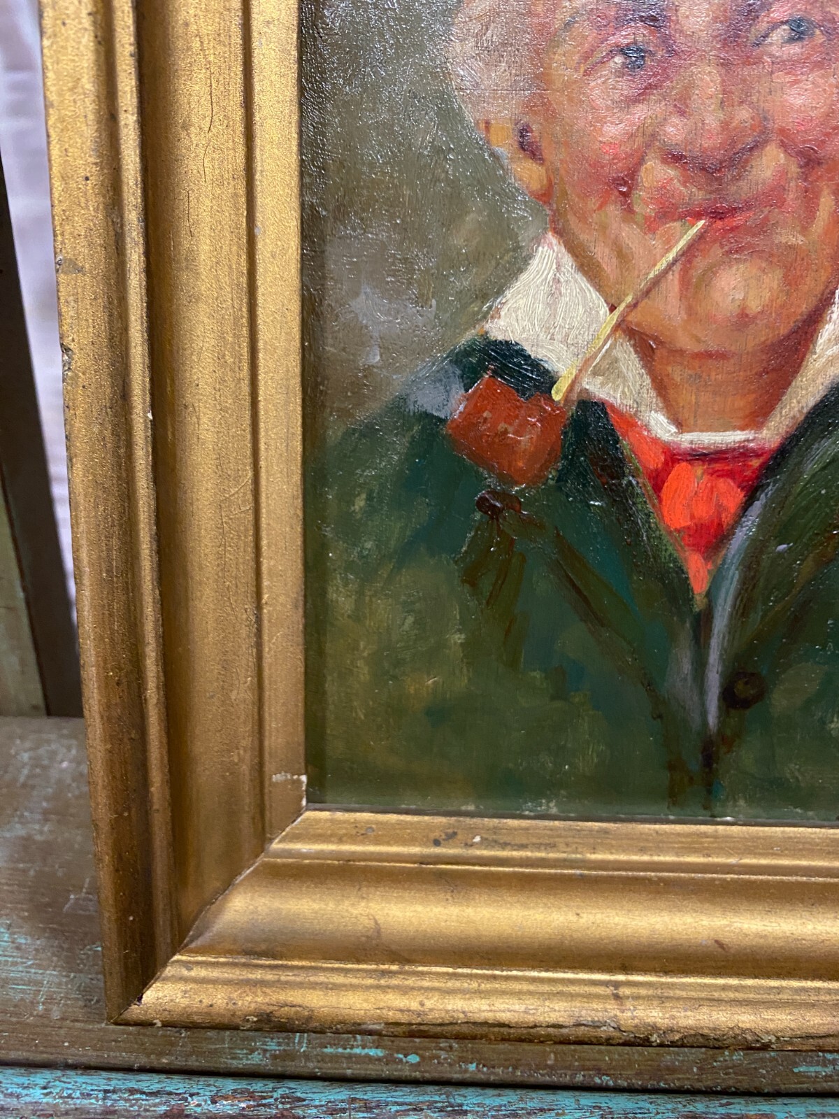 ÖLGEMÄLDE PORTRAIT MANN MIT PFEIFE GEMÄLDE GERAHMT SIGNIERT