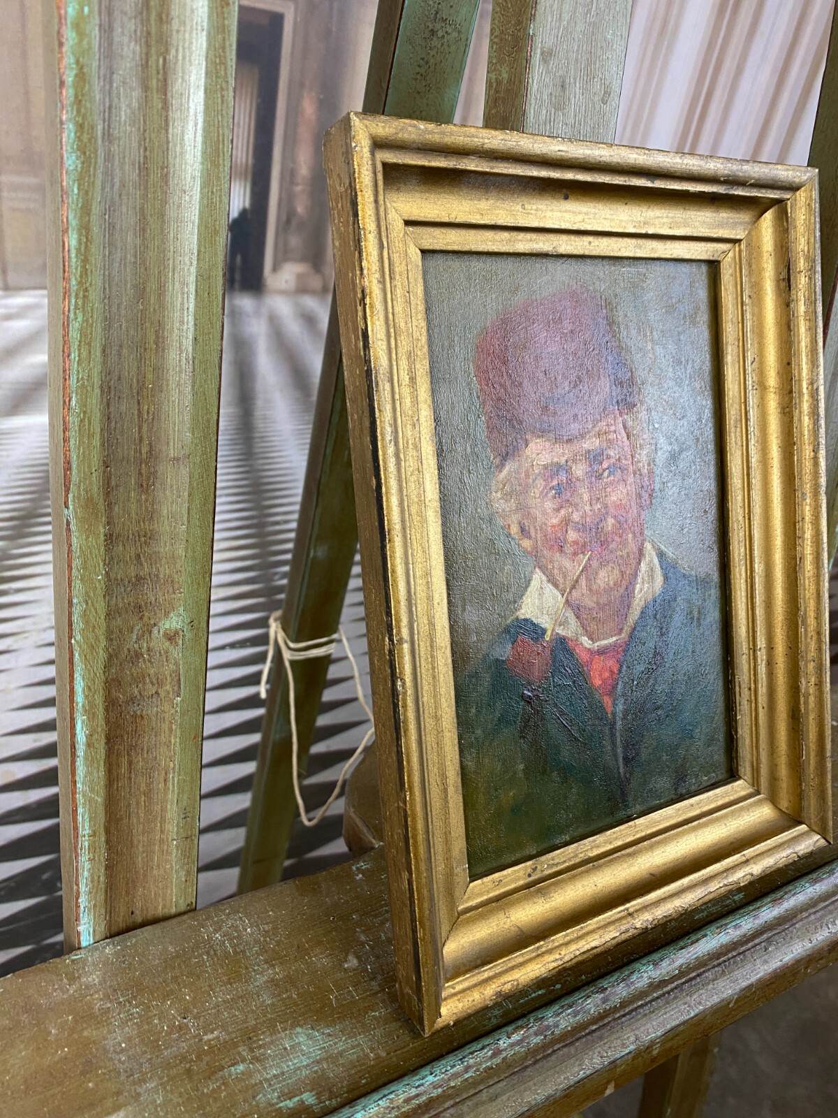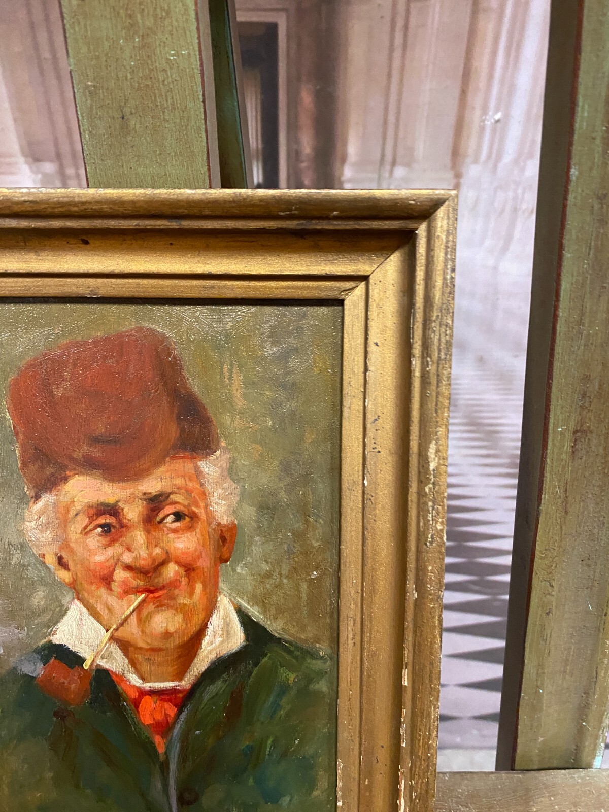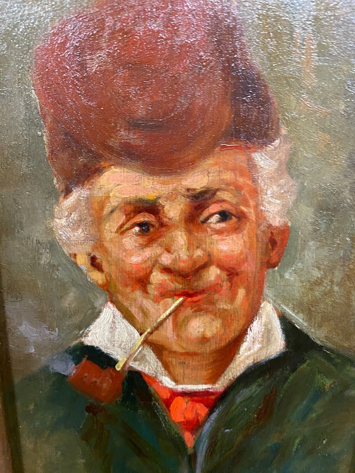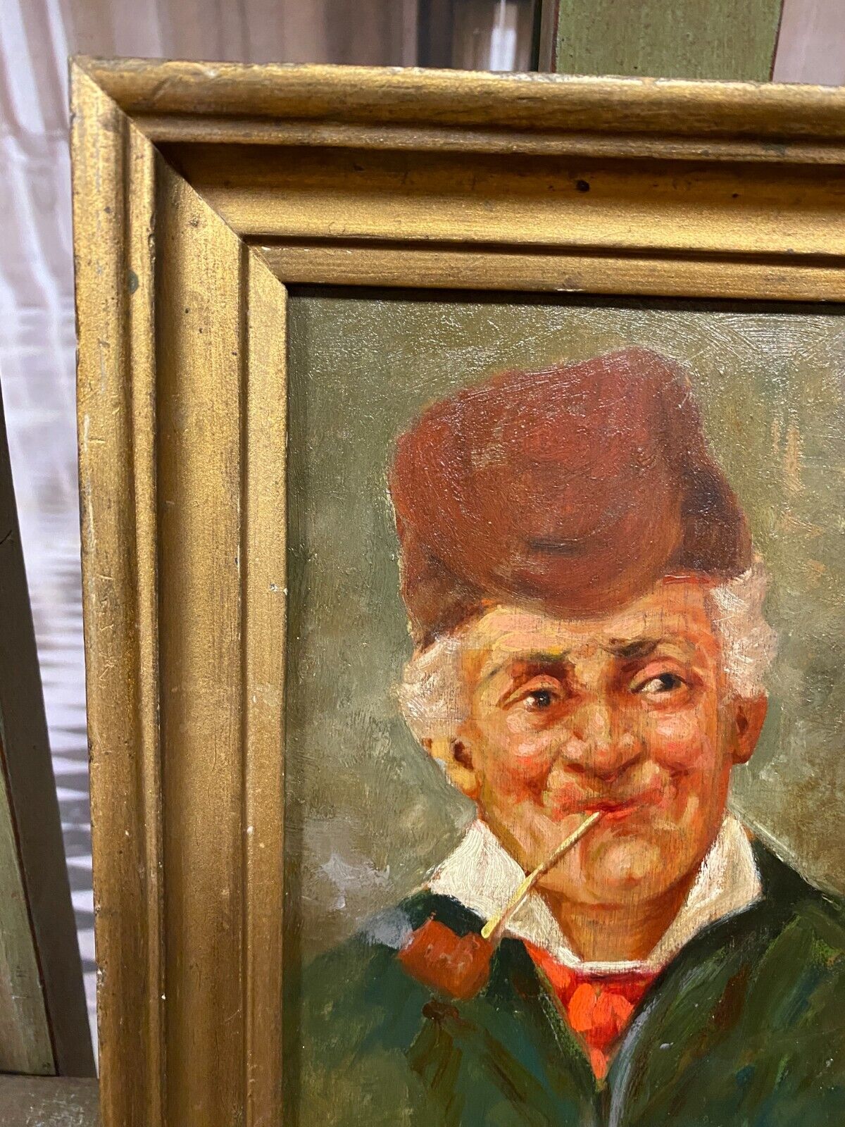 ÖLGEMÄLDE PORTRAIT MANN MIT PFEIFE GEMÄLDE GERAHMT SIGNIERT