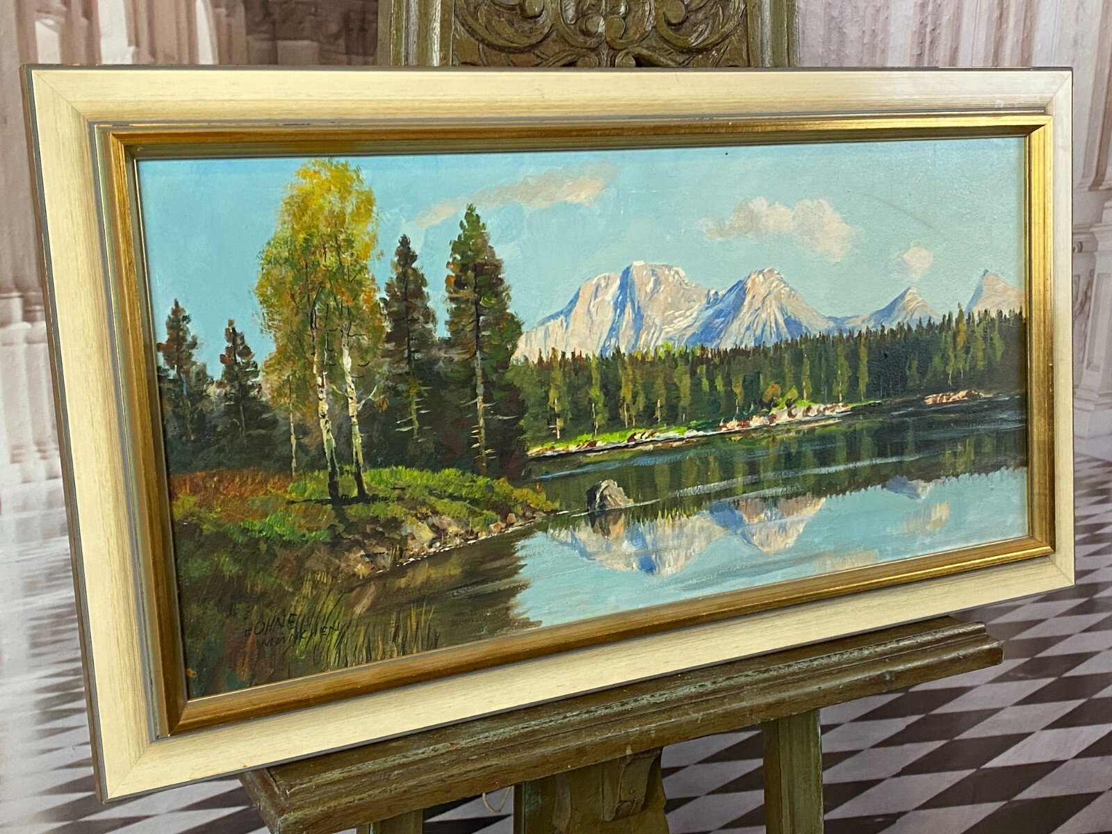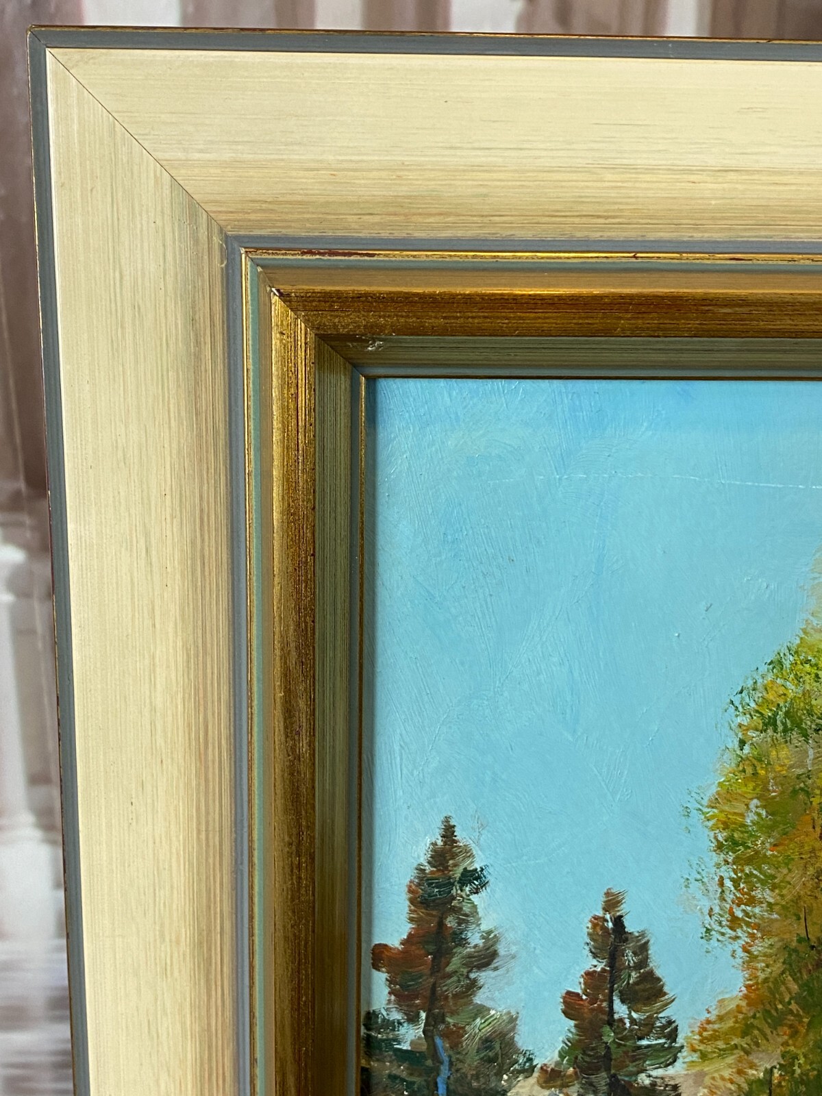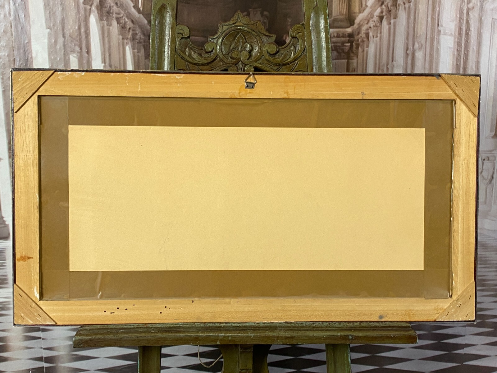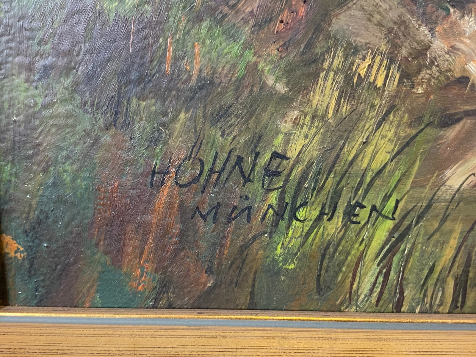 Ölgemälde auf Platte, signiert Höhne. Im Himmeslbereich leicht berieben, Rahmen minimal bestossen. Abmessungen 72x35cm, mit Rahmen 81x44cm.