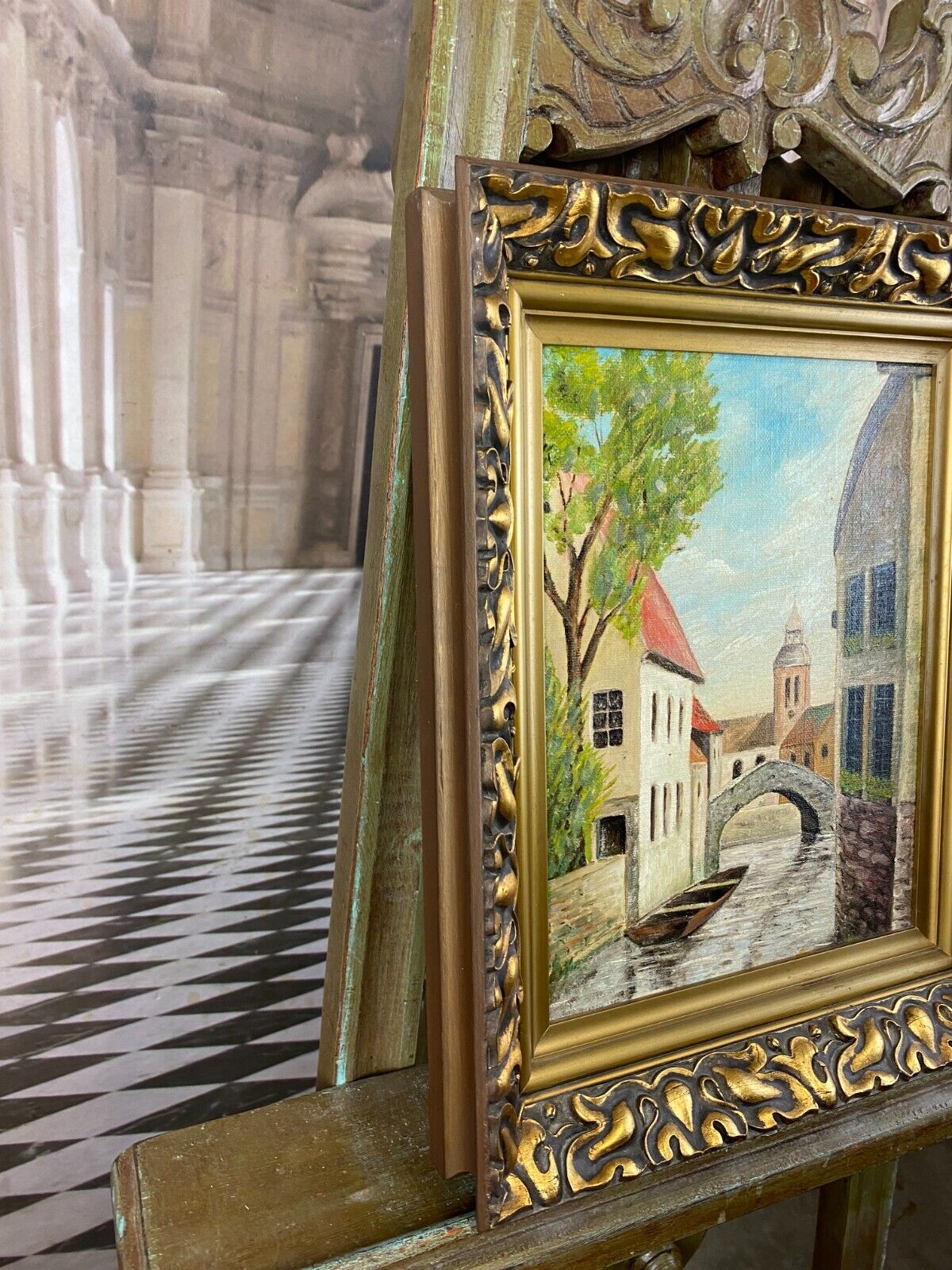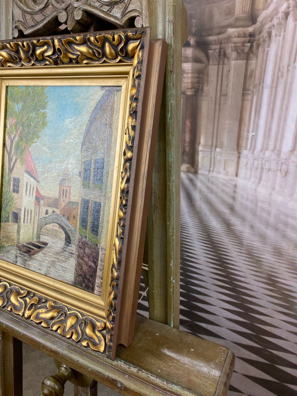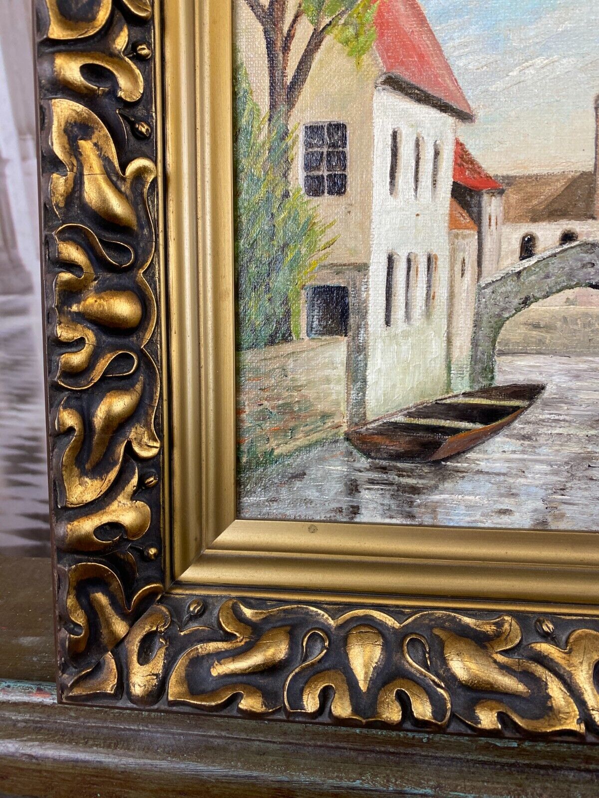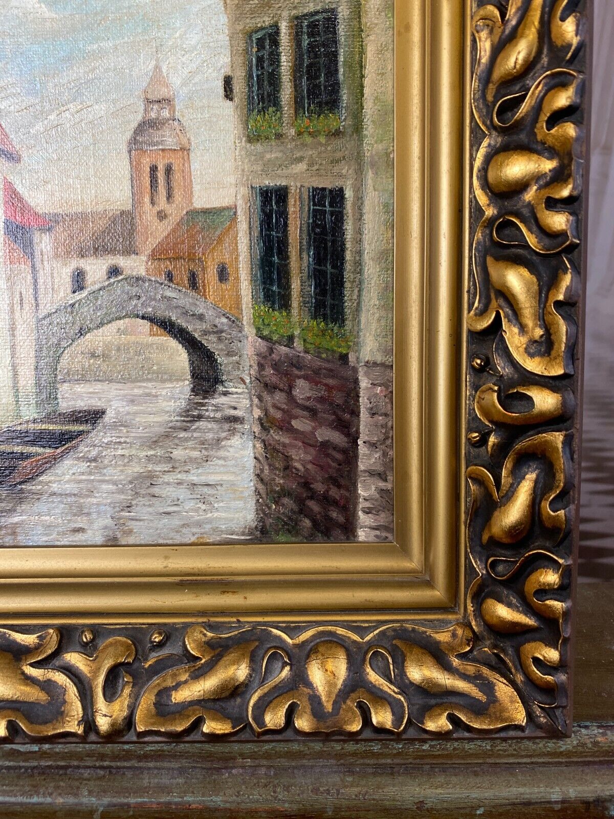 ÖLGEMÄLDE STADT ANSICHT KANAL MIT HÄUSERN GEMÄLDE GERAHMT