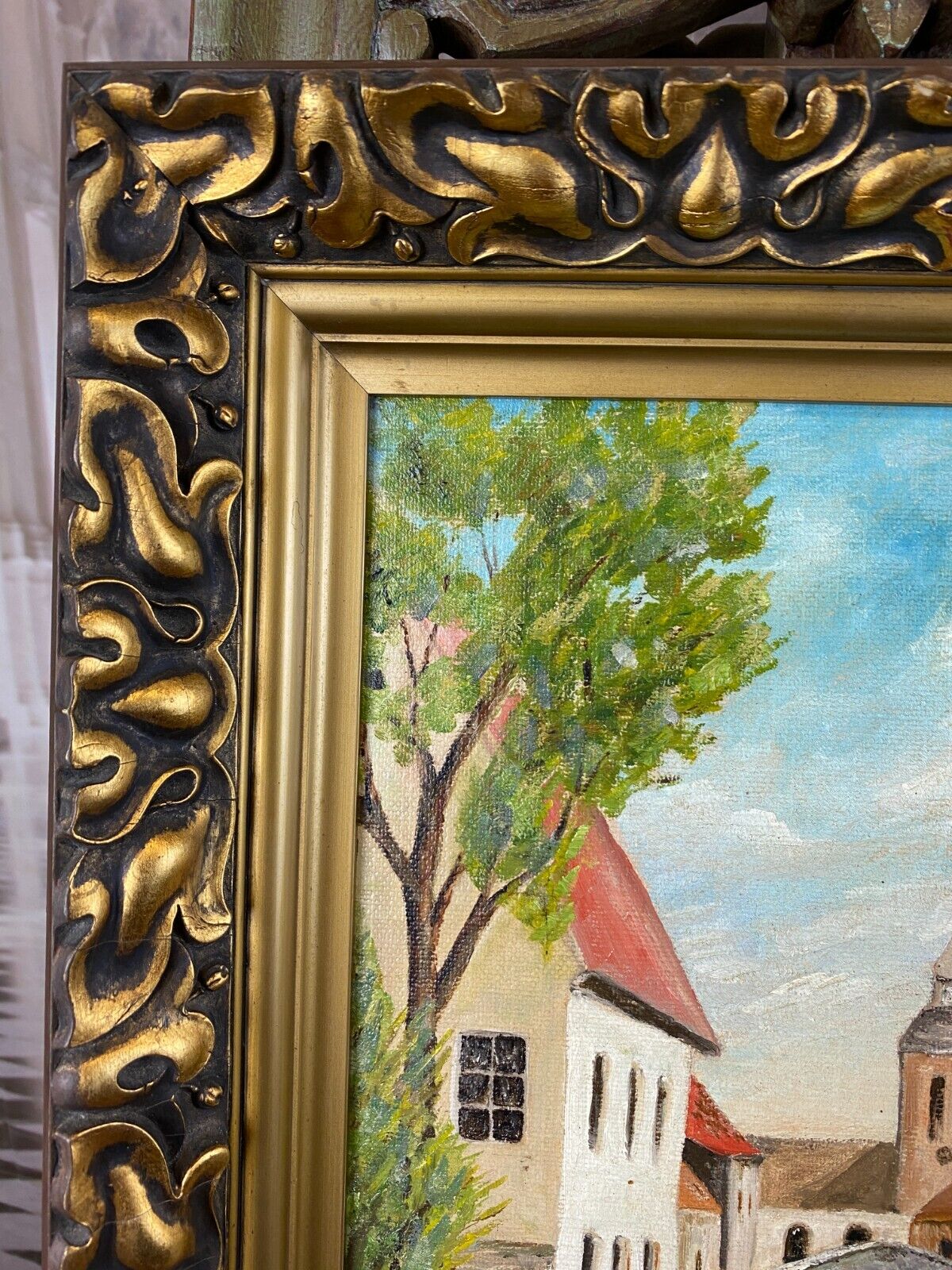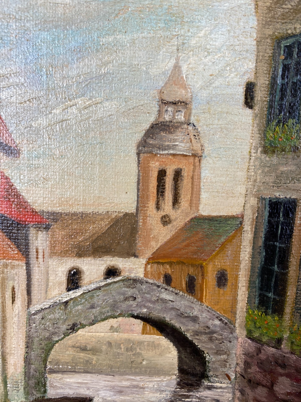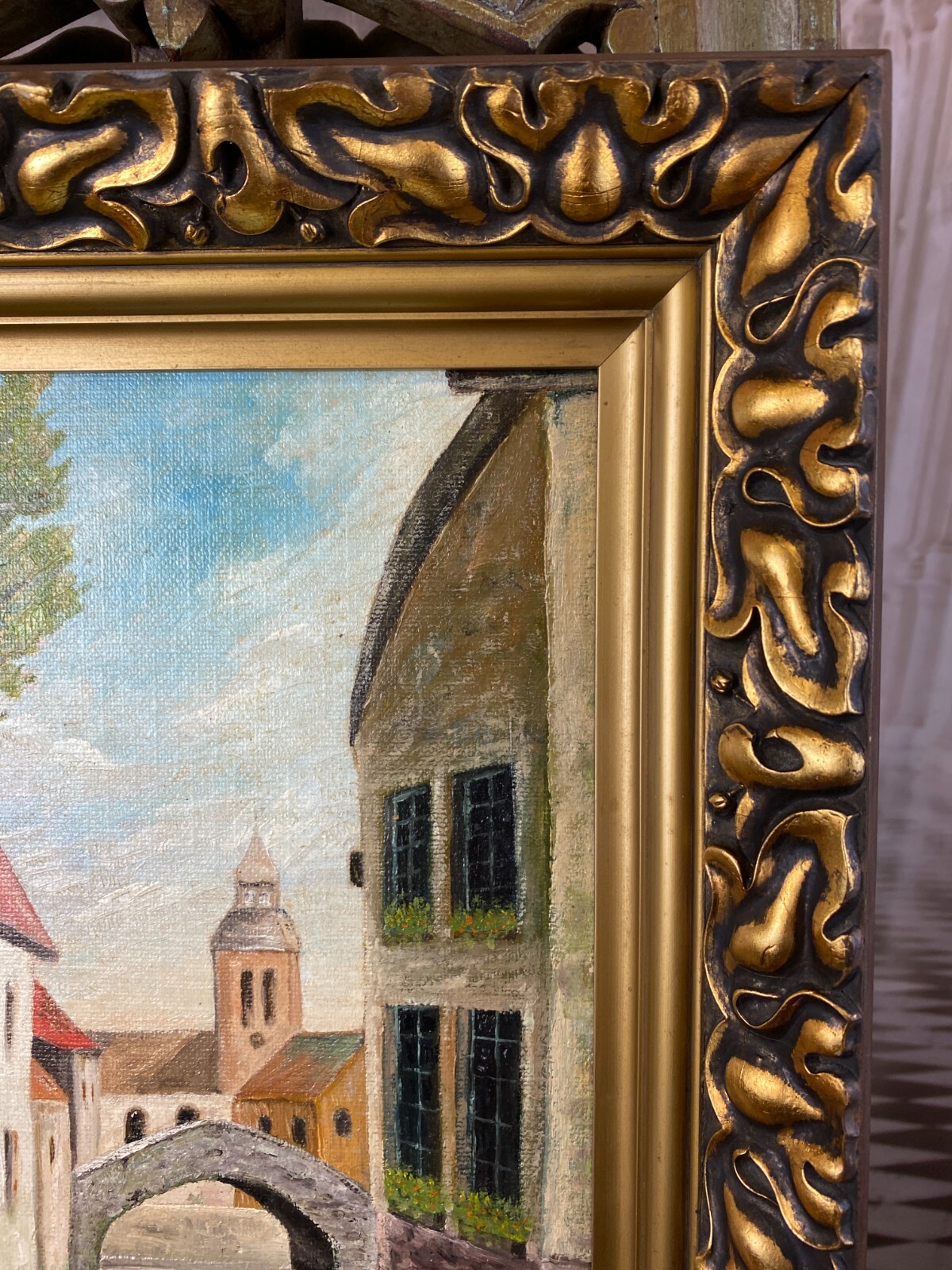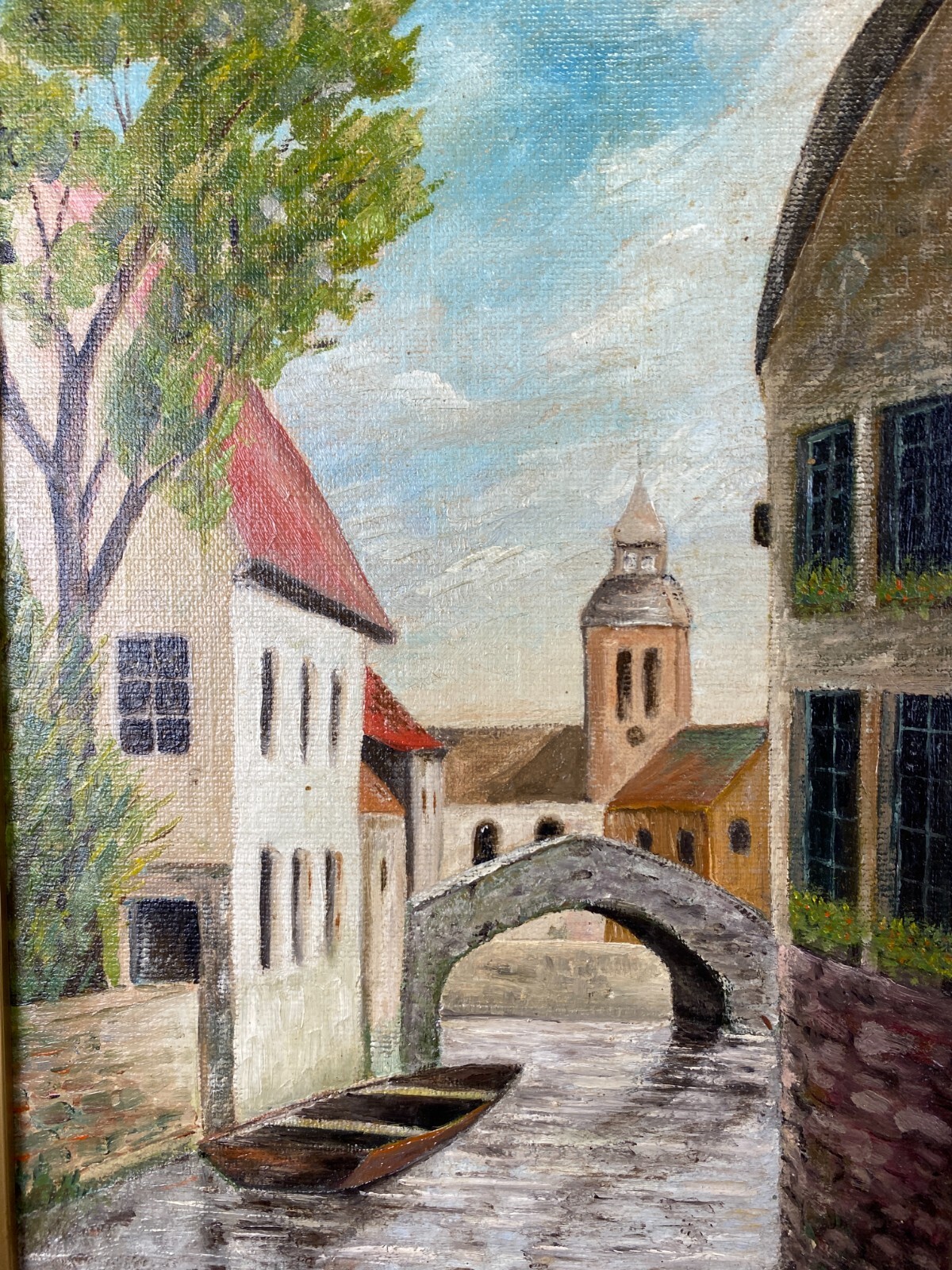 ÖLGEMÄLDE STADT ANSICHT KANAL MIT HÄUSERN GEMÄLDE GERAHMT