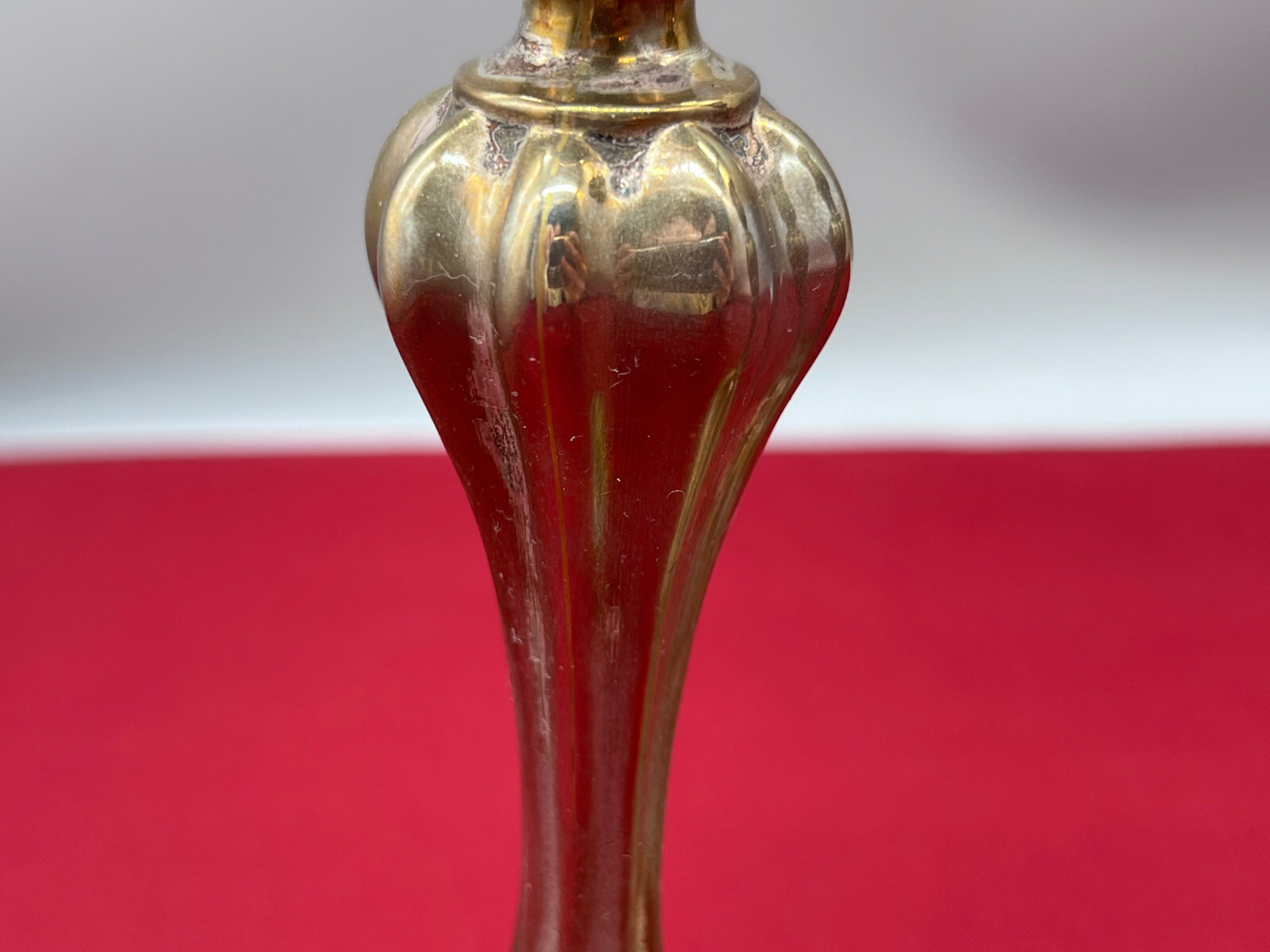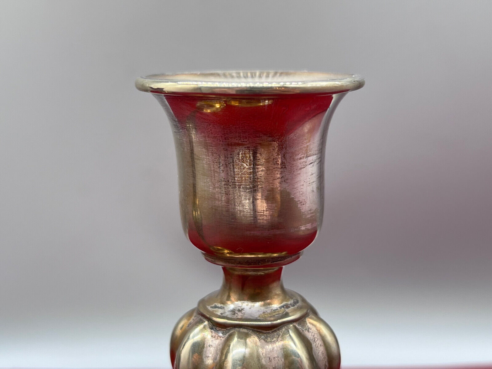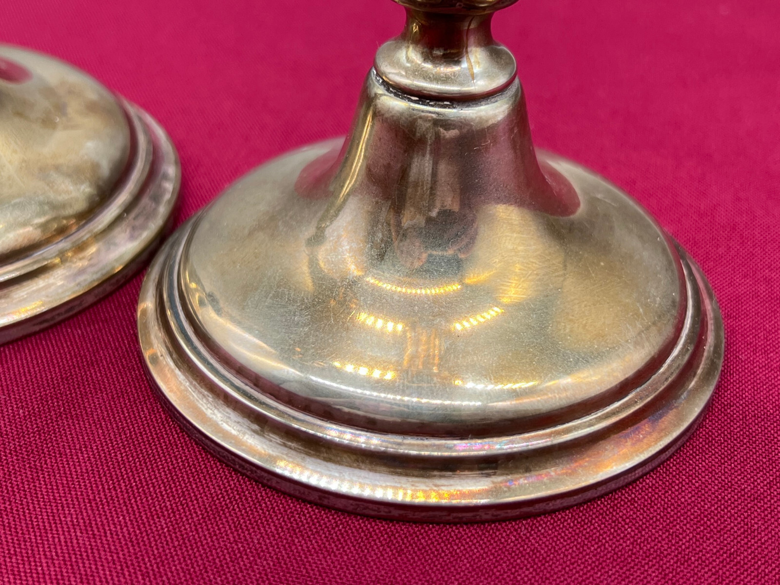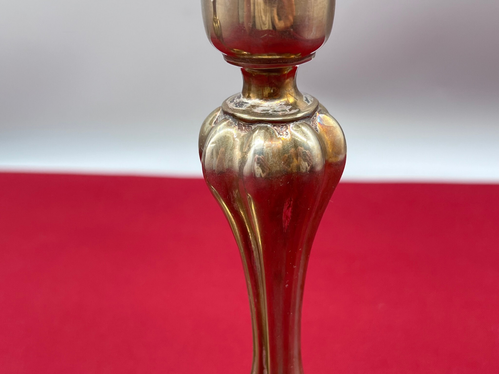 Paar antike Kerzenleuchter, versilbert, erste Hälfte 20-tes Jhdt. Oberflächenabrieb, kleinste Kratzer und minimalste Dellen. Höhe/Durchmesser 20,5/10cm.