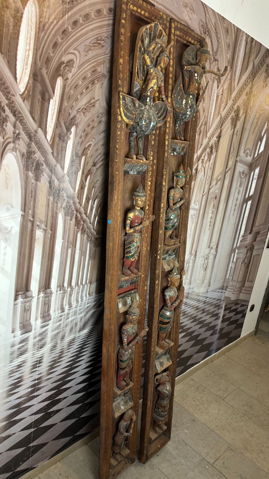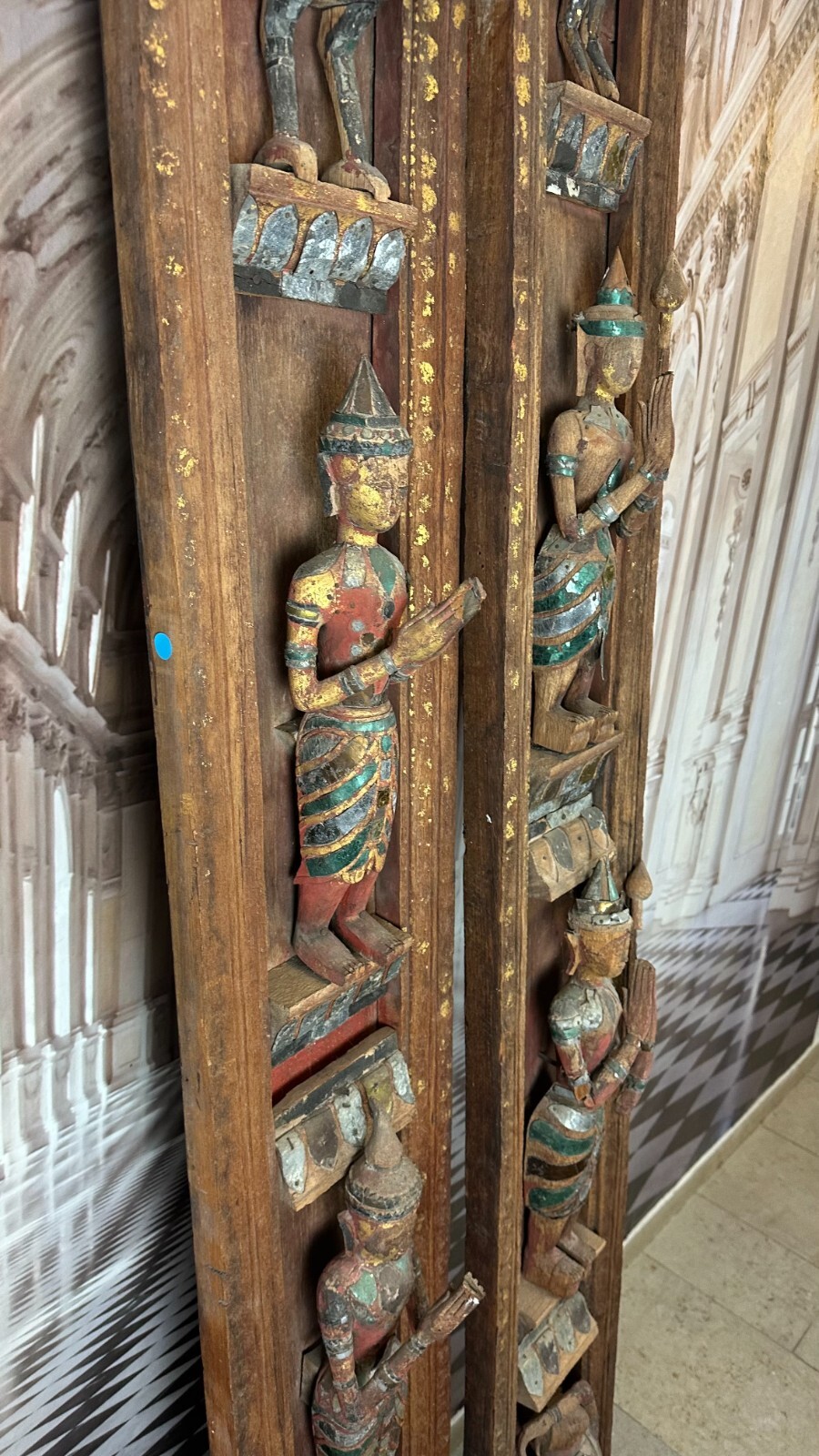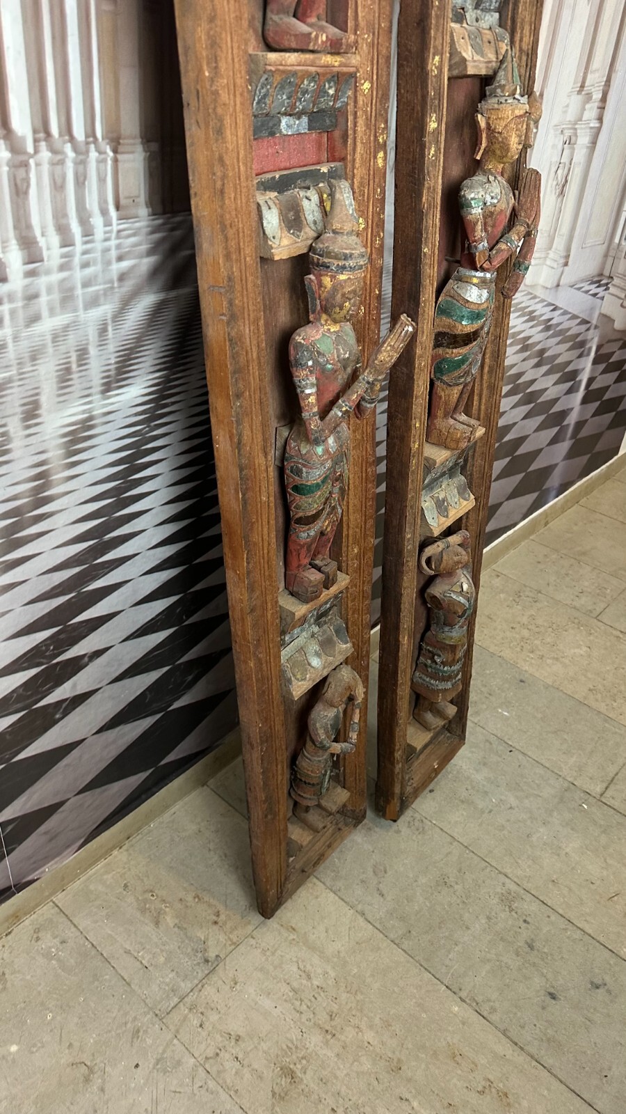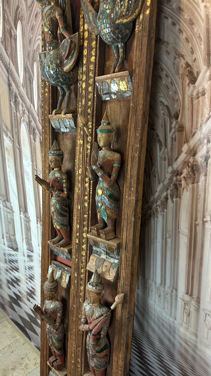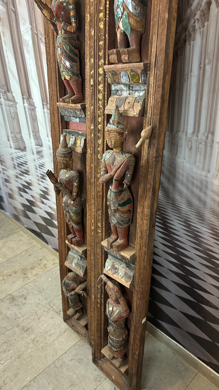 PAAR ANTIKE WAND ELEMENTE TÜR RAHMEN THAILAND UM 1900 FIGUREN SKULPTUREN 252cm
