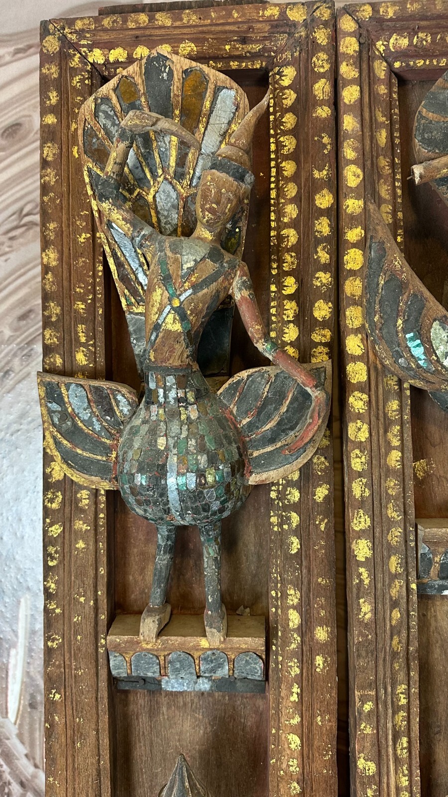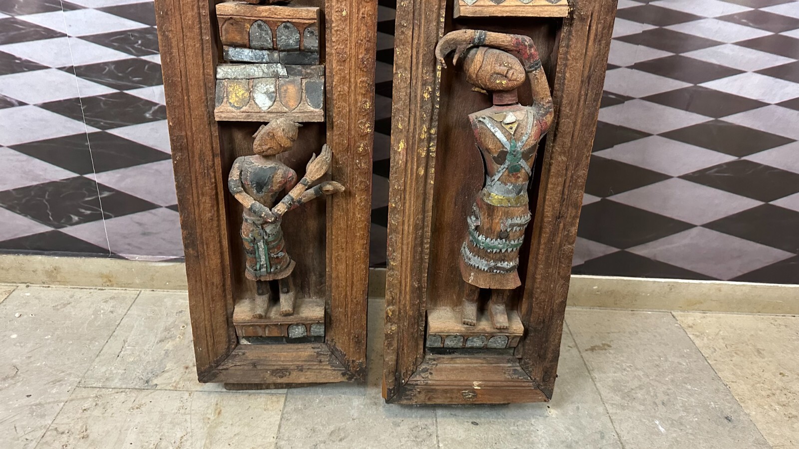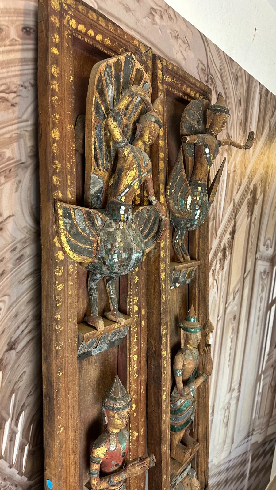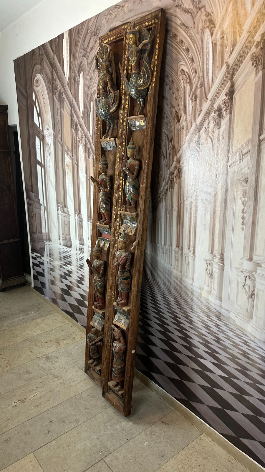 PAAR ANTIKE WAND ELEMENTE TÜR RAHMEN THAILAND UM 1900 FIGUREN SKULPTUREN 252cm