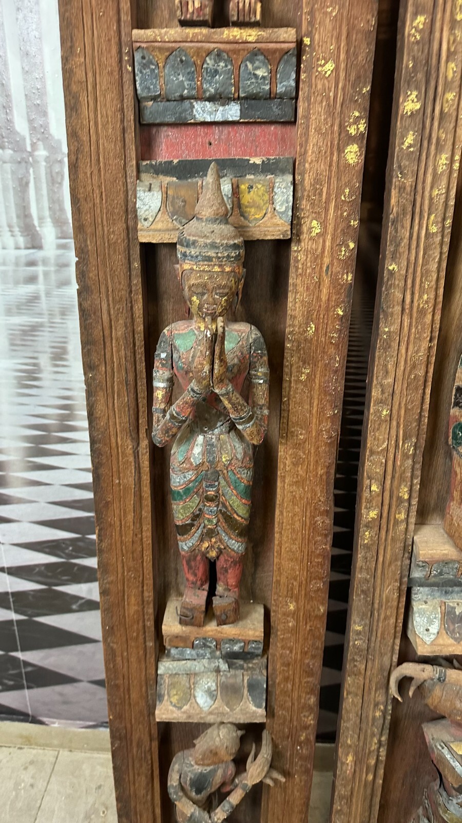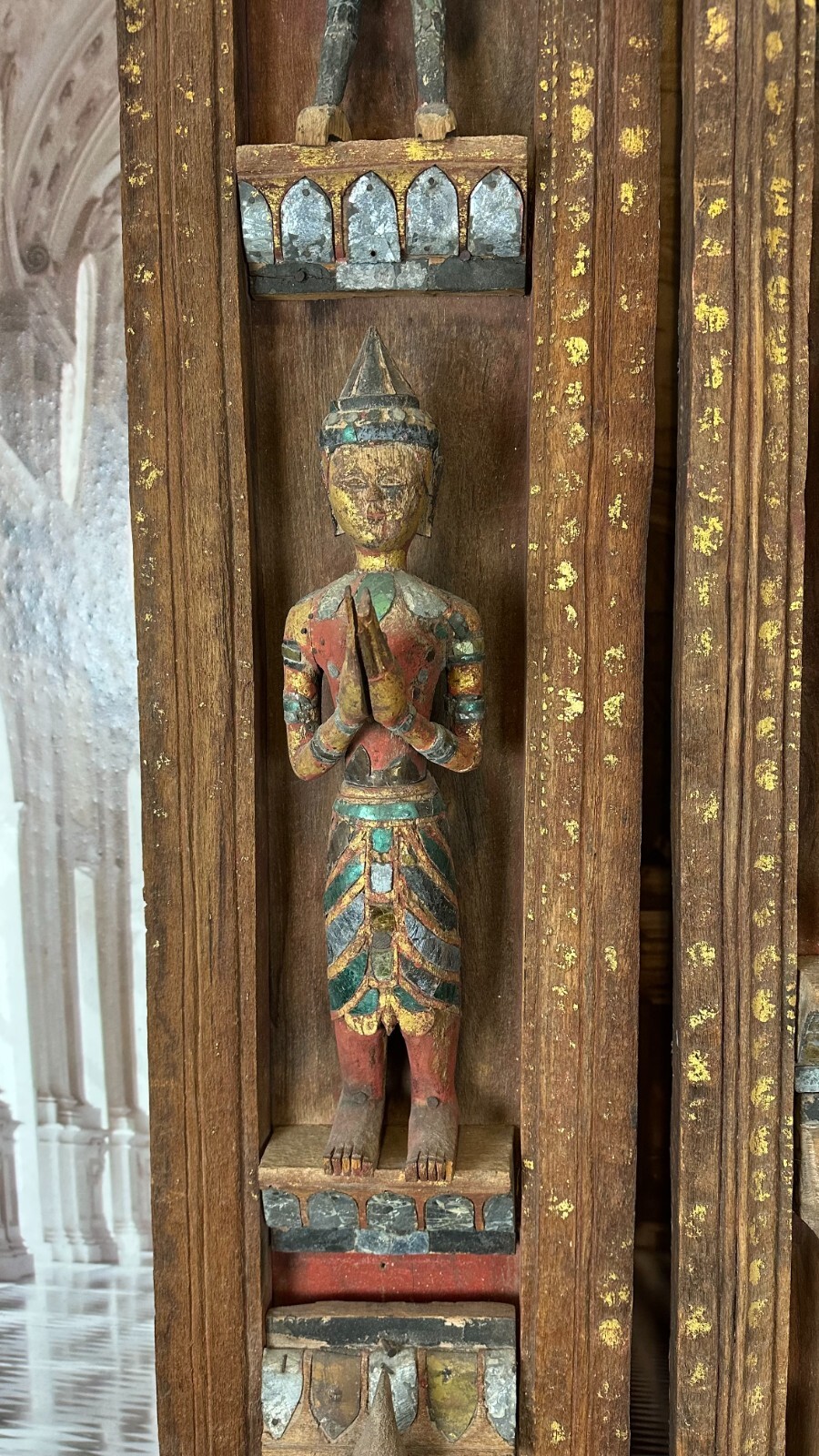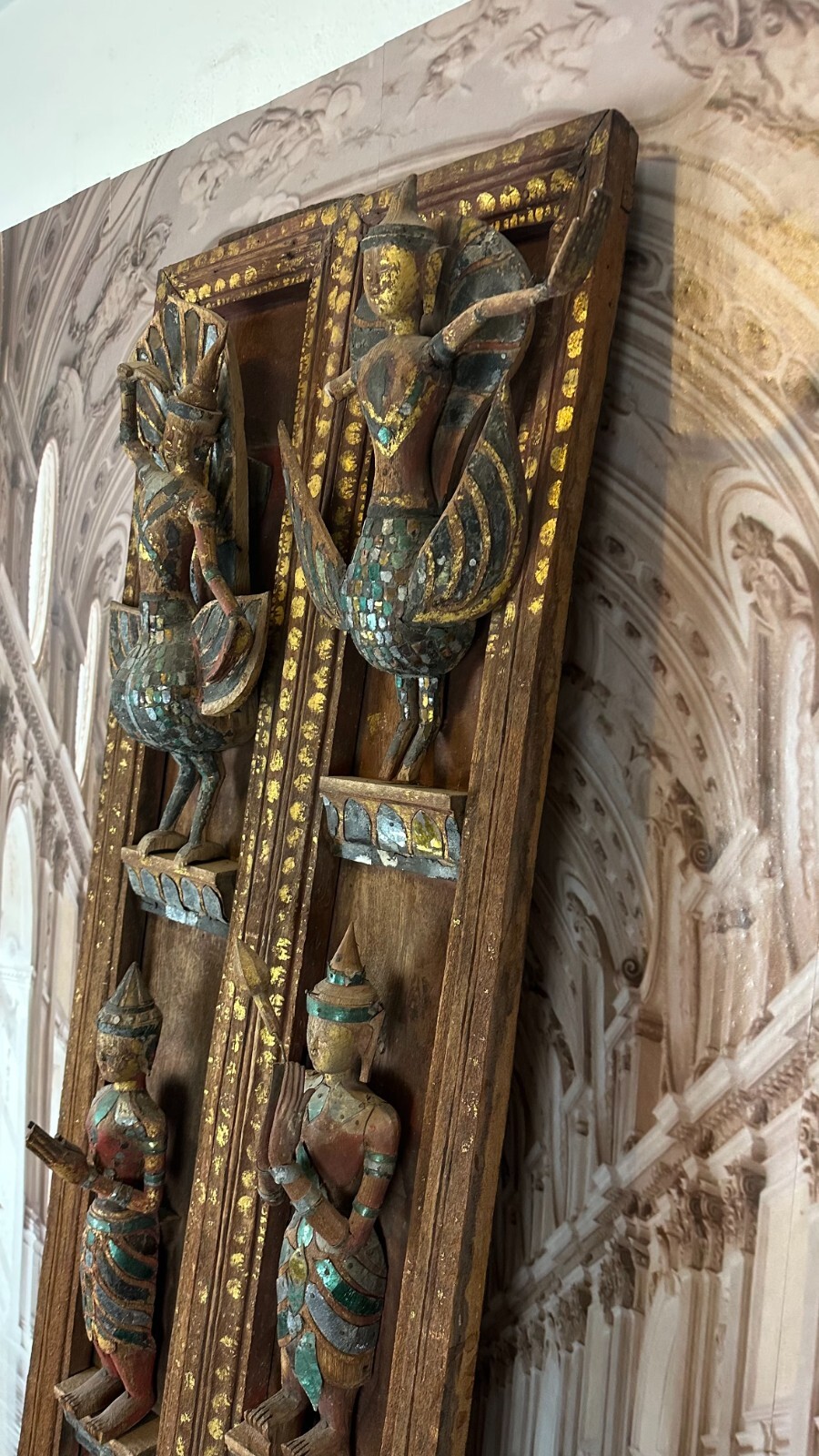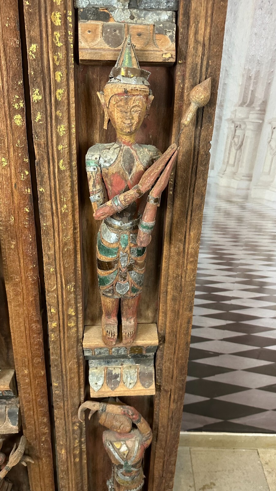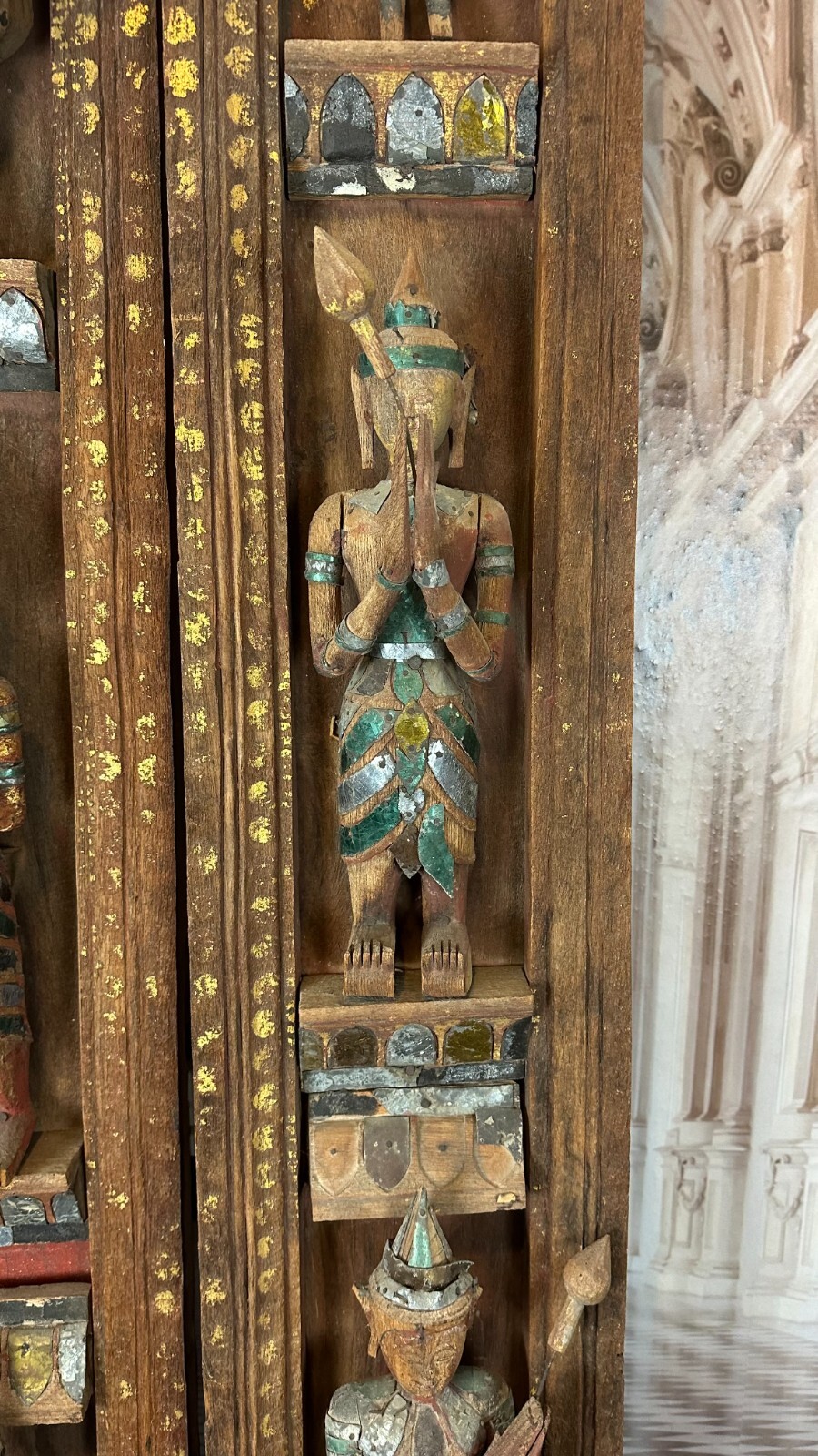 PAAR ANTIKE WAND ELEMENTE TÜR RAHMEN THAILAND UM 1900 FIGUREN SKULPTUREN 252cm