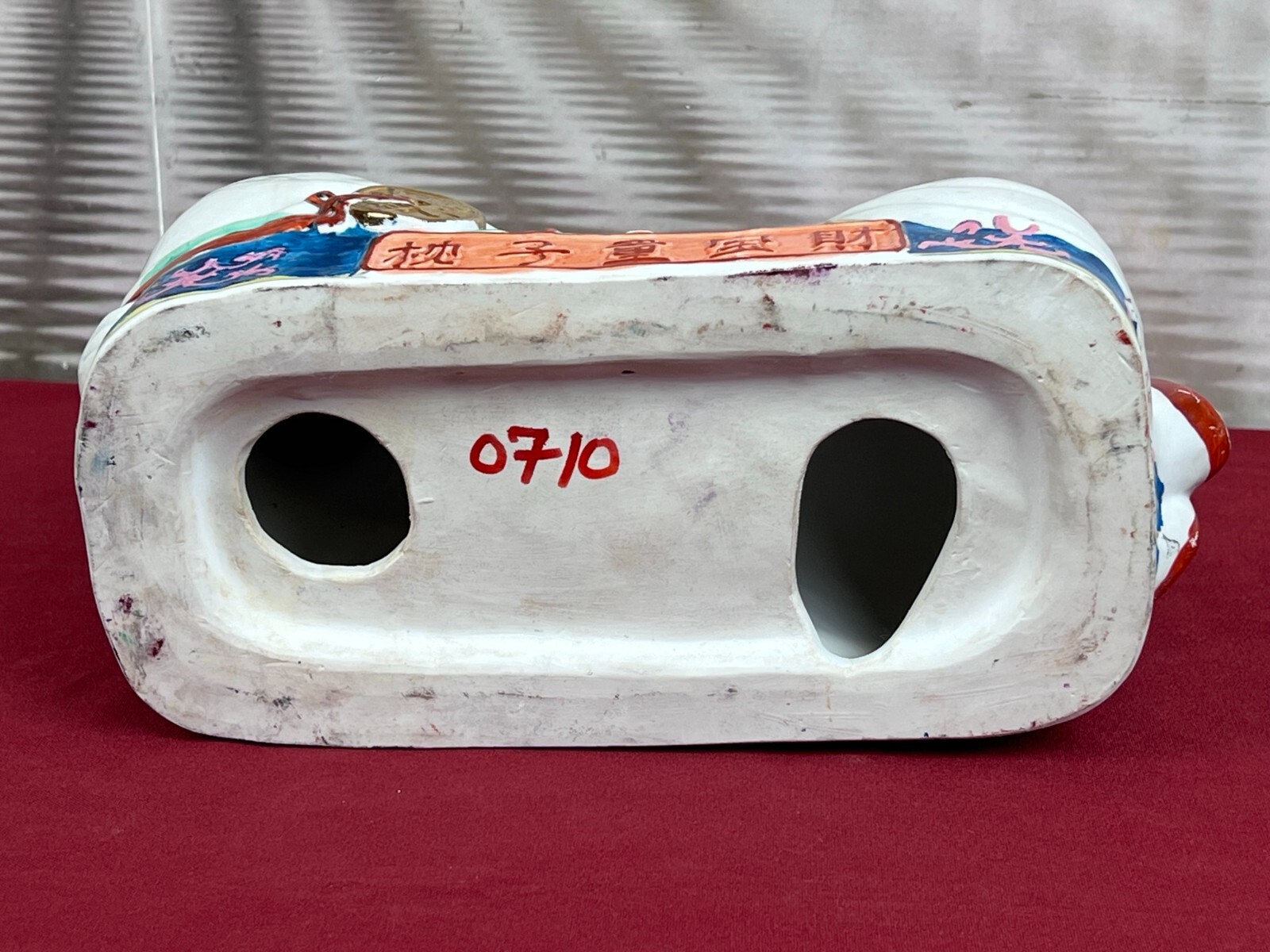 Artikelstandort: 83727 Schliersee – Paar Kopfstützen aus Porzellan, handbemalt. Oberfläche ganz leicht berieben, Farbe zum Teil vor dem Brand verlaufen, unterer Rand mit kleineren Unebenheiten unter der Glasur. Abmessungen BTH jeweils 29/14/16cm. Beide Figuren ohne Chips.