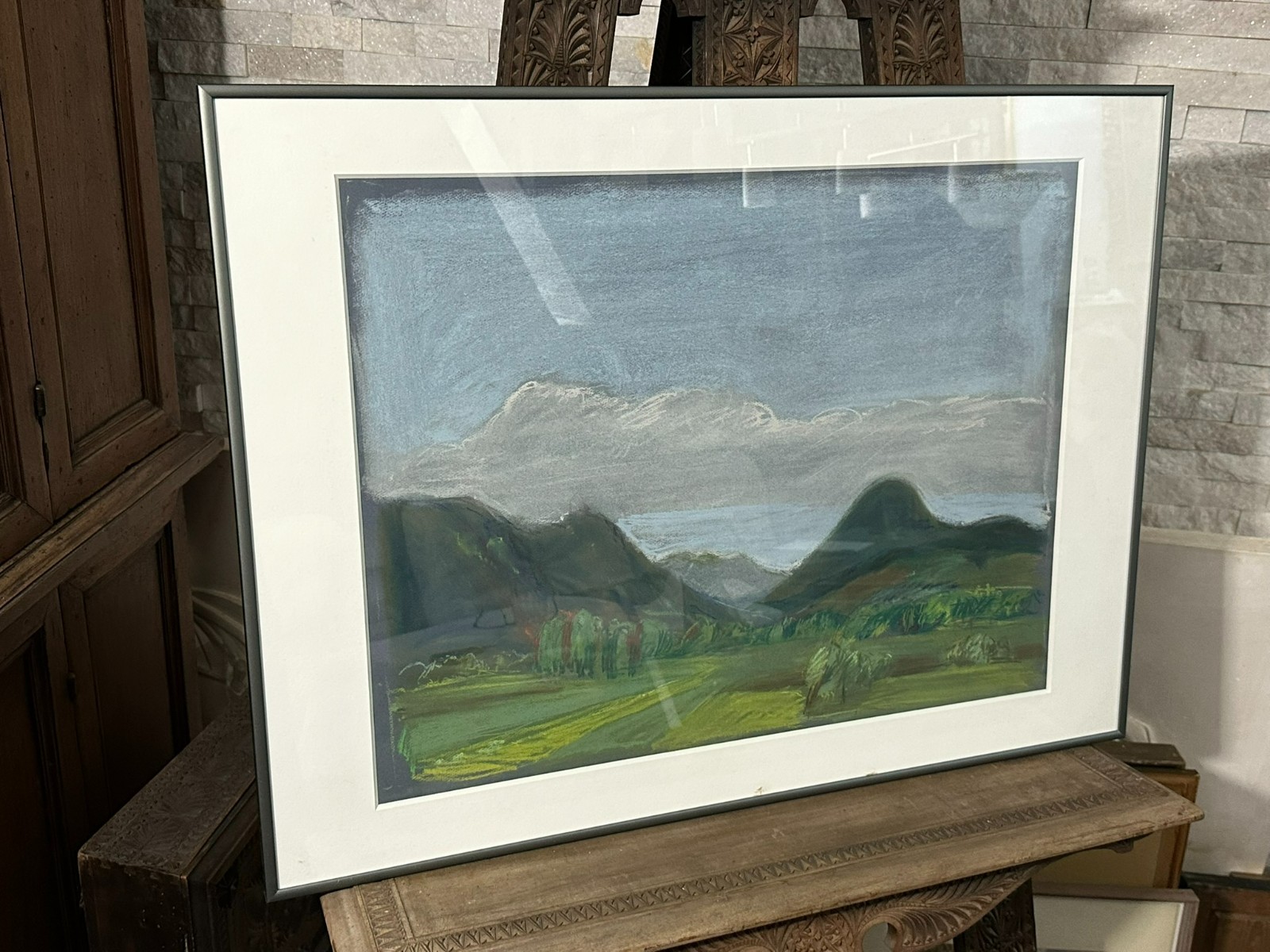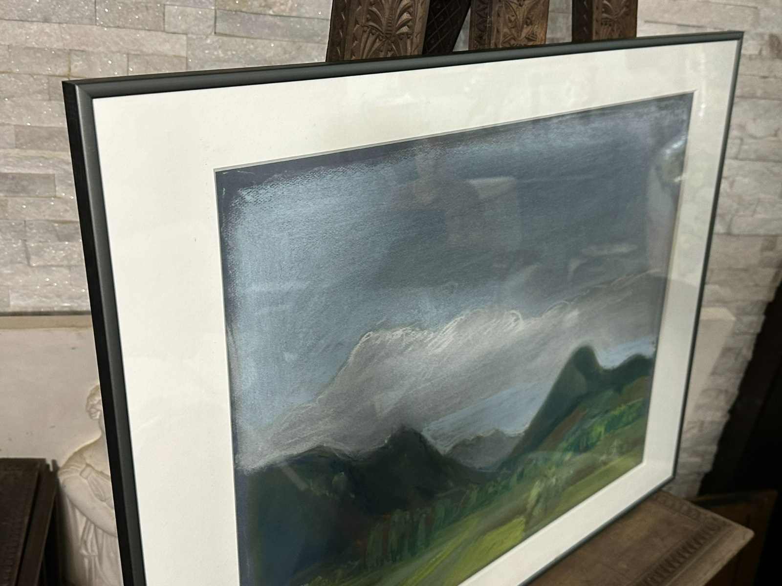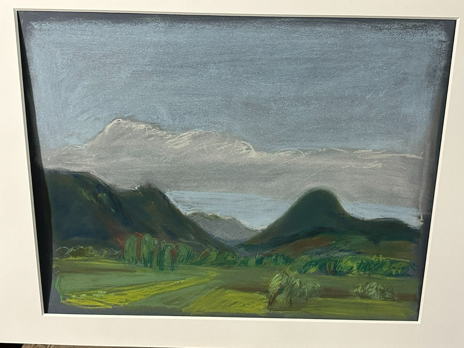 Sehr schöne große Kreidezeichnung/Pastell auf Papier, im Passepartout hinter Glas, in neuwertigem Rahmen. Sehr guter Gesamtzustand. Abmessungen sichtbar 63x49cm, mit Rahmen 81x61cm.