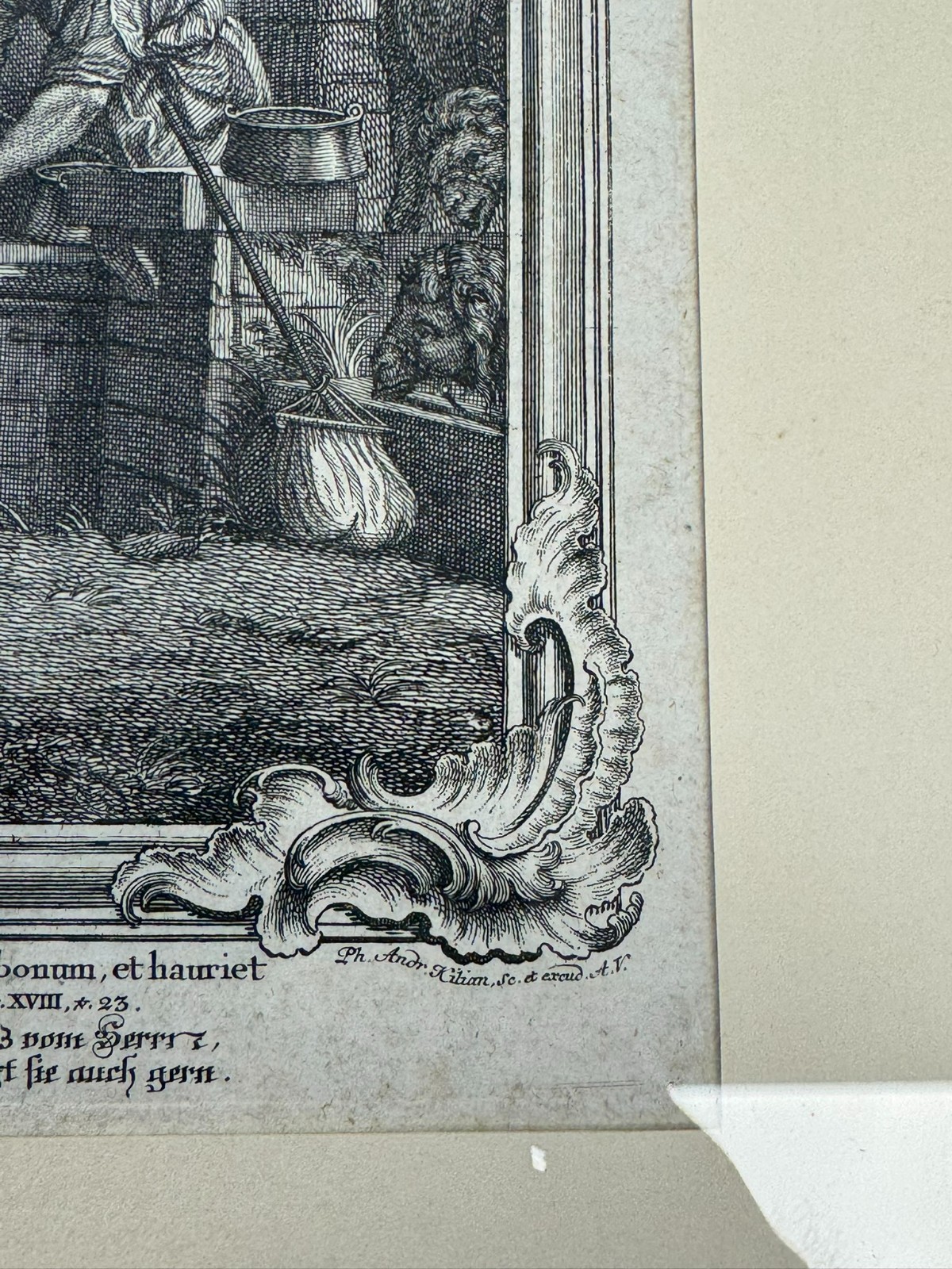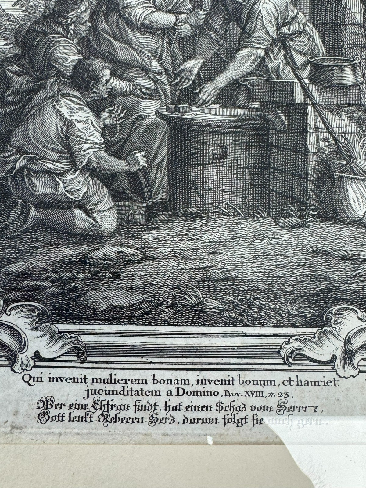 Sehr schöner Kupferstich, hinter Passepartout und Glas gerahmt. Sehr guter Zustand, Abmessungen gesamt: 25x33cm.