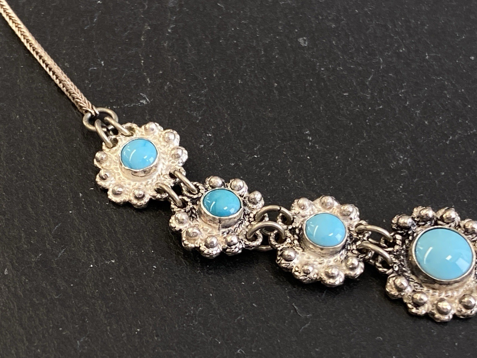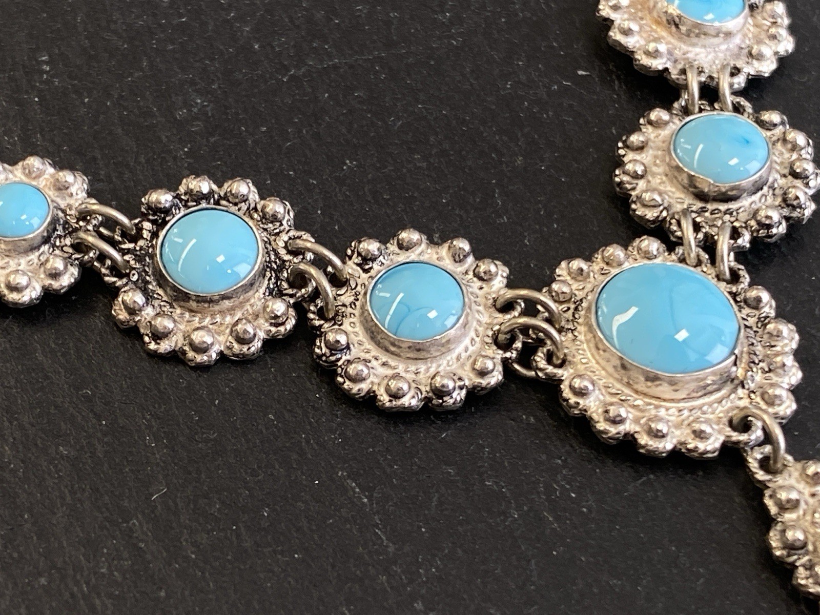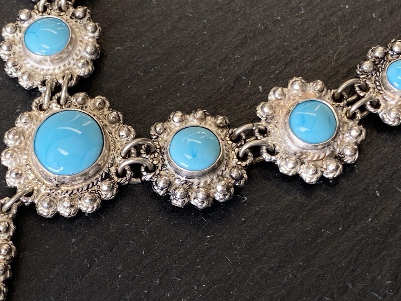 PRUNKVOLLE HALSKETTE KETTE MIT TÜRKIS CABOCHONS TÜRKISE AUS 950 STERLING SILBER