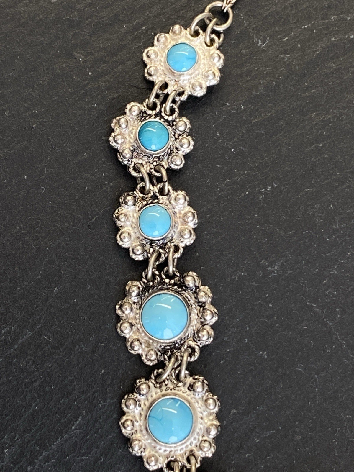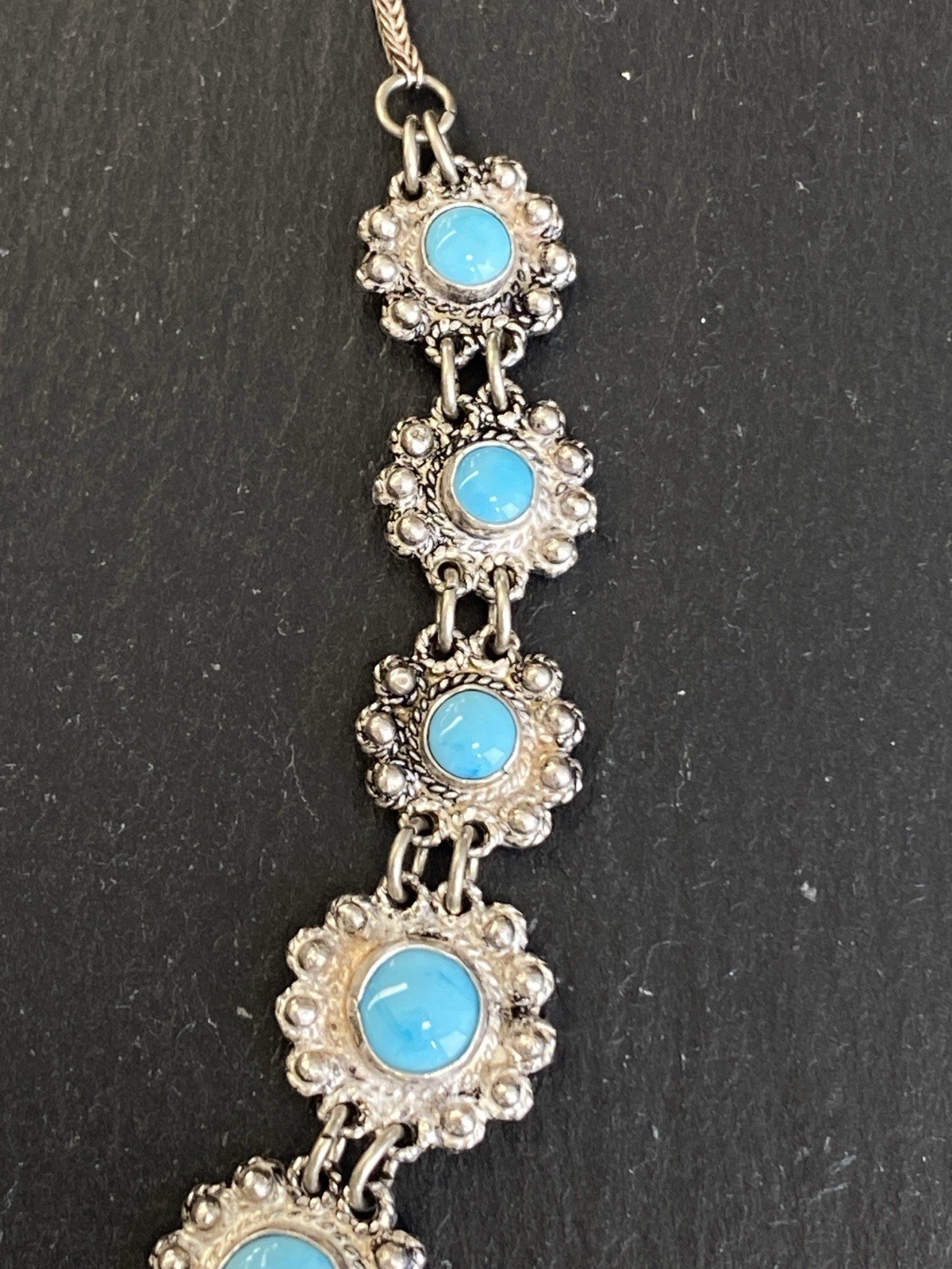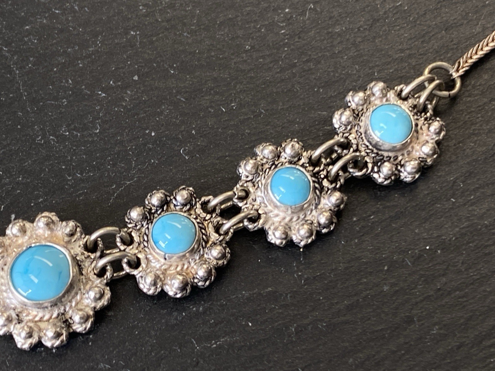 PRUNKVOLLE HALSKETTE KETTE MIT TÜRKIS CABOCHONS TÜRKISE AUS 950 STERLING SILBER
